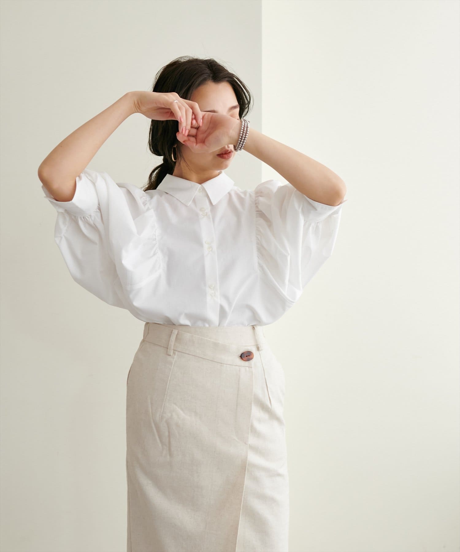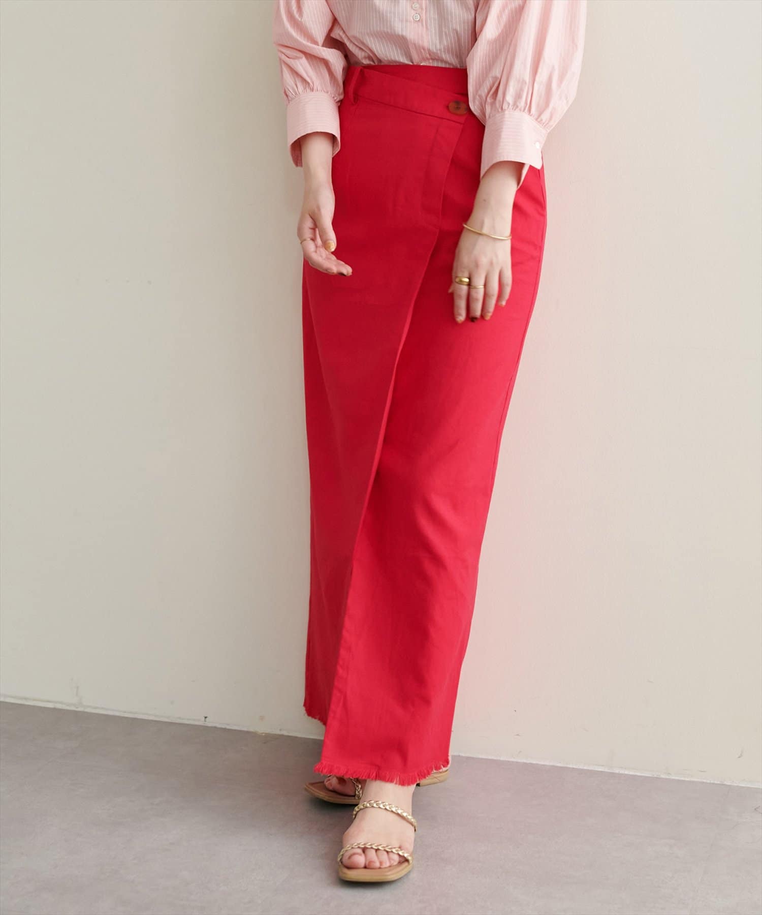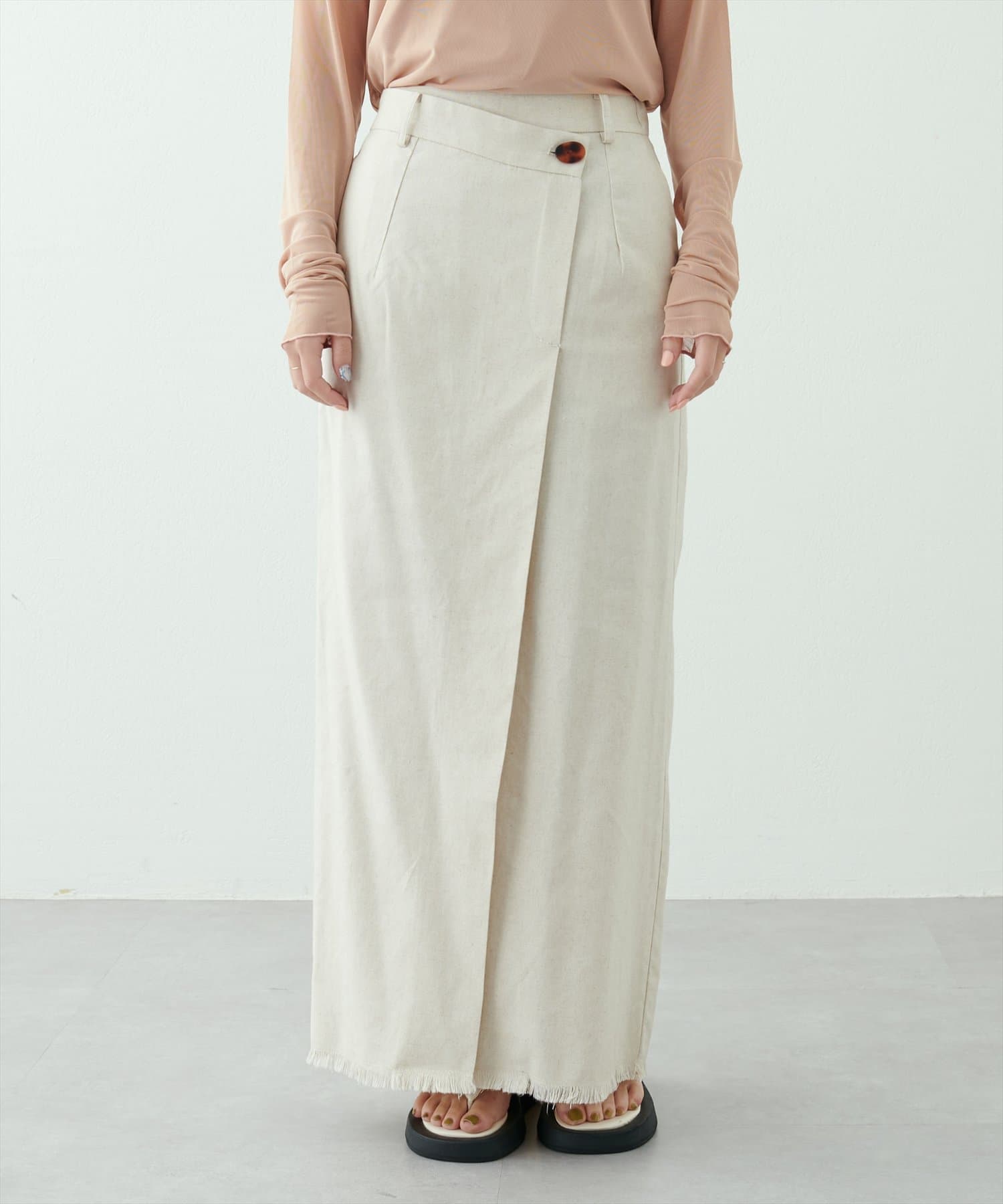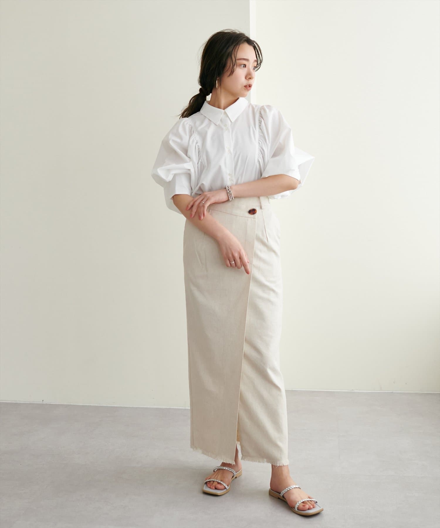ジャストウエストがちょっぴり新鮮な巻き風スカート