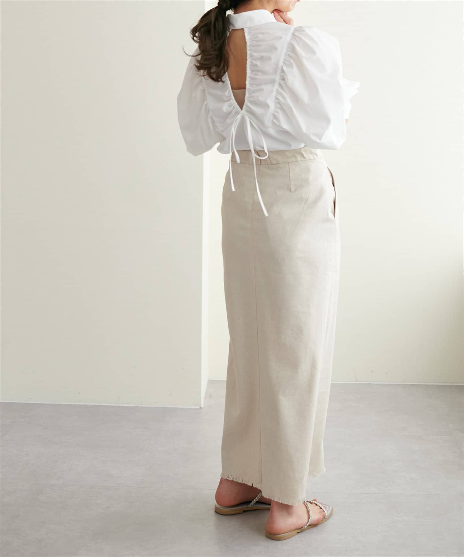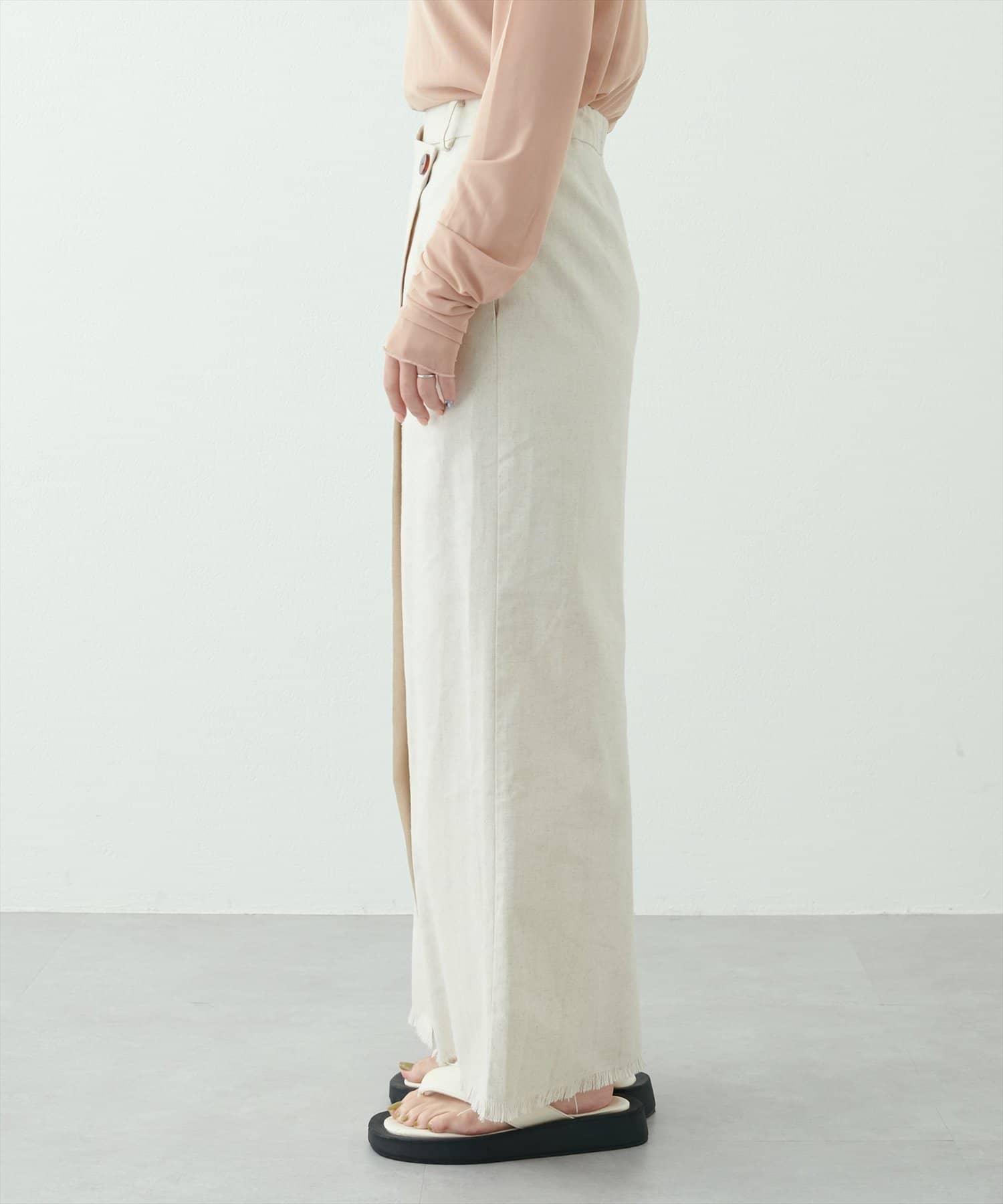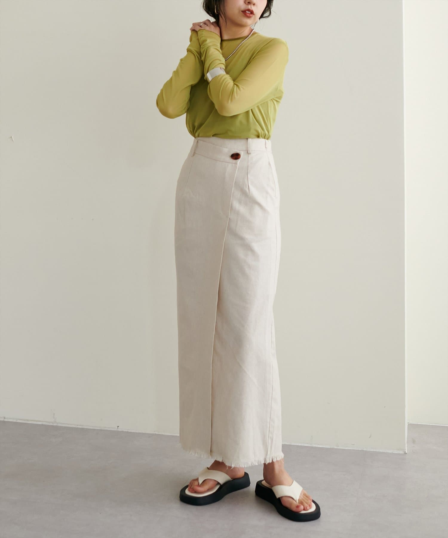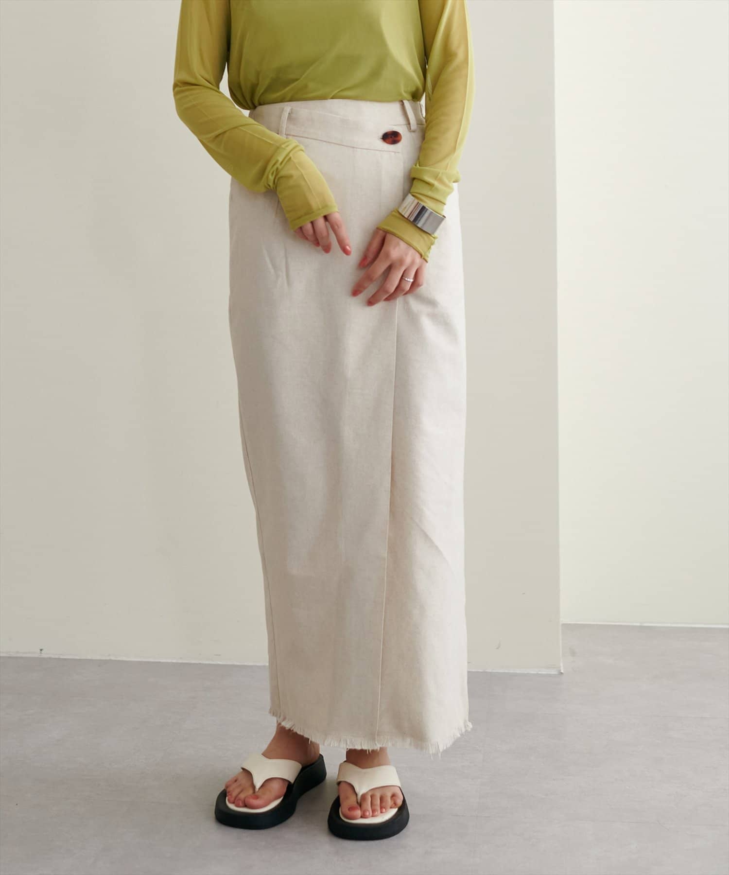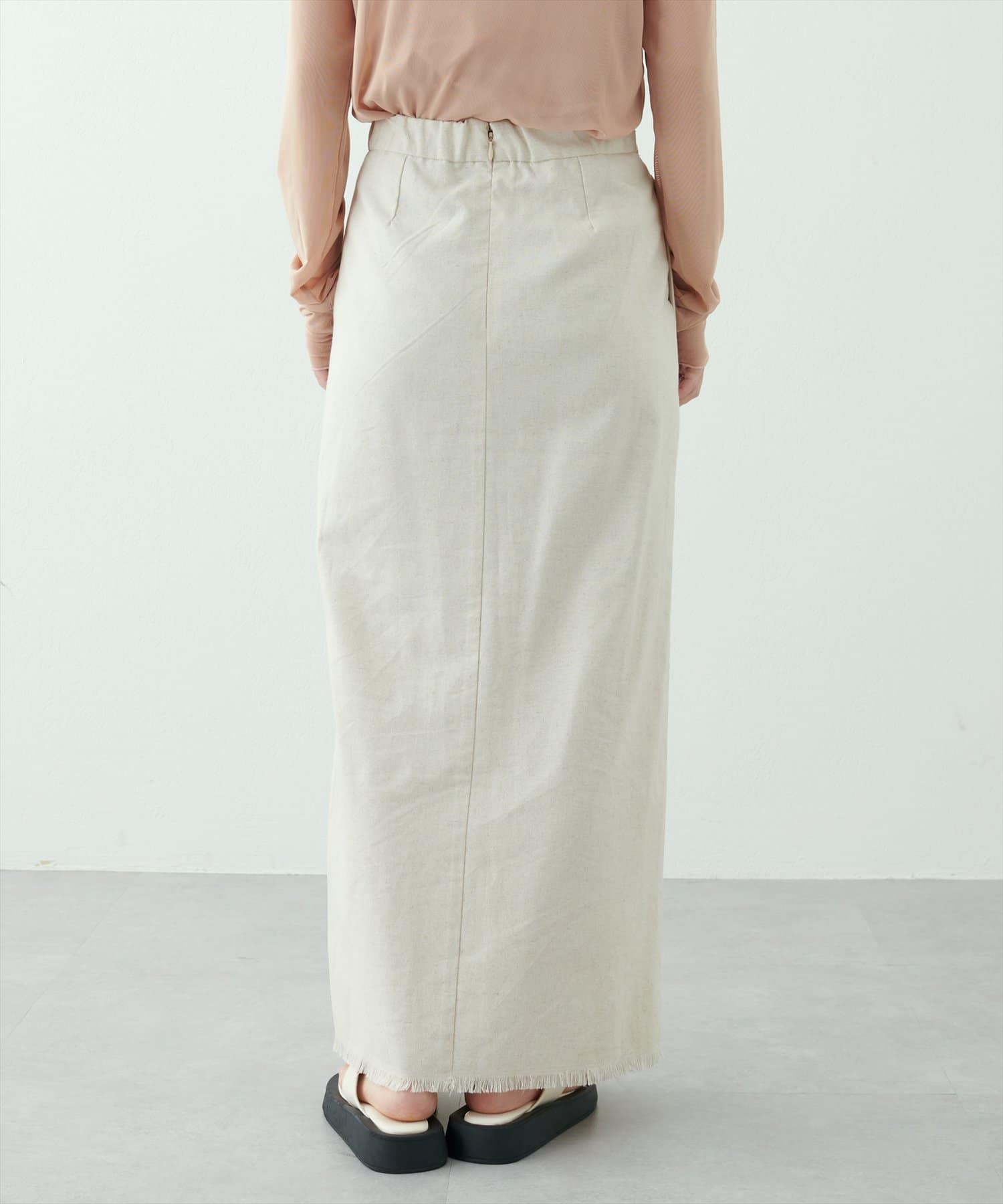 裾のフリンジが夏気分を高めるスリットスカートです。
