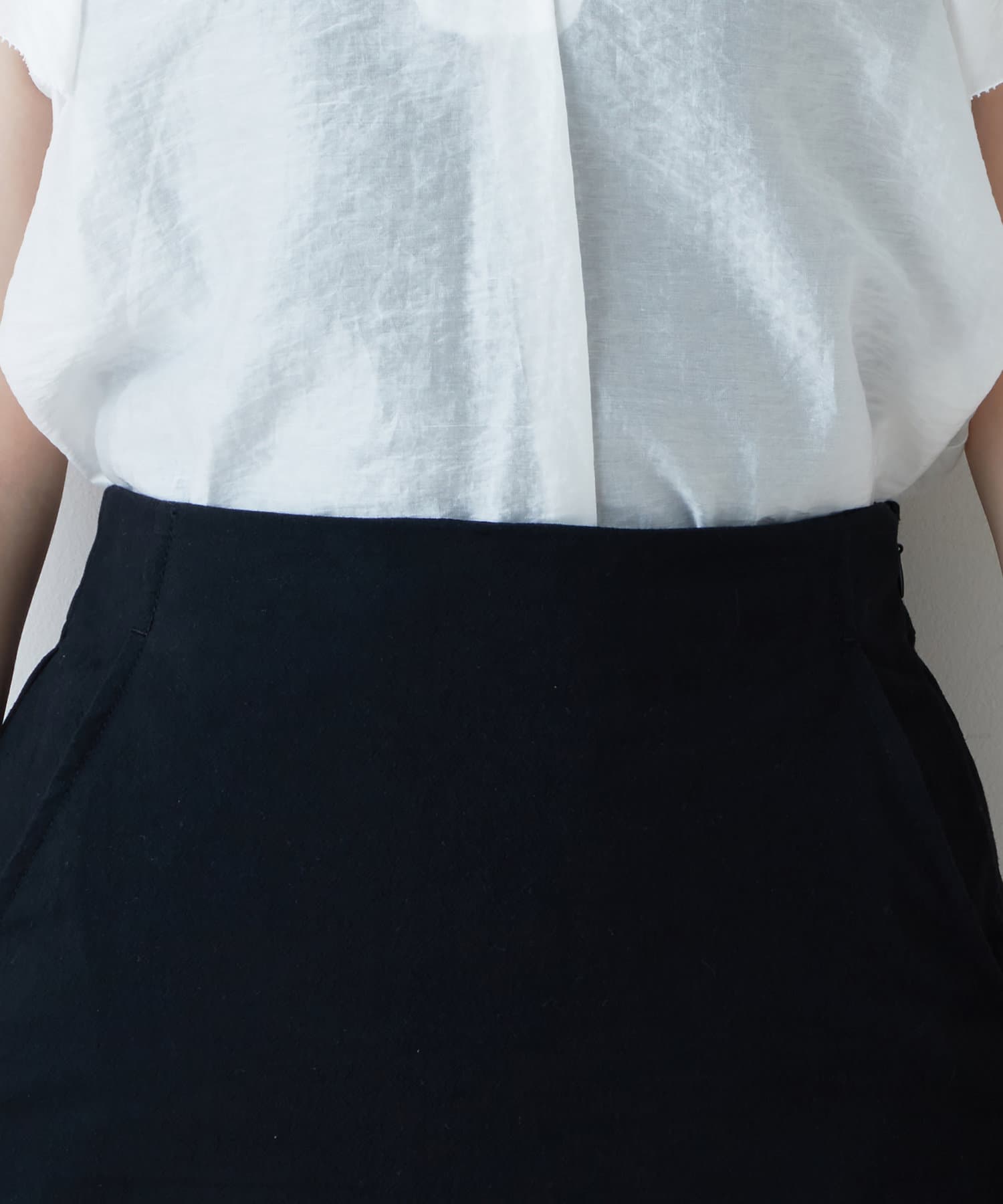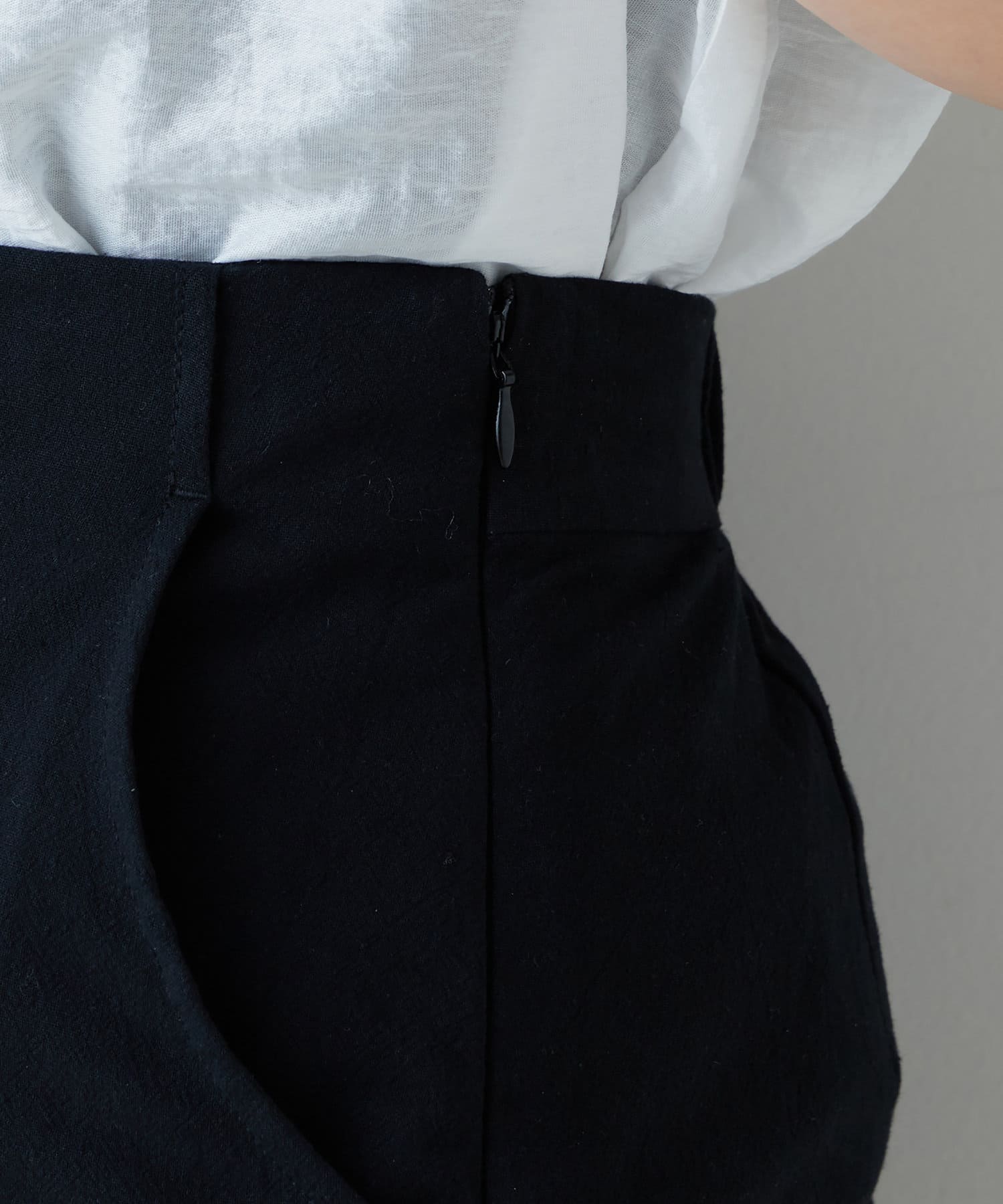 余計な切り替えを作らず、サイドファスナー仕様でウエストラインをすっきり仕上げたことで、