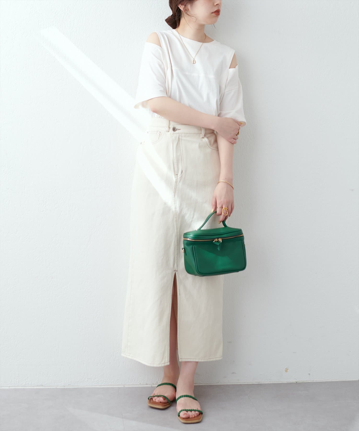 アシメデザインでデザイン性を加え、シンプルなトップスと合わせるだけでもスタイリングが決まります◎