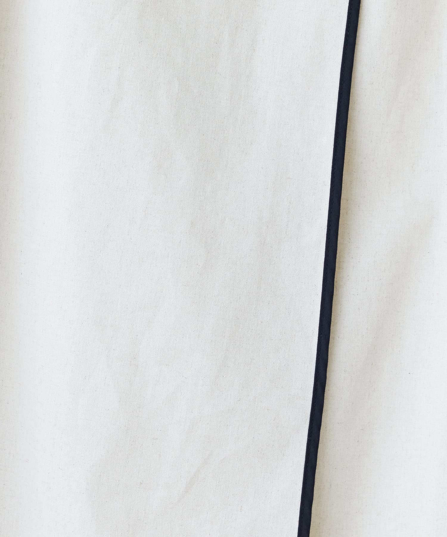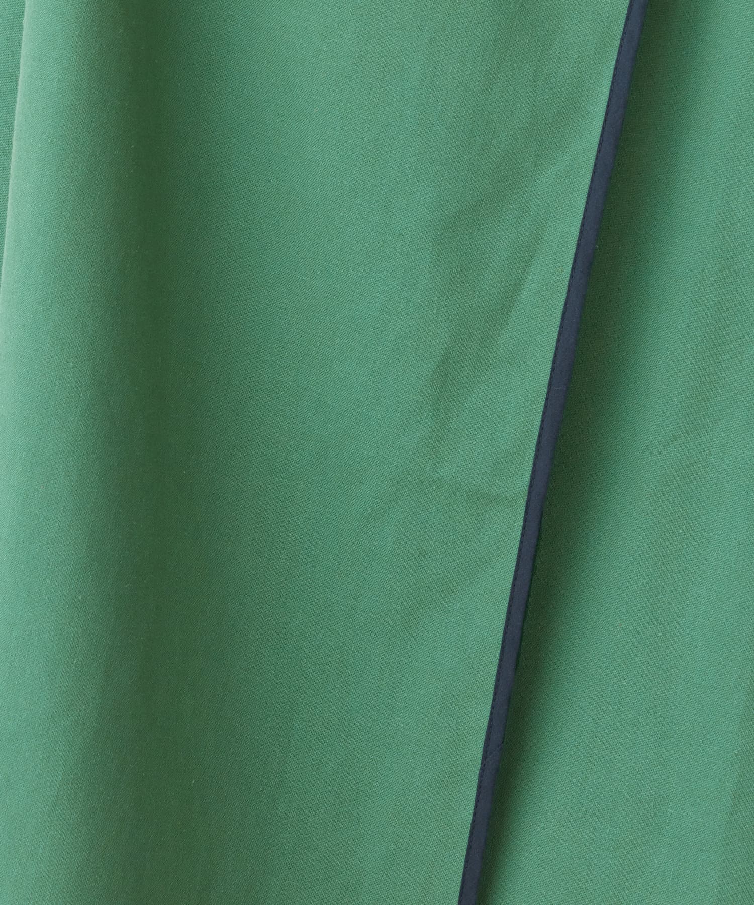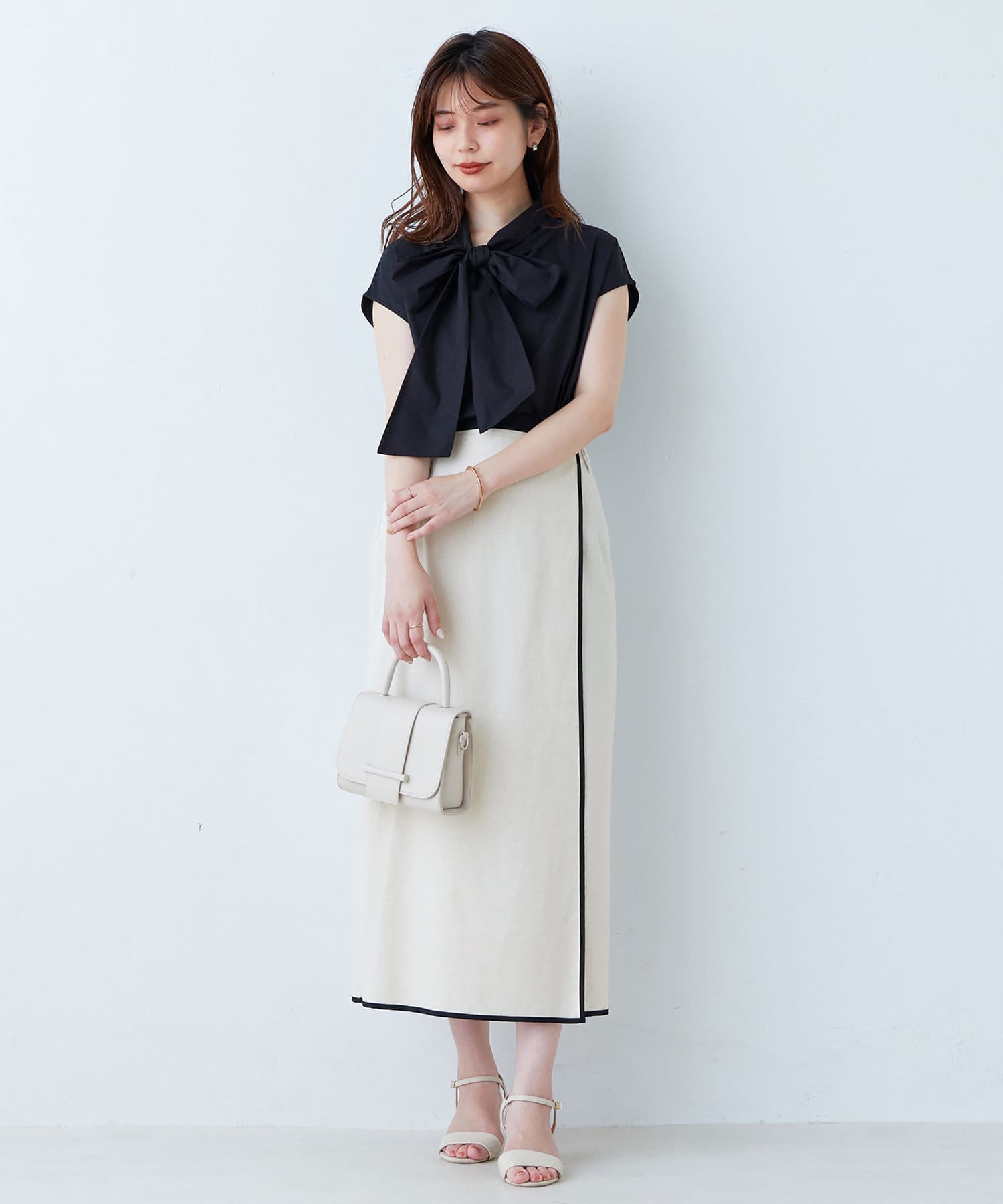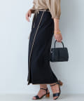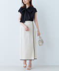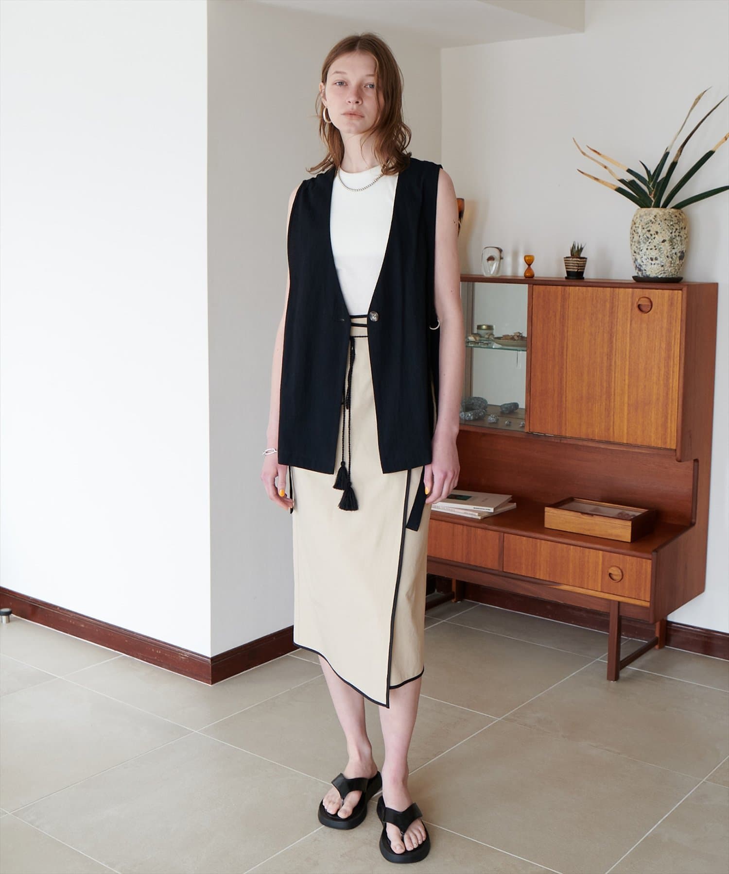 シンプルながらも配色パイピングデザインが目を惹くラップ風スカート。