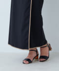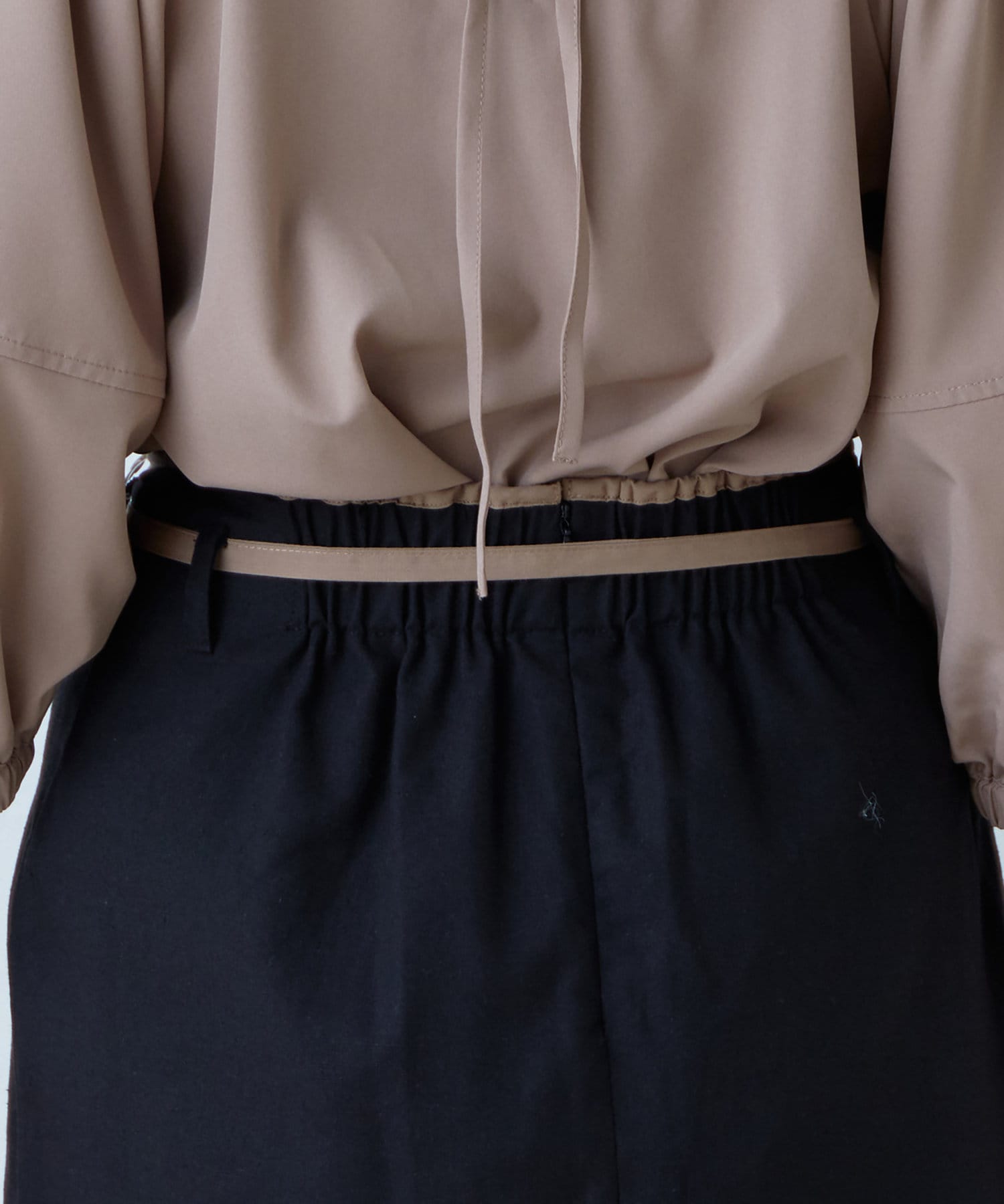 裾にかけてすっきりとしたナローシルエットは、足のラインを綺麗に見せてくれるデザイナーこだわりのポイント。