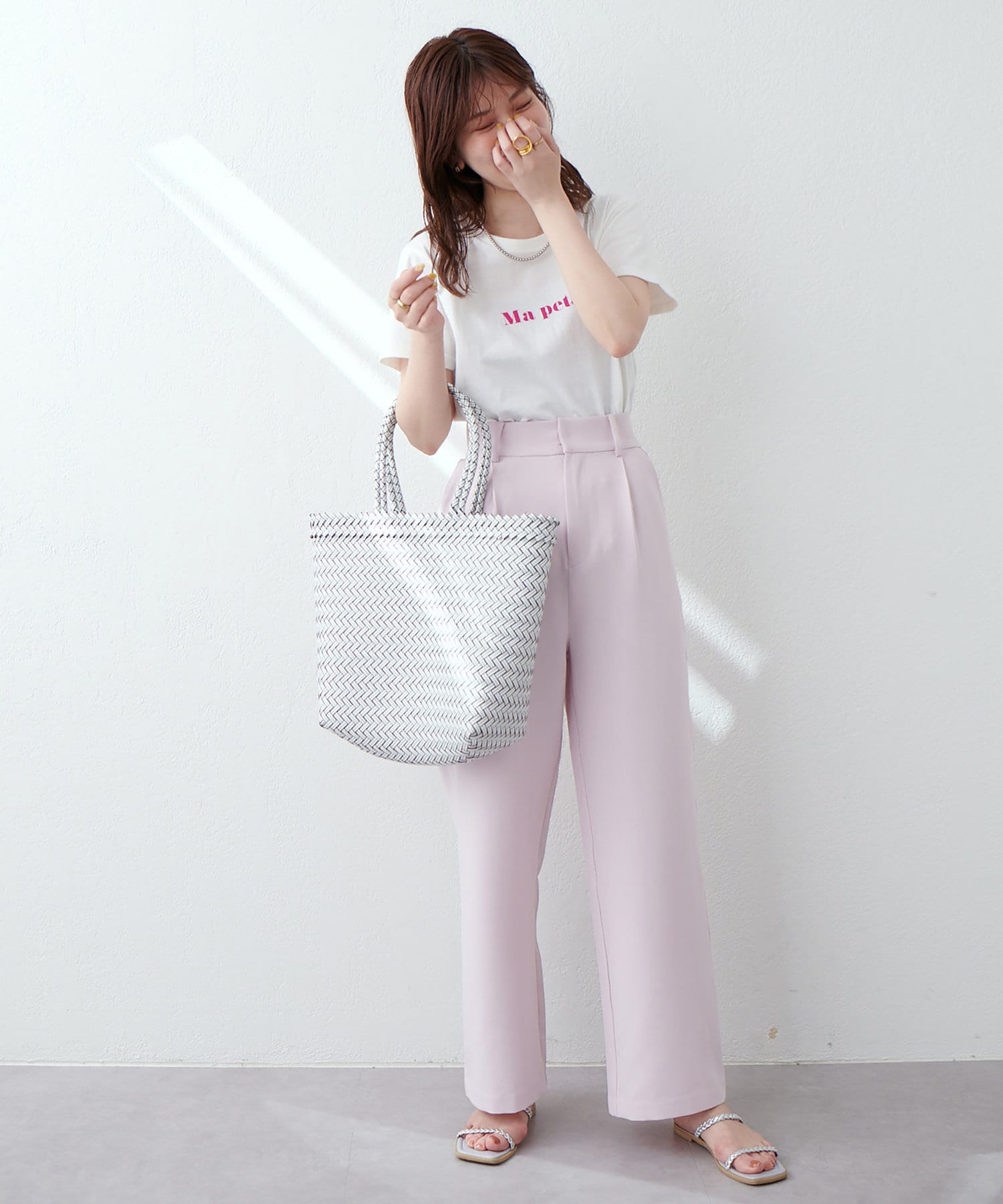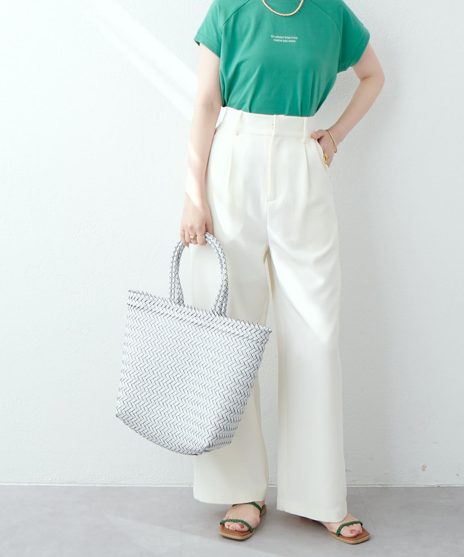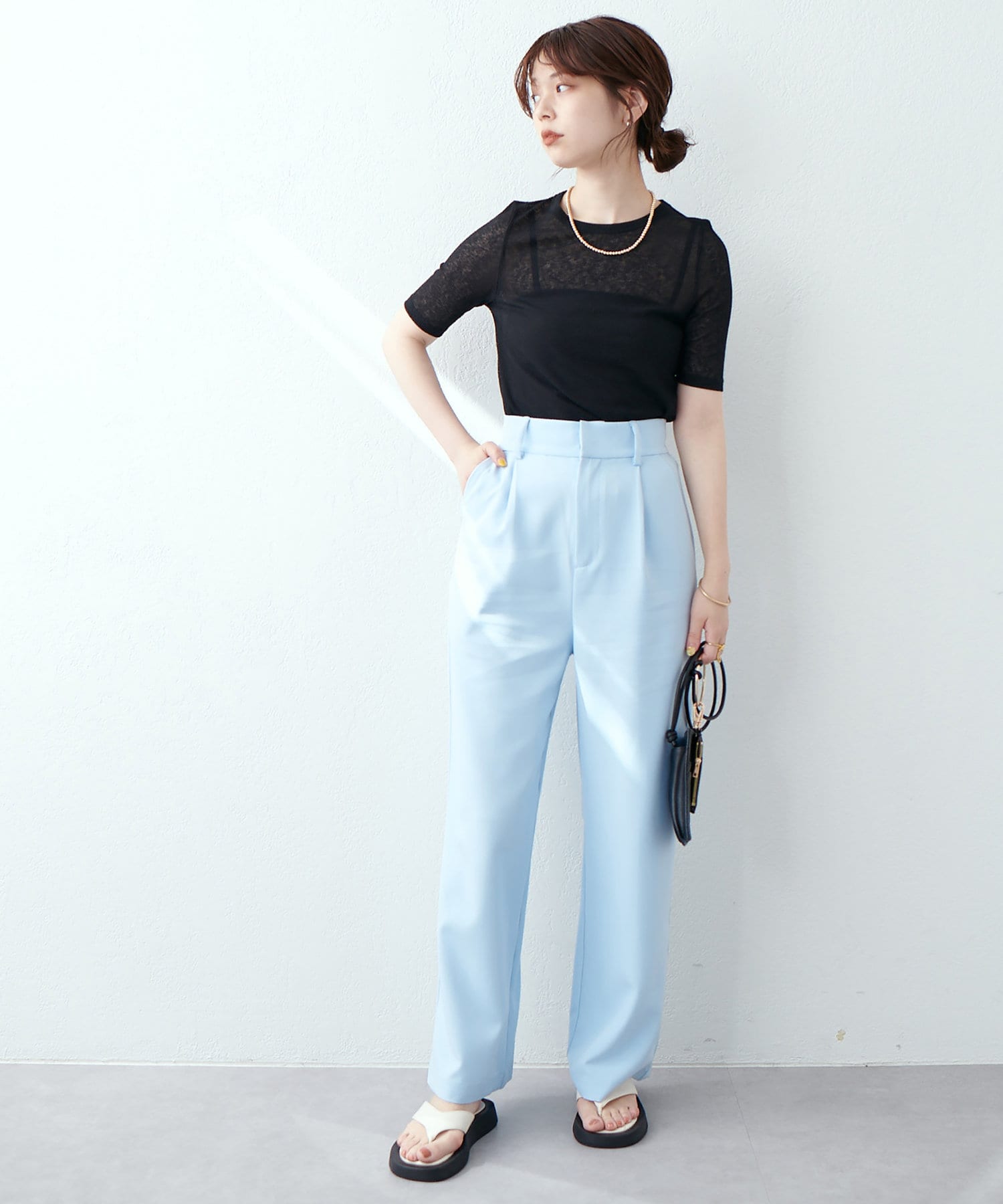 普段使いにシアーニットやロゴTをウエストインしてトレンド感のあるコーデでお召し頂くのはもちろん、