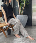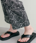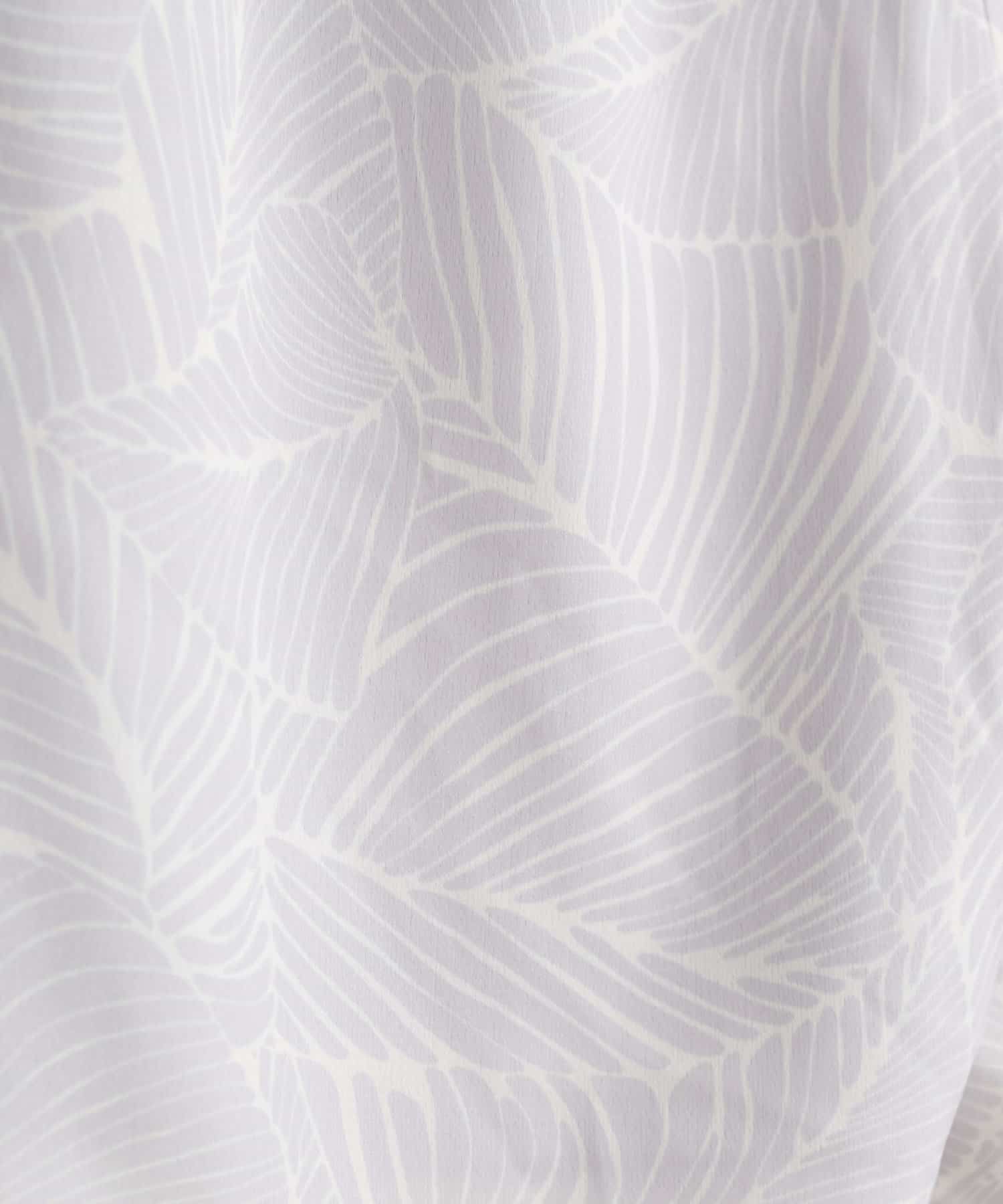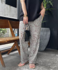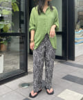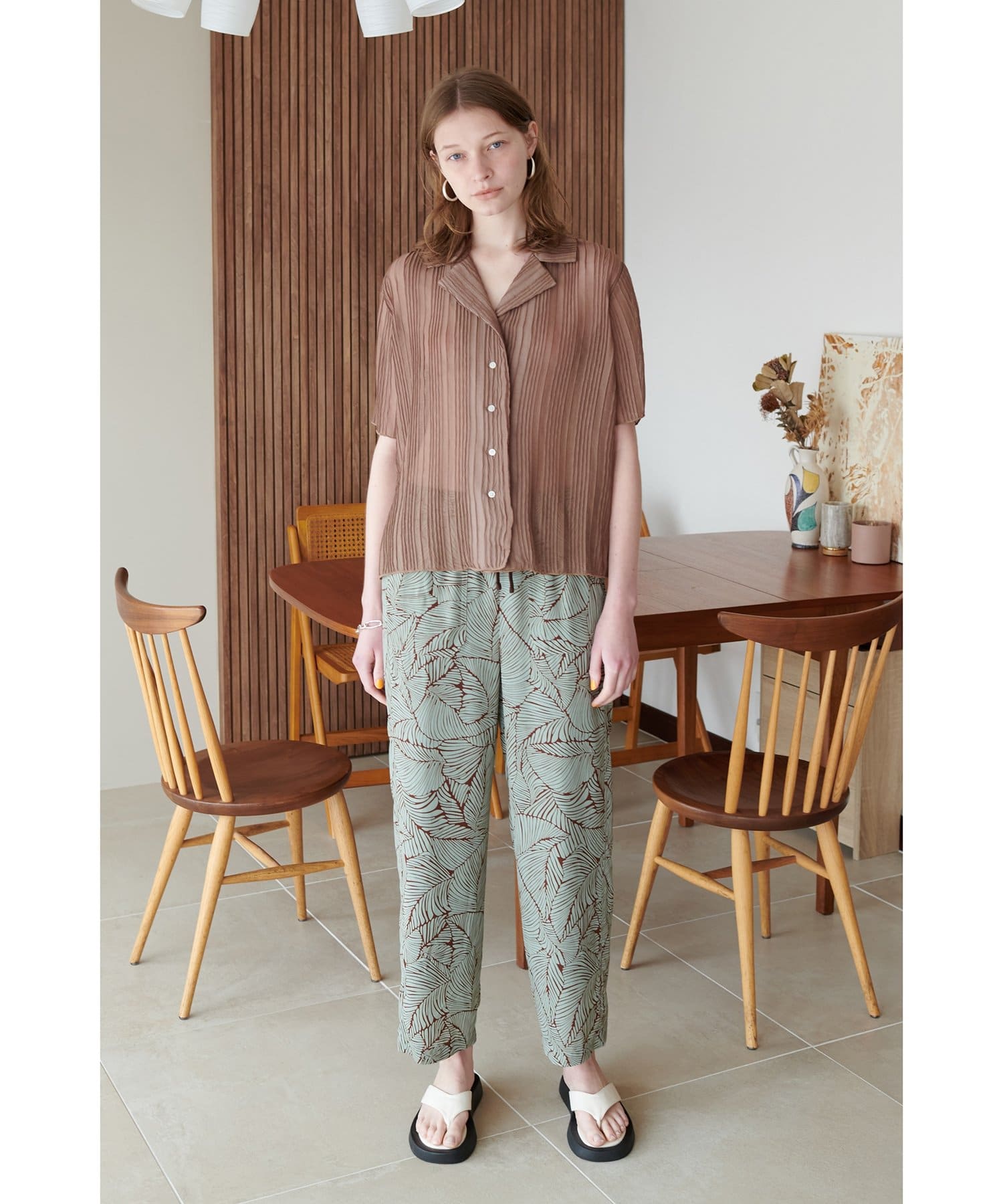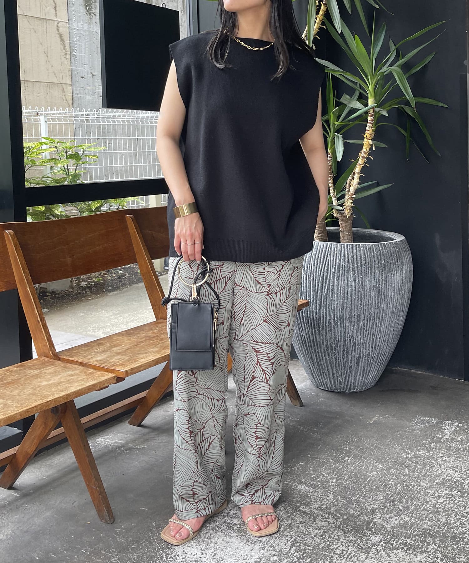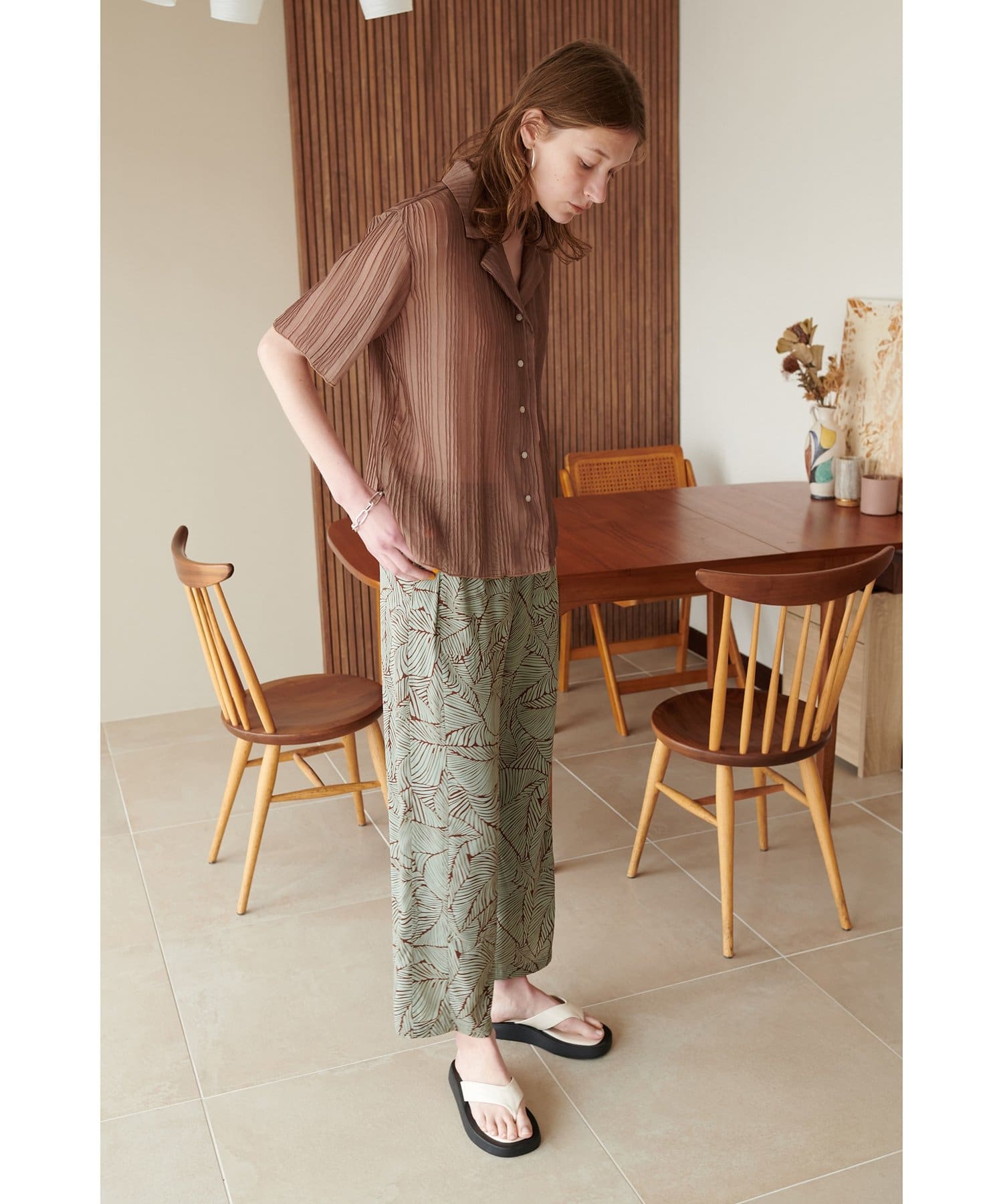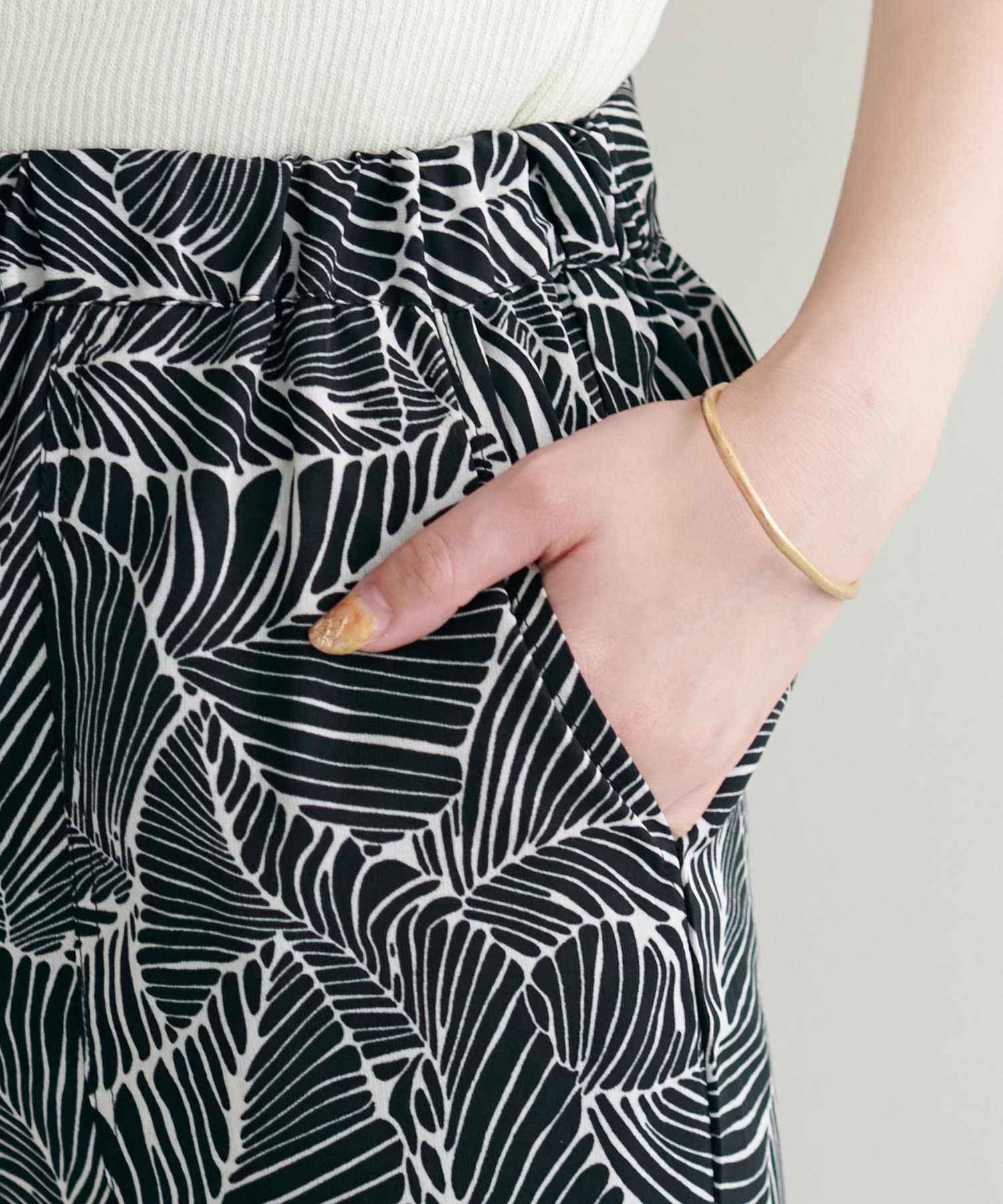 リゾートライクなボタニカルリーフ柄が目を惹くパンツ