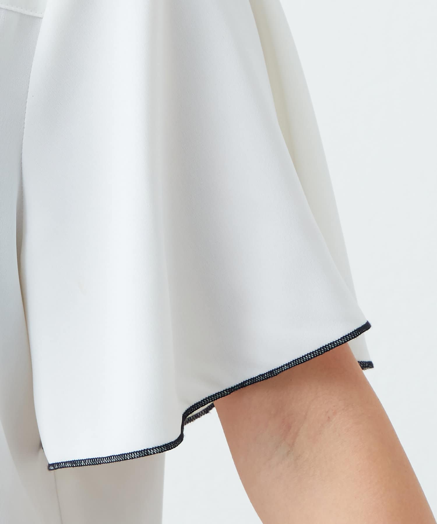 腕周りを華奢に見せてくれるフレアスリーブデザインや、