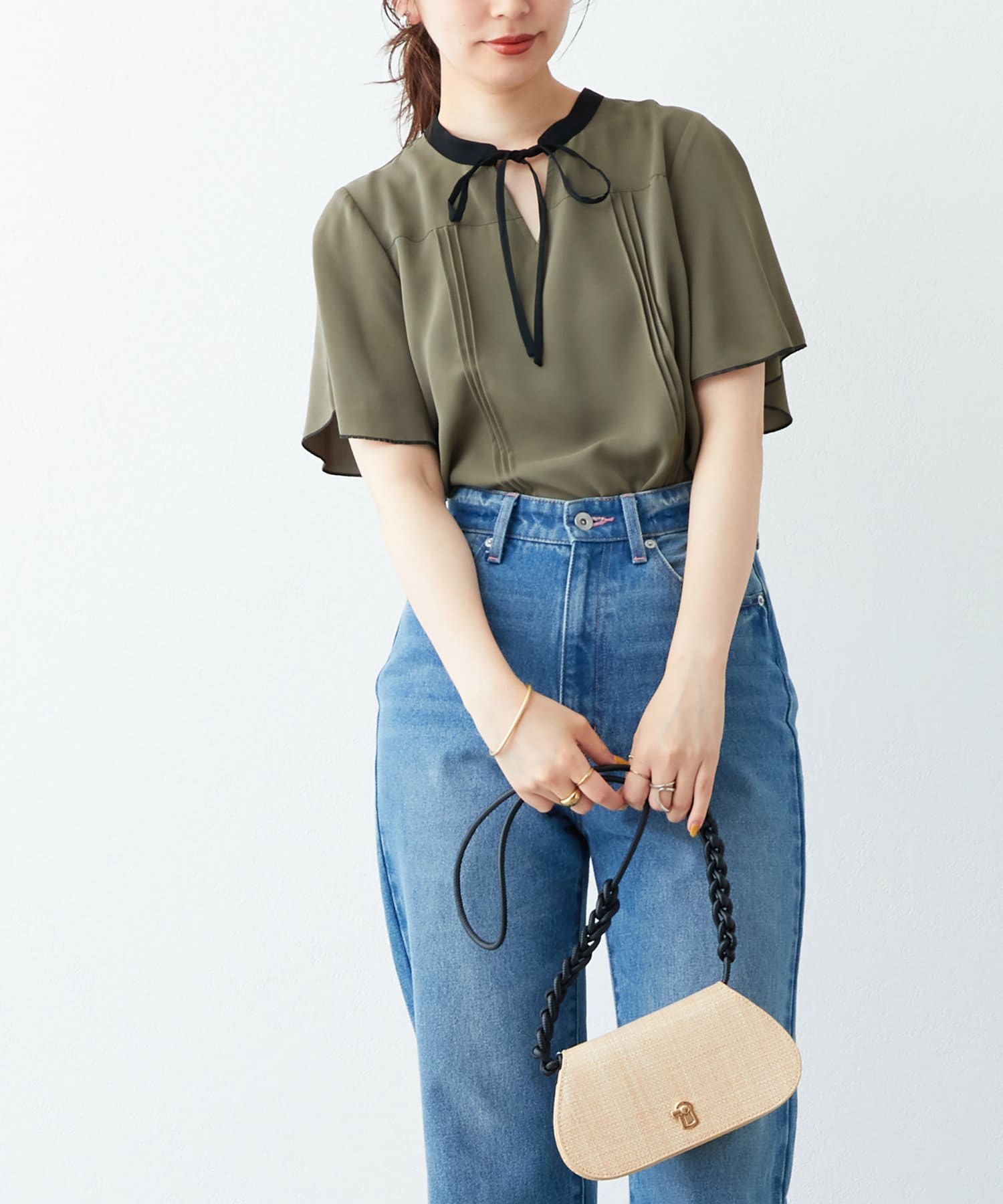 シンプルながらもさっとお召し頂くだけでスタイリングが決まるブラウスです。