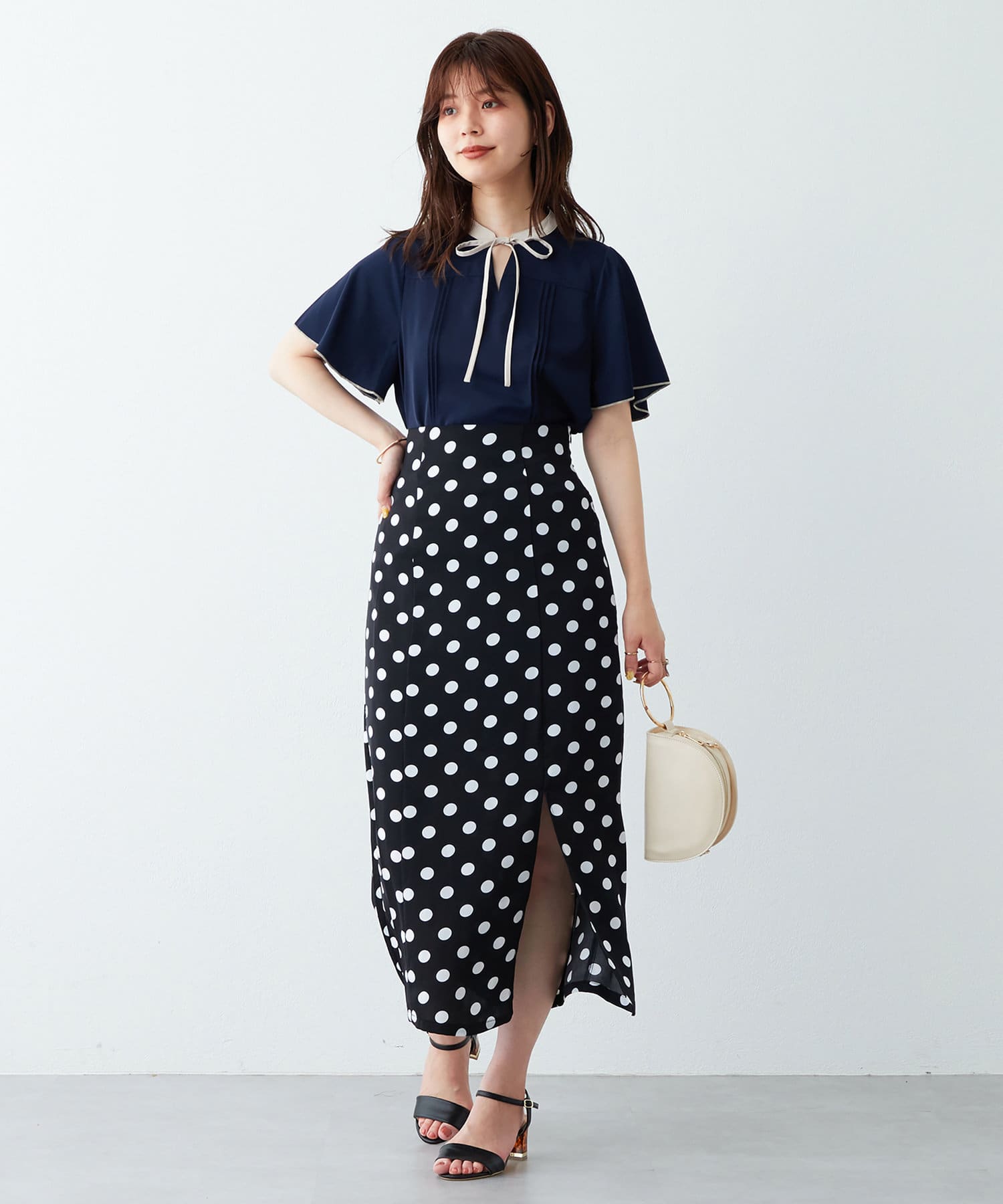 レーススカートやマーメイドシルエット、フレアラインのスカート合わせで、上品な印象に仕上げるのはもちろん、