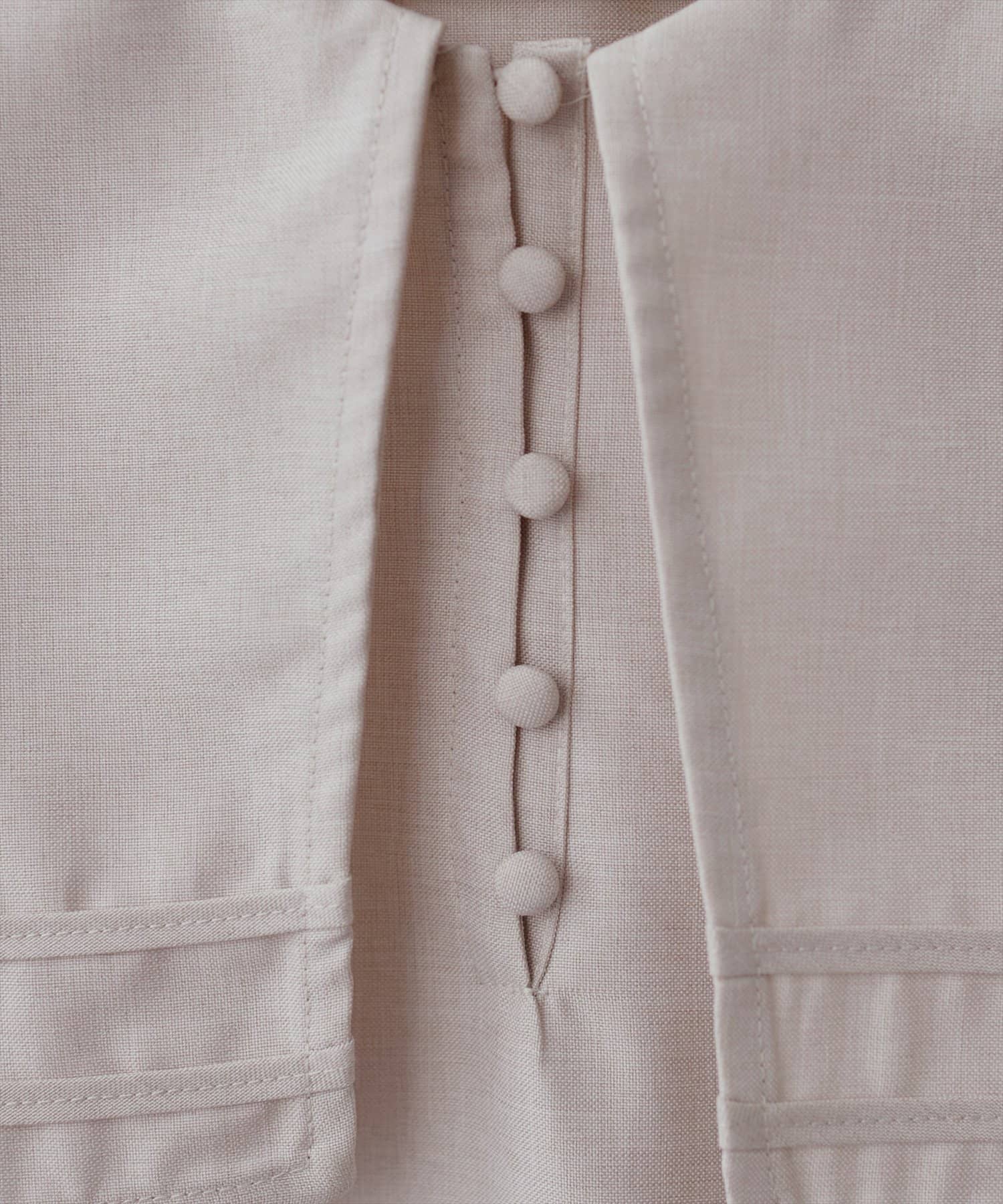 フロントには本体生地と同生地のくるみ釦を施し、上品な印象に仕上げました◎