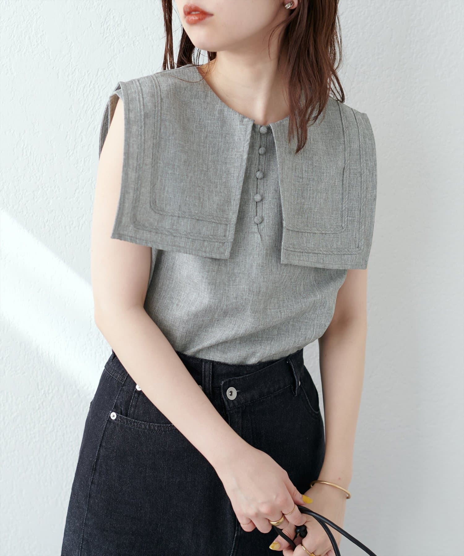 ご好評頂いていたビッグ衿デザインにノースリーブタイプが新たに登場。