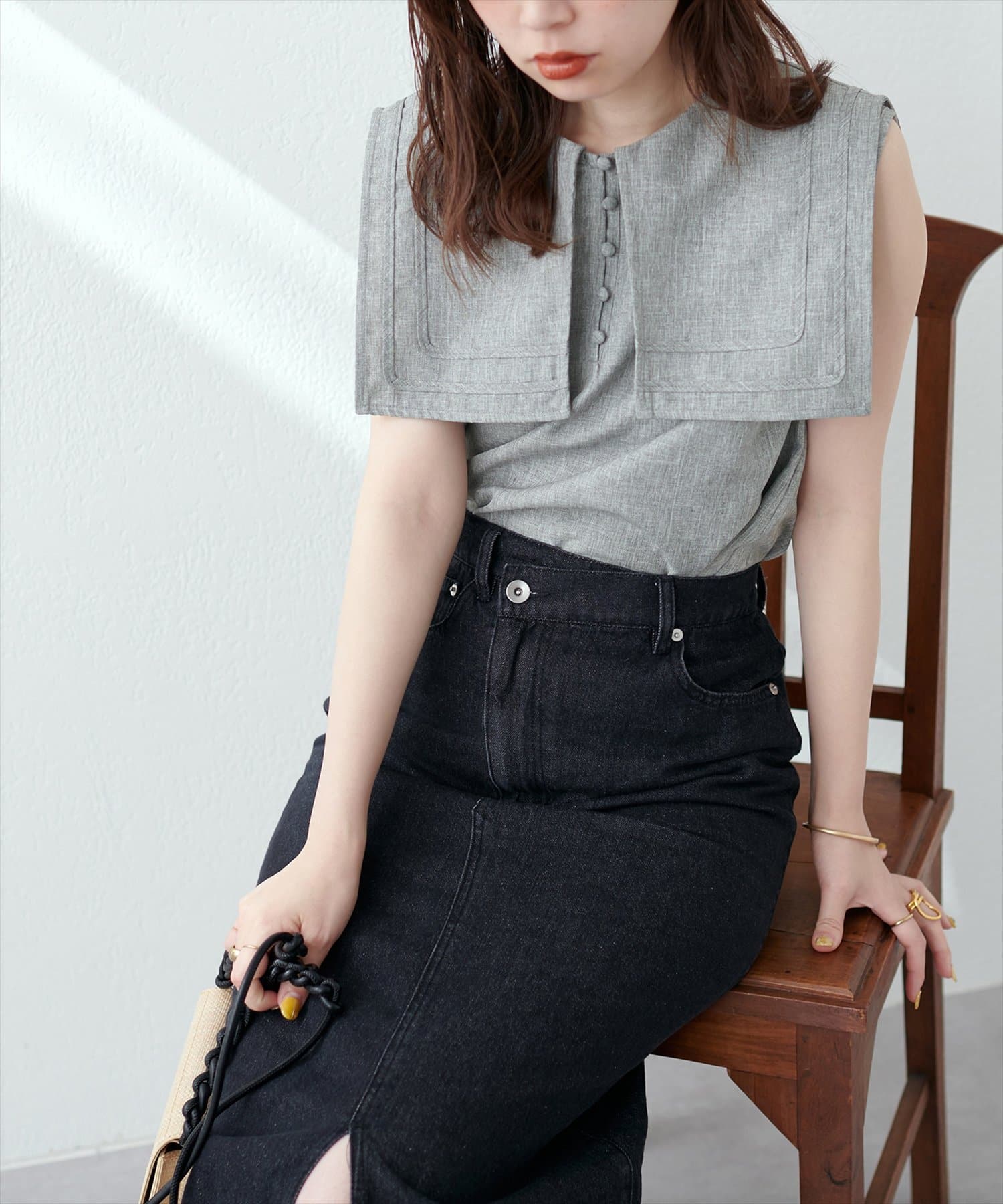 マーメイドラインやナローシルエットのスカートにウエストアウトでシンプルにお召し頂くのはもちろん、