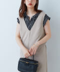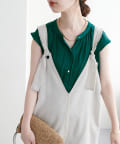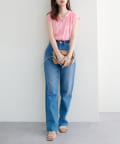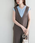 お手持ちのカーディガンや羽織りアイテムとも合わせやすい、フレンチスリーブデザインは、