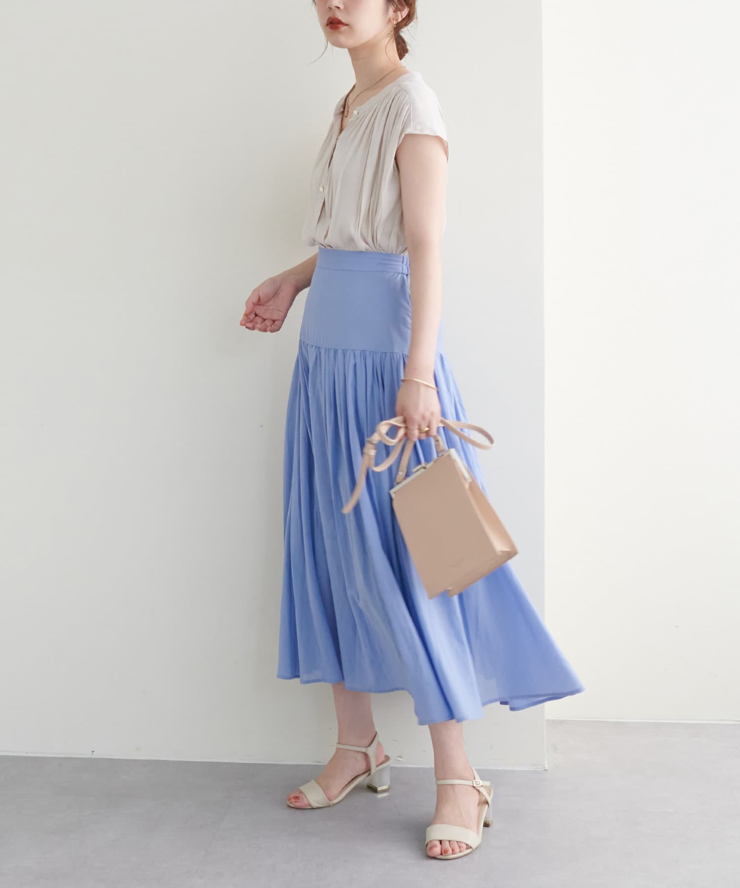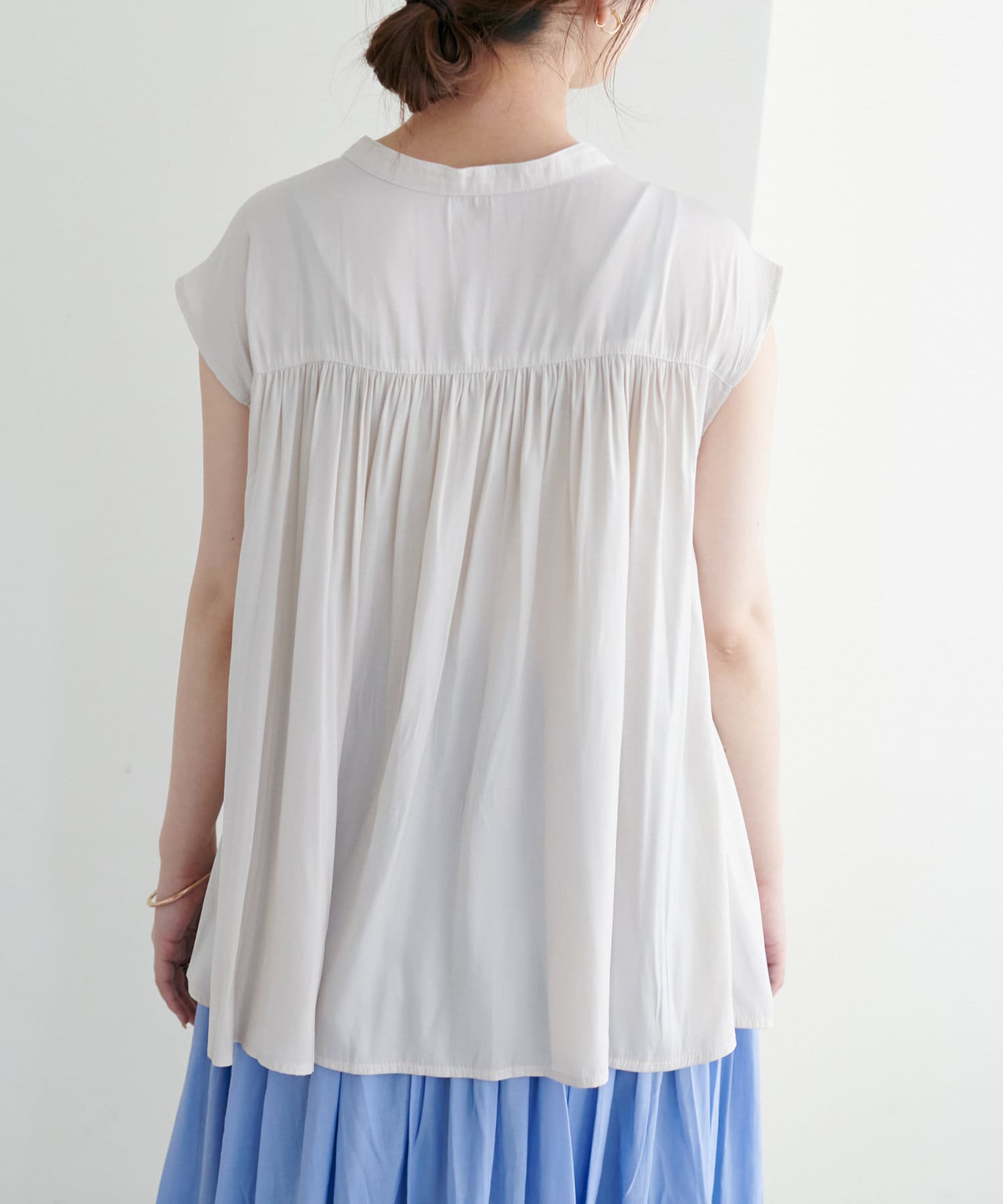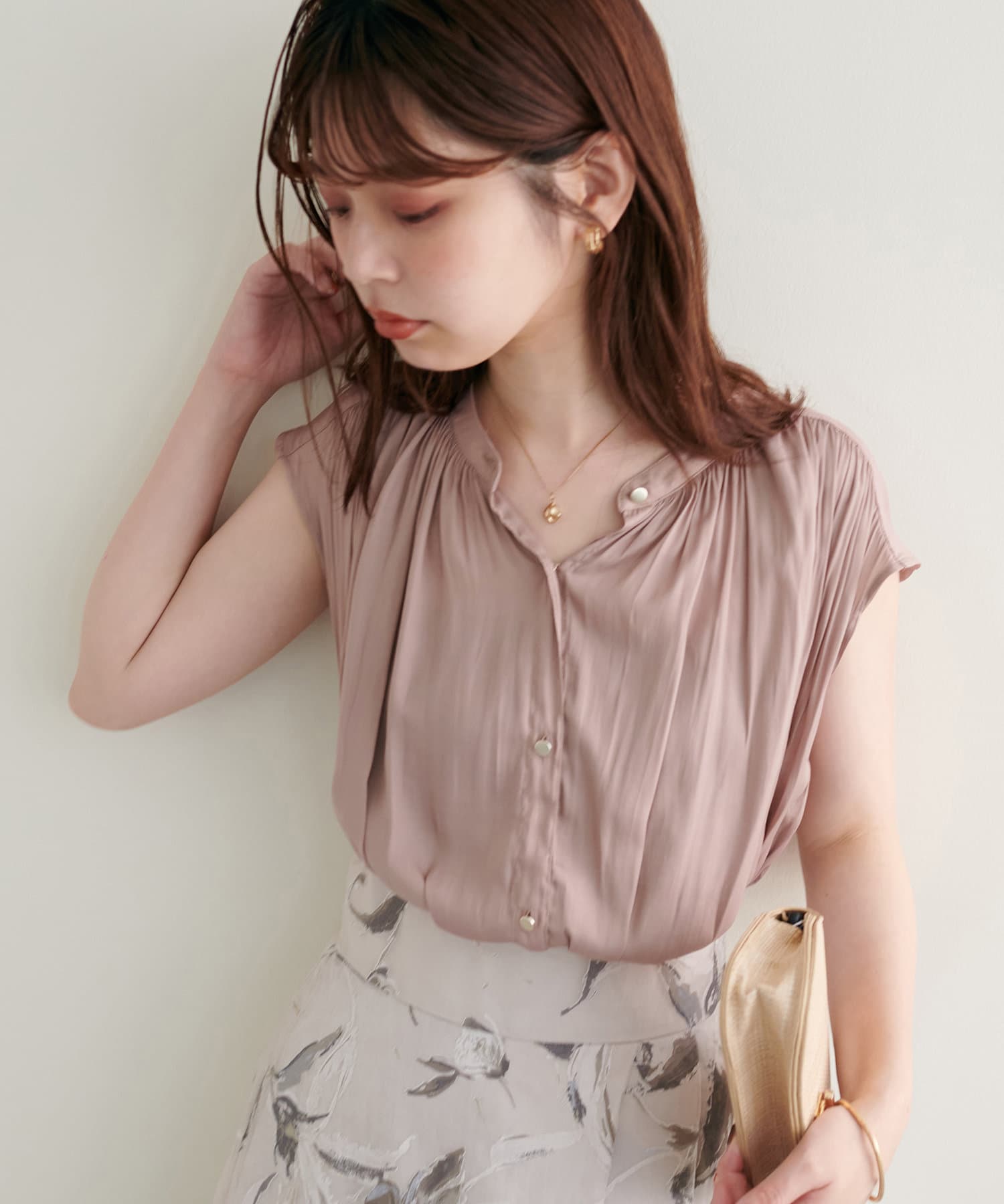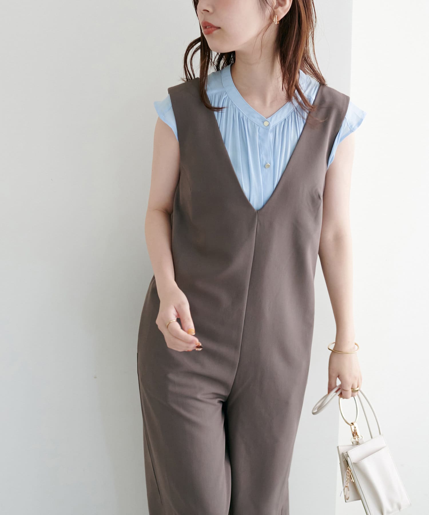 身体のラインを拾わないシルエットで1枚でさらっと着れるブラウスは、これからの季節に大活躍。