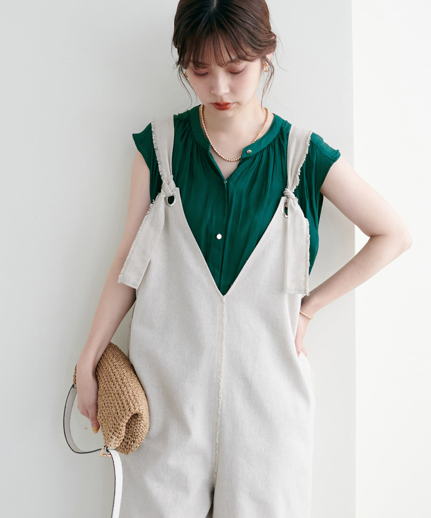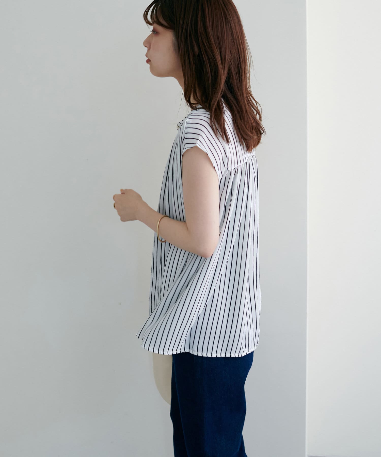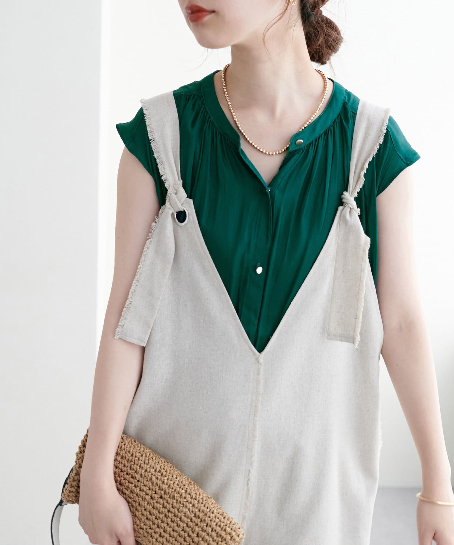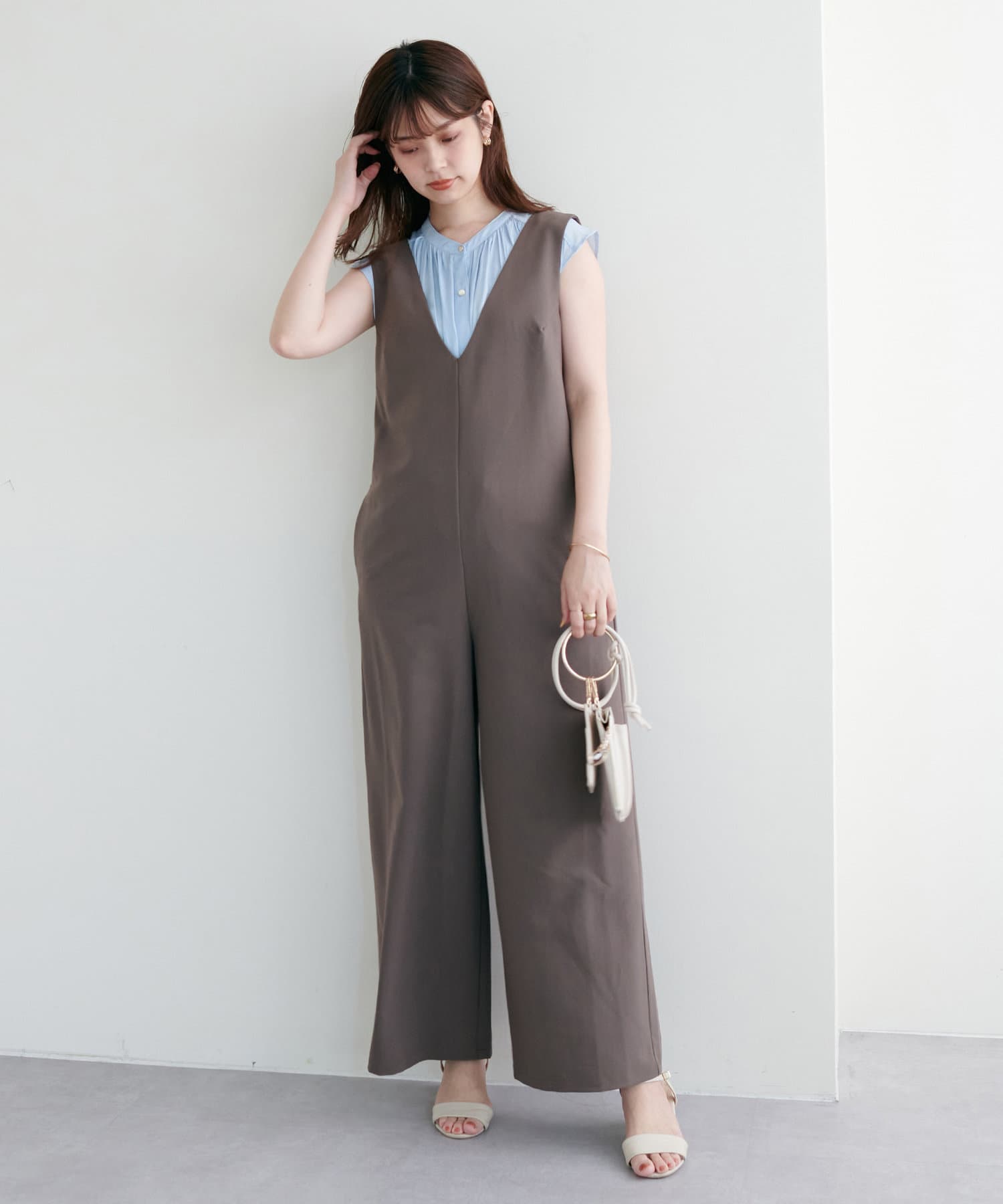 身体のラインを拾わないシルエットで1枚でさらっと着れるブラウスは、これからの季節に大活躍。