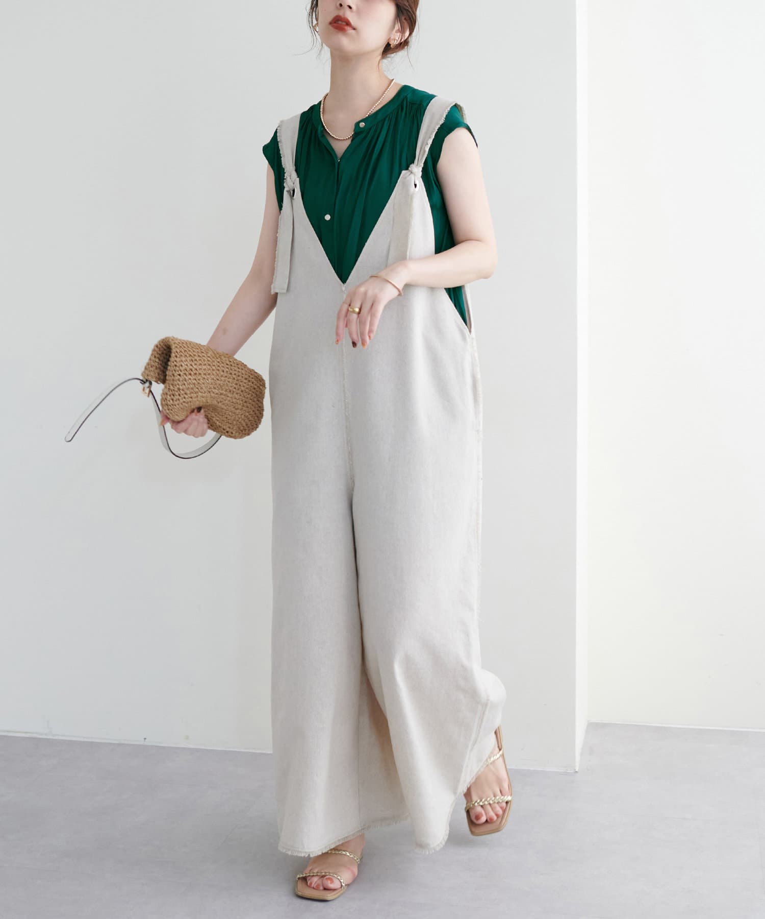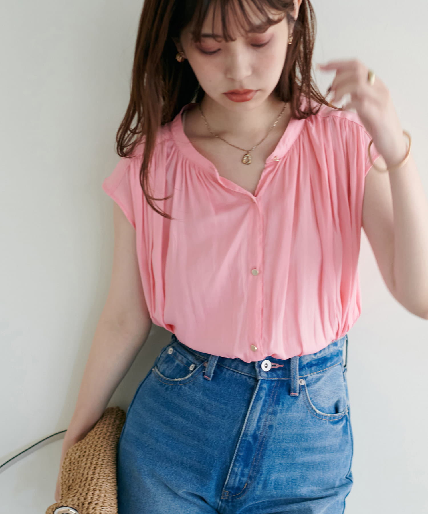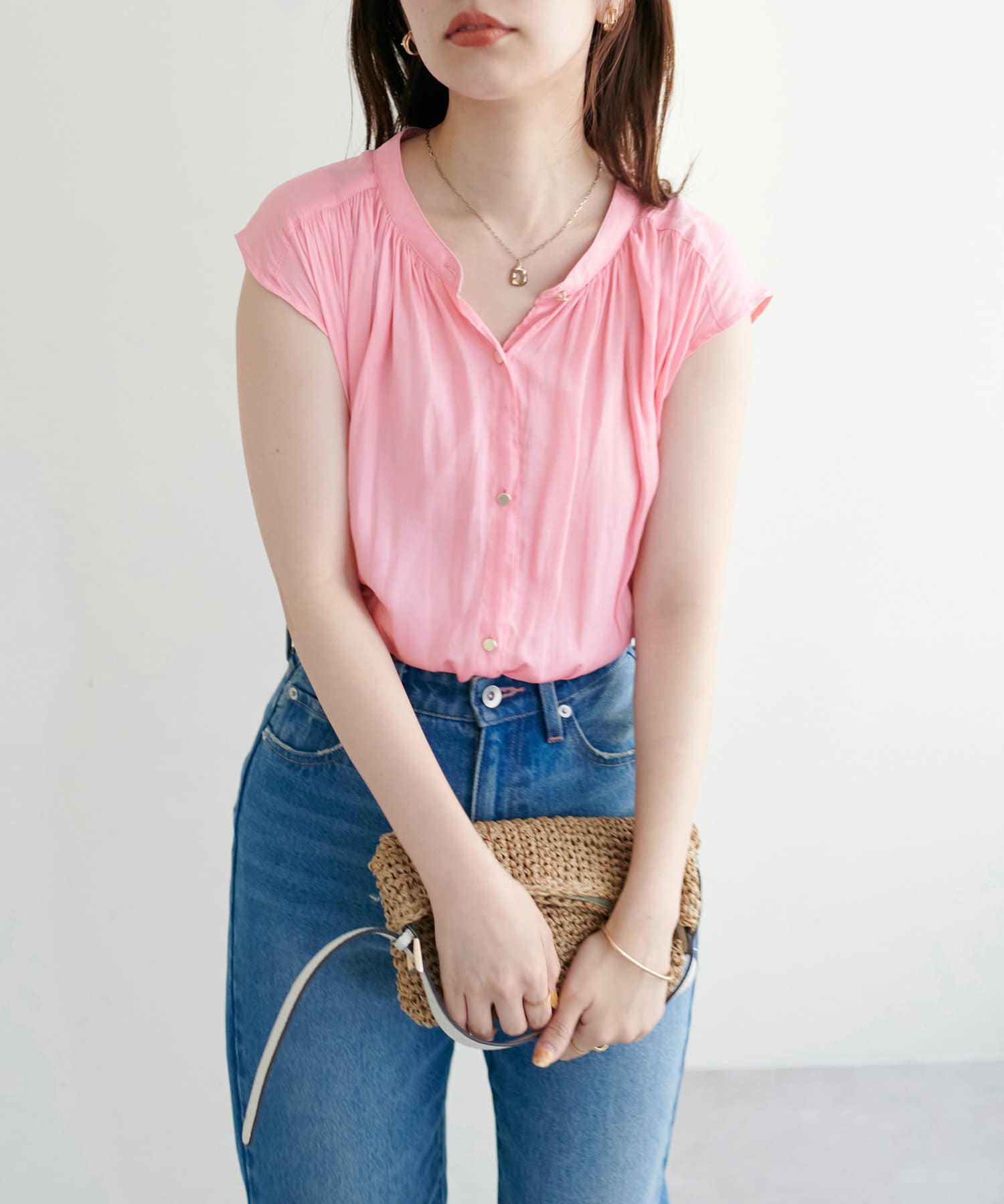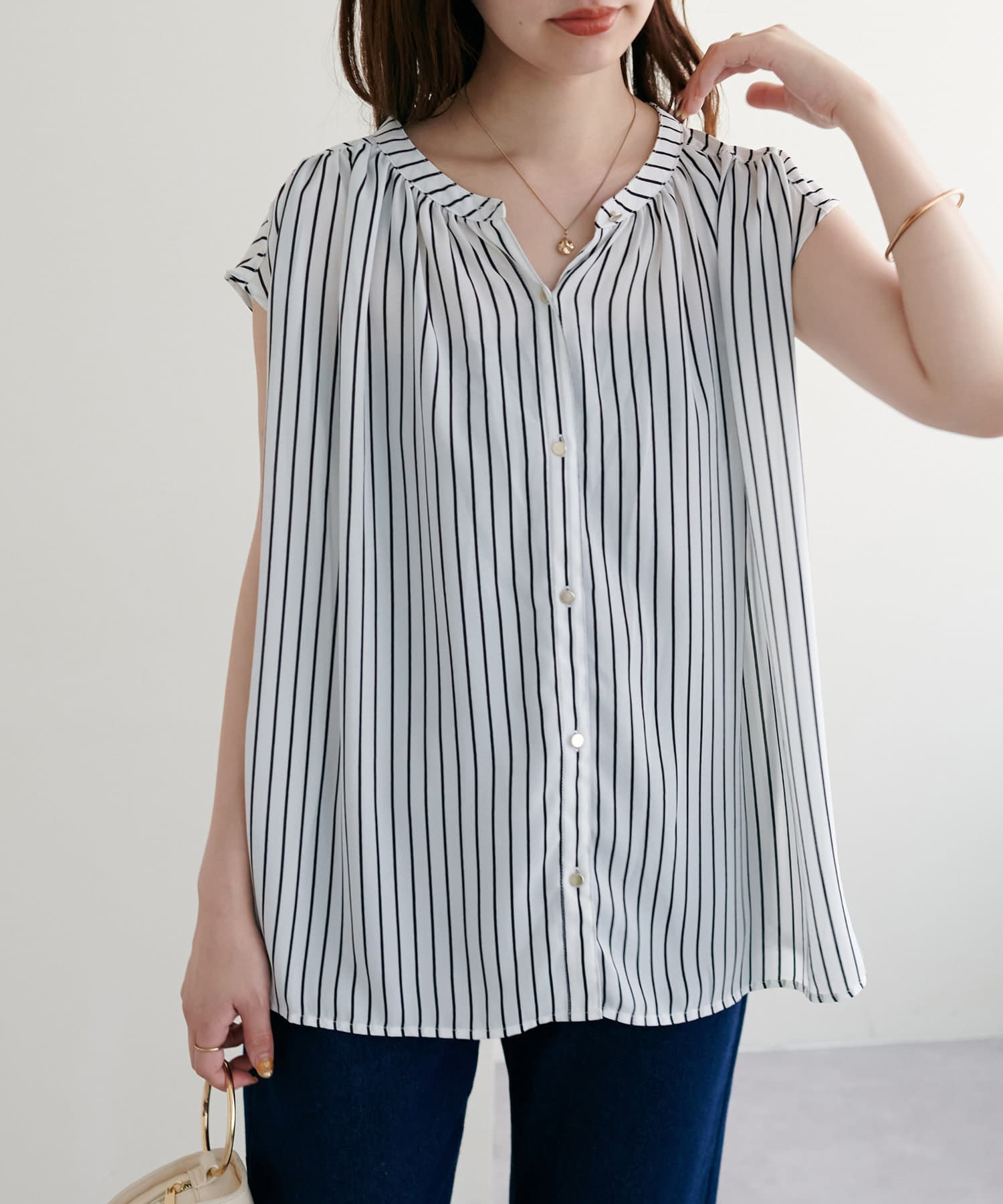 身体のラインを拾わないシルエットで1枚でさらっと着れるブラウスは、これからの季節に大活躍。