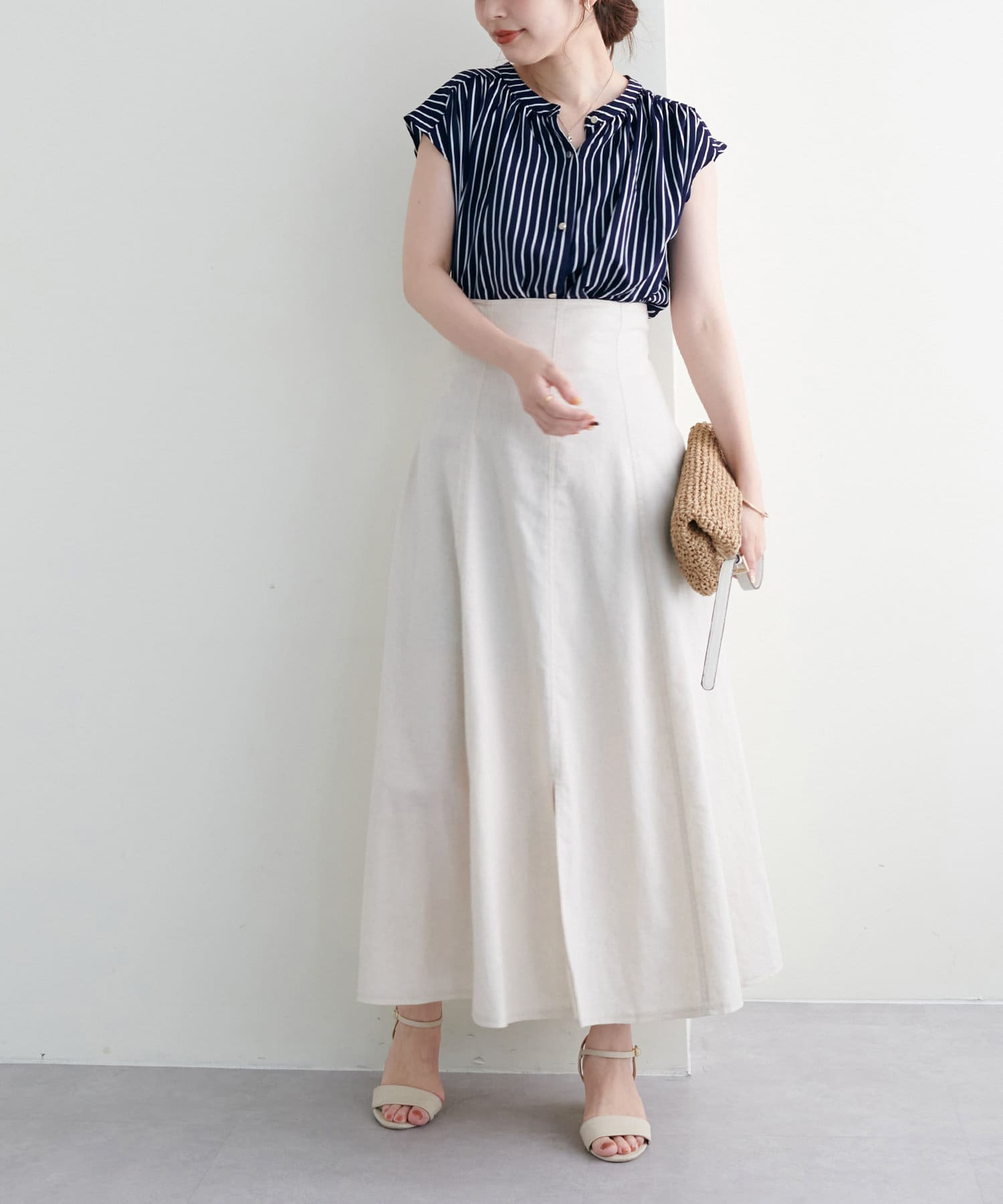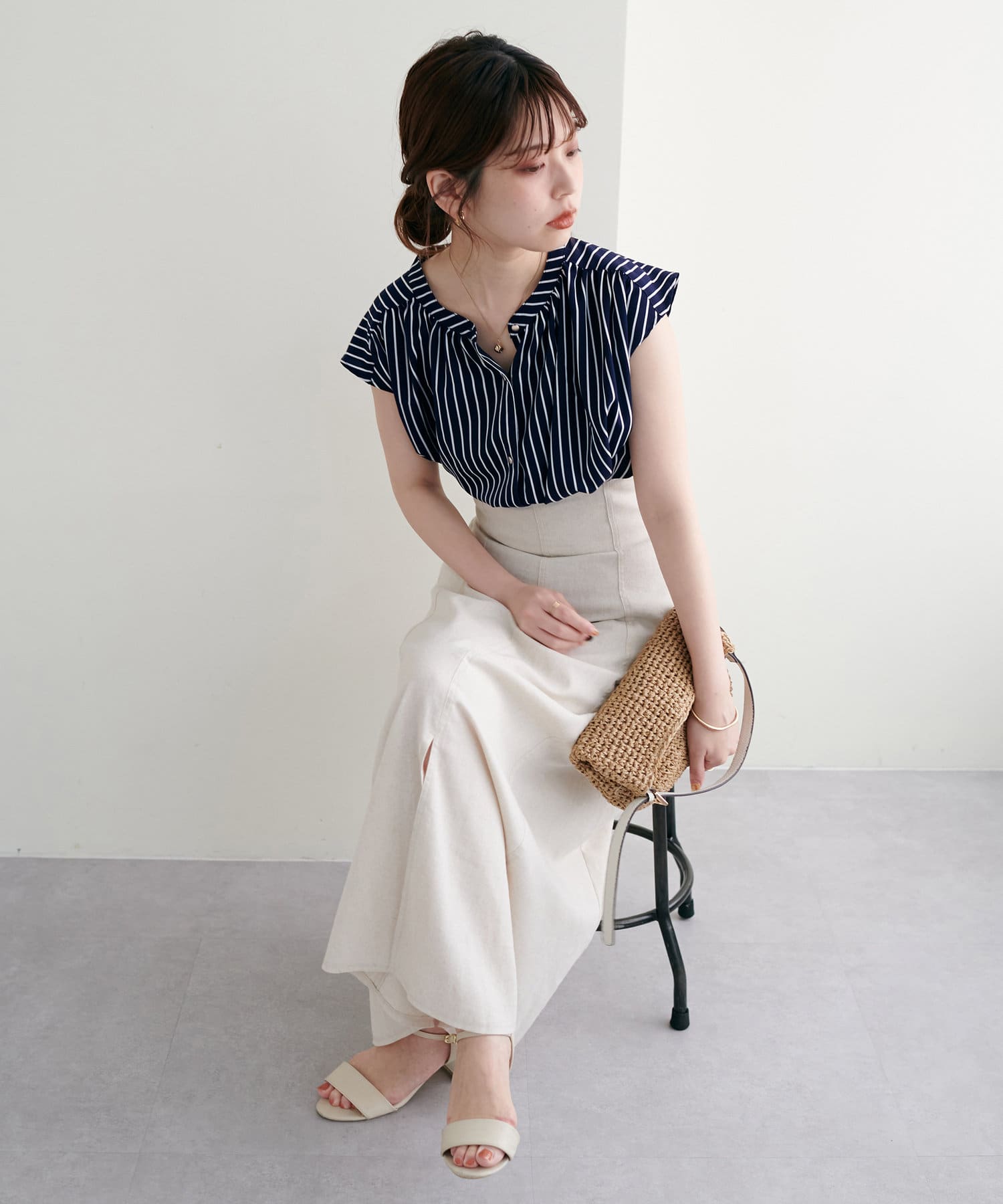 マーメイドラインやナローシルエットのスカートにウエストインですっきり上品に合わせて頂くのはもちろん、