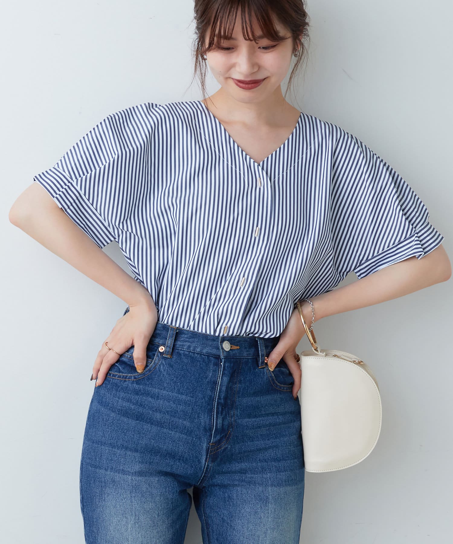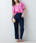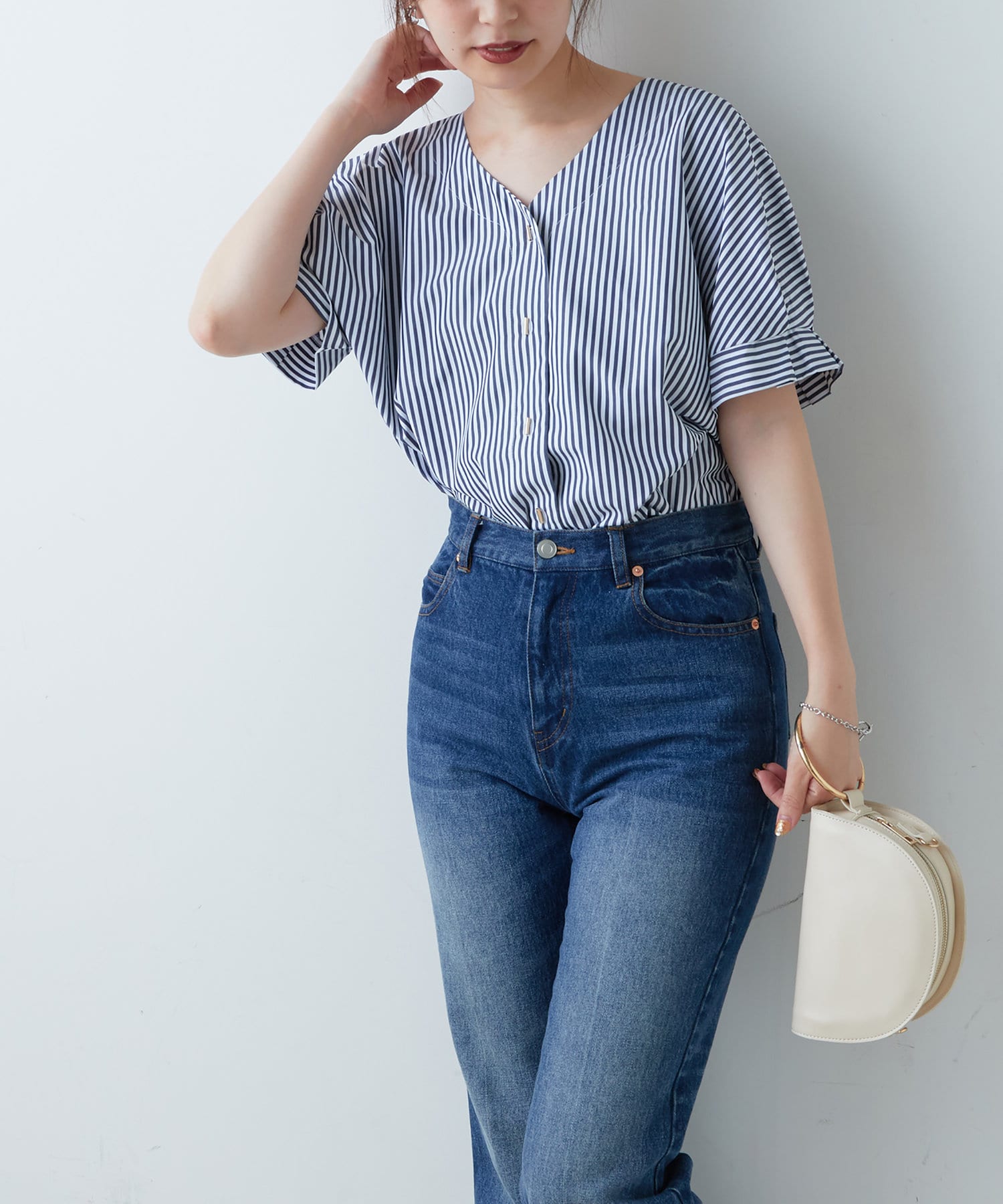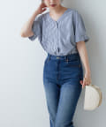 ブルーデニムにさっとウエストアウトで合わせてカジュアルダウンしても、異なる雰囲気でお召し頂けます◎