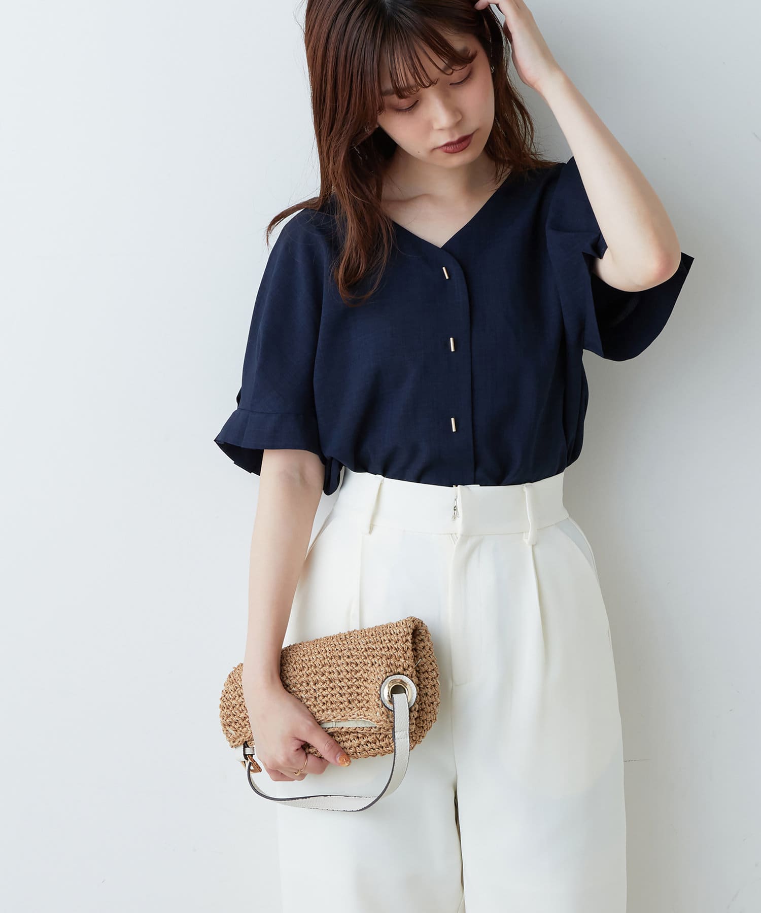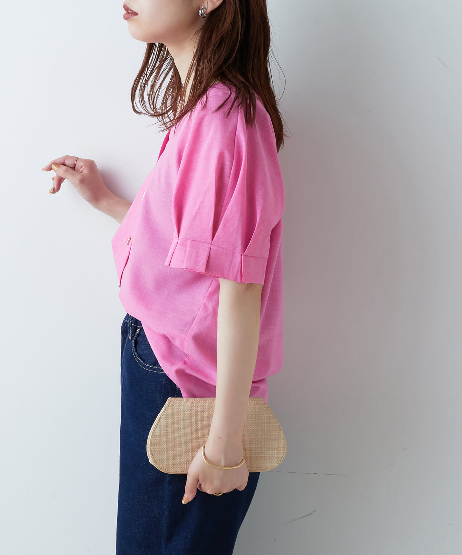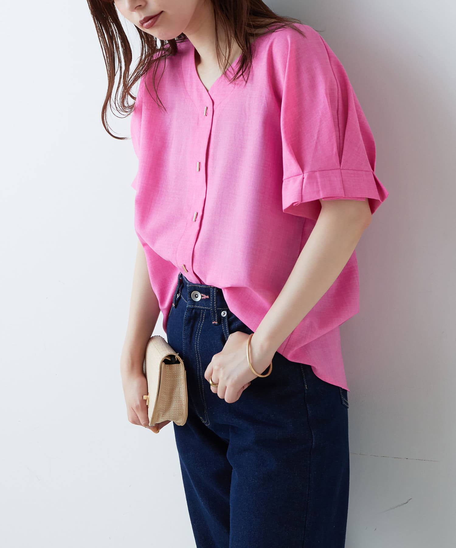 人気のハトメバー釦デザインのブラウスが、今季カラーリング新たに登場。
