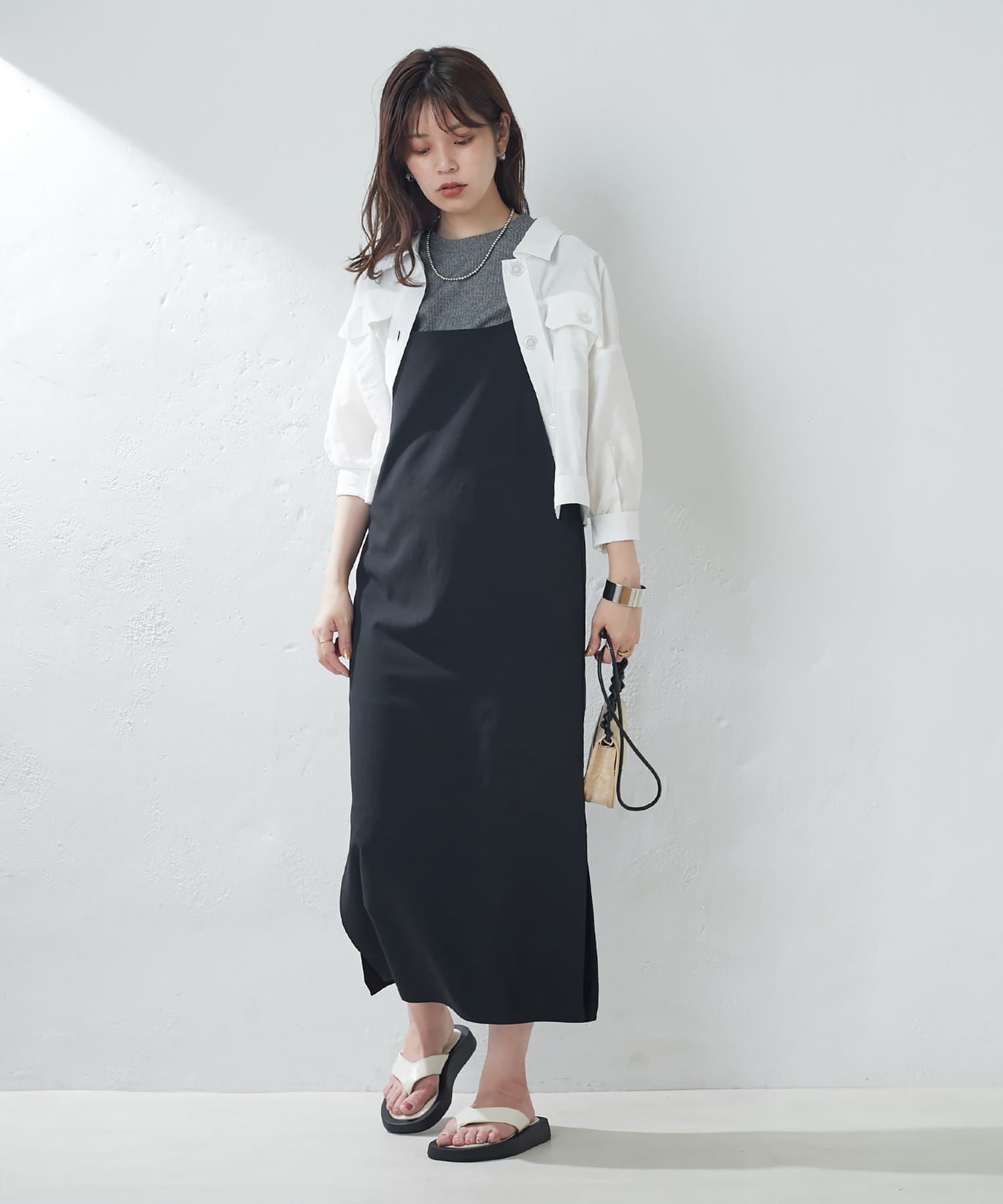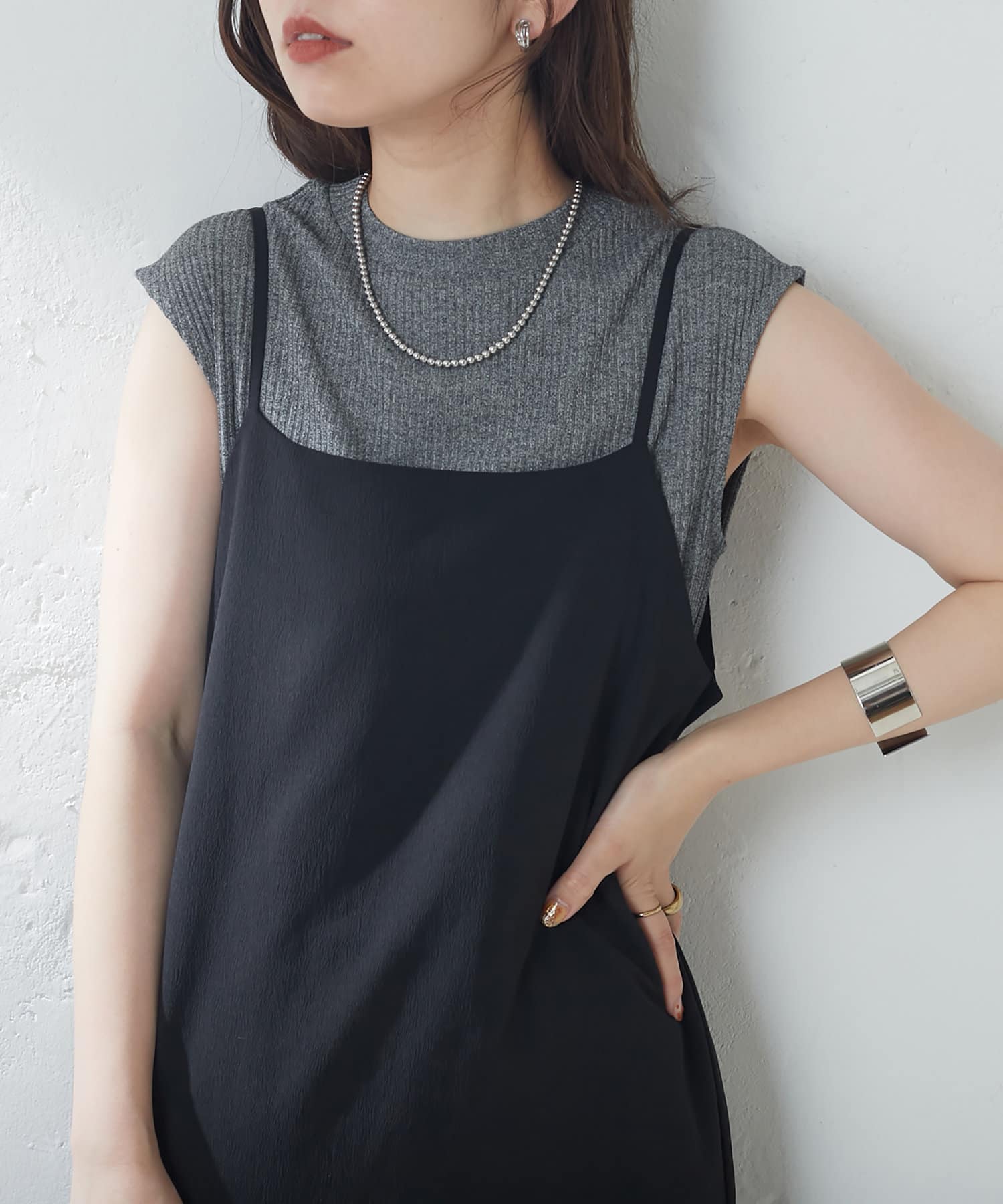 かさばらない生地感で、キャミワンピのインナーとしてもお召し頂きやすいです◎
