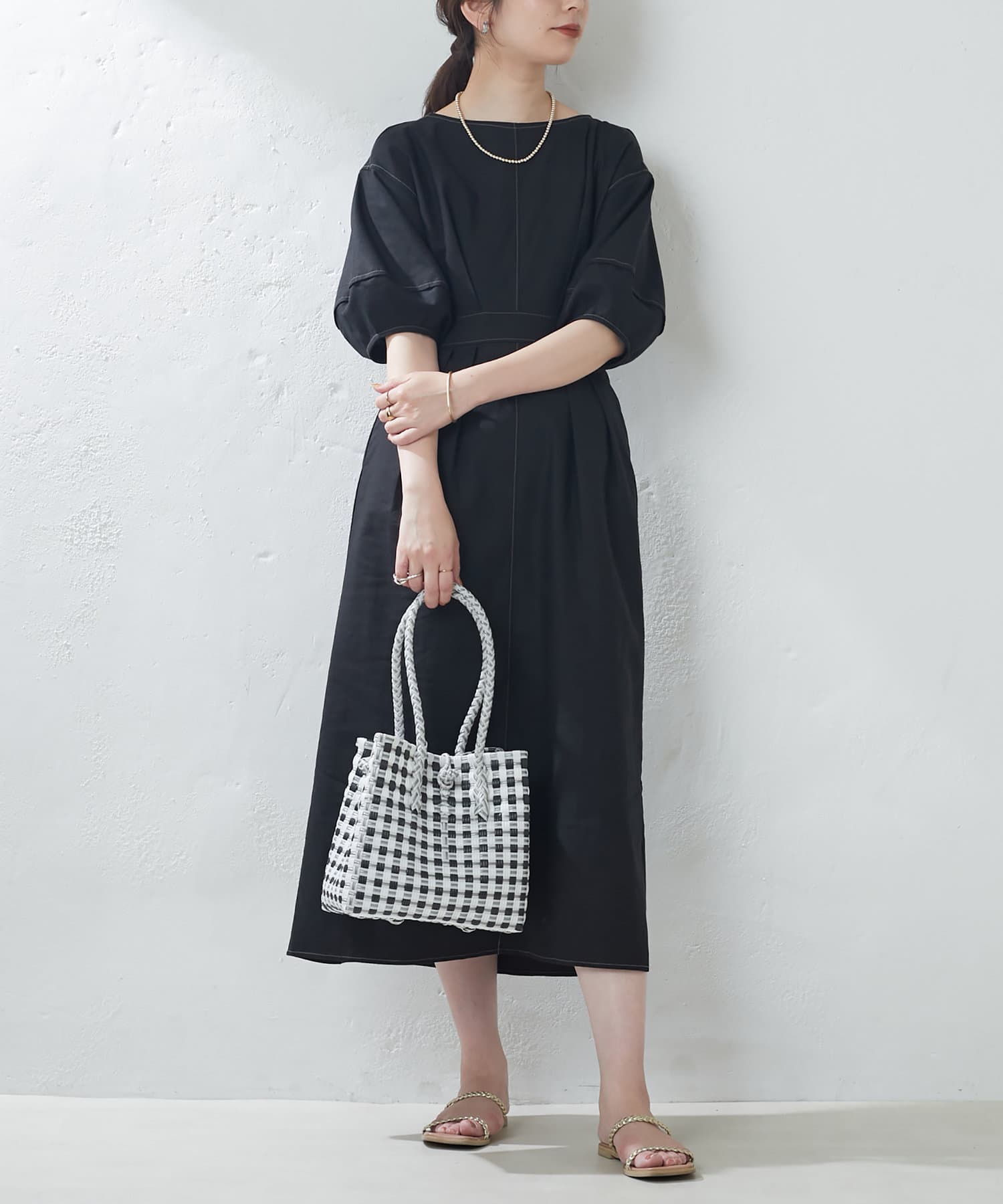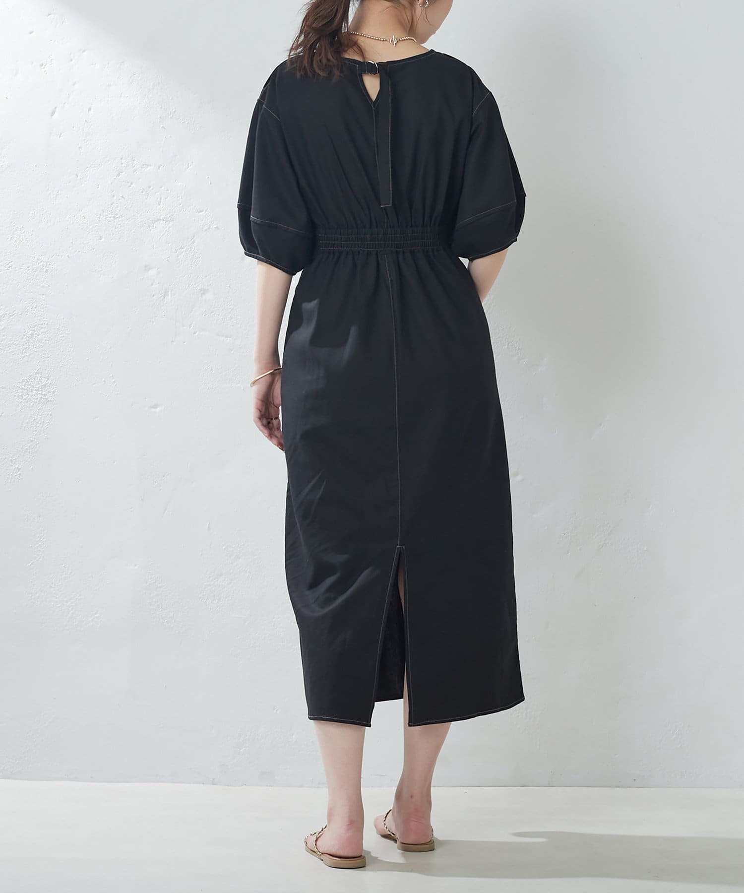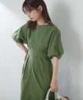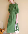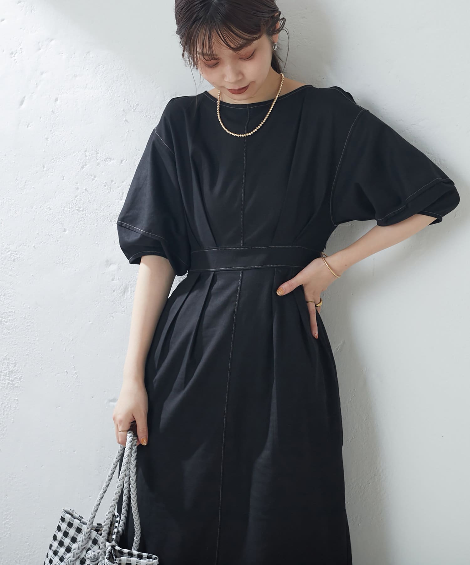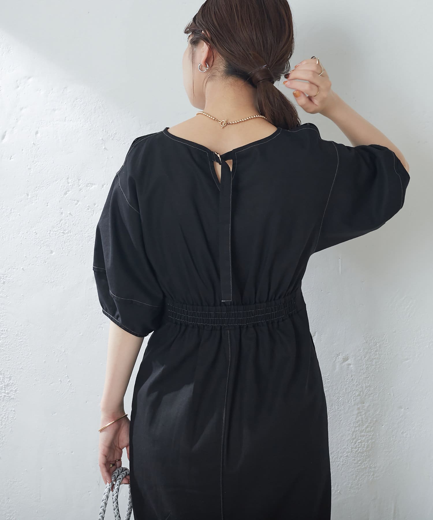 上品なランタンスリーブデザインと、さりげないステッチ使いが魅力な、今季注目のワンピースの登場です。