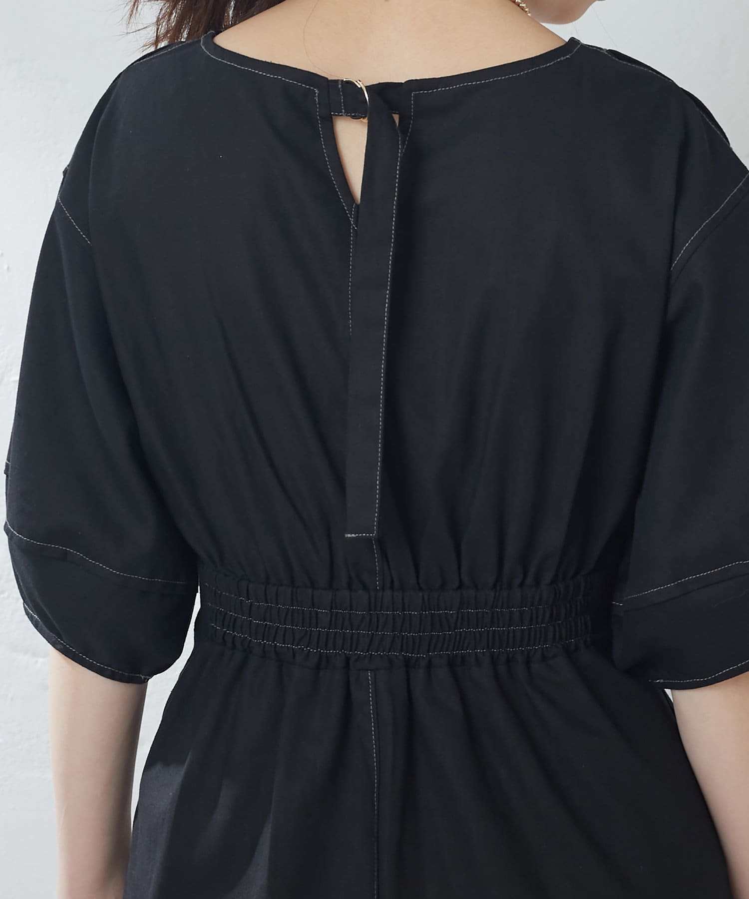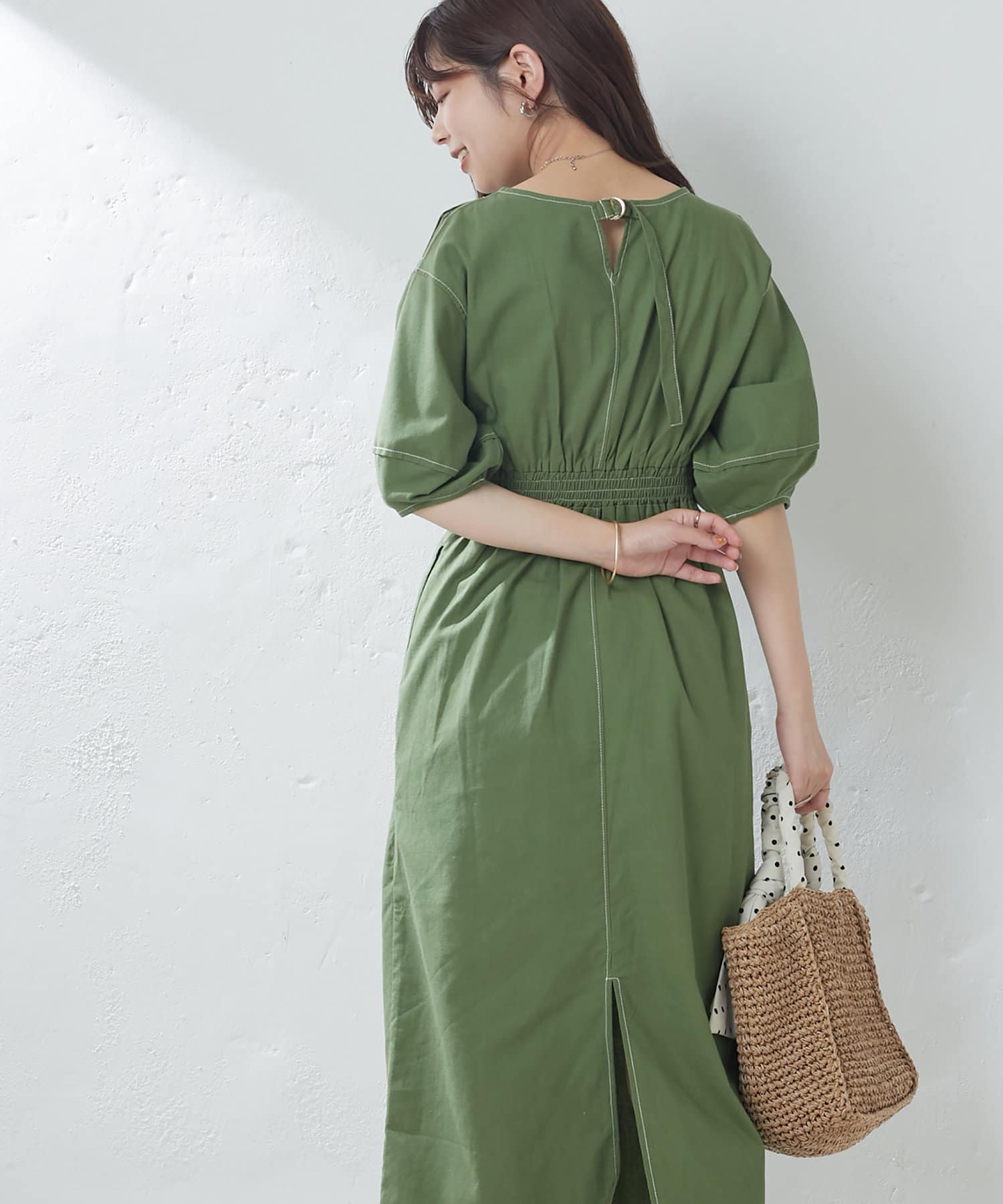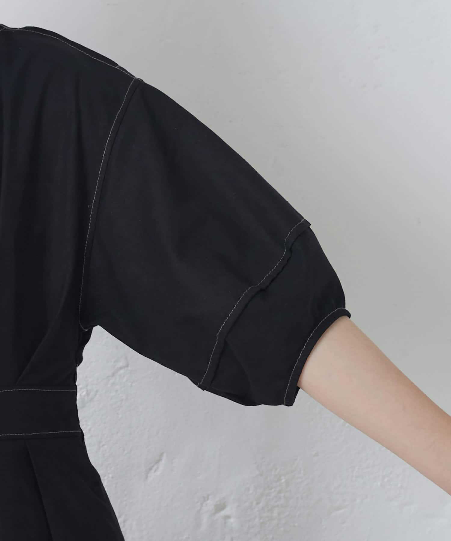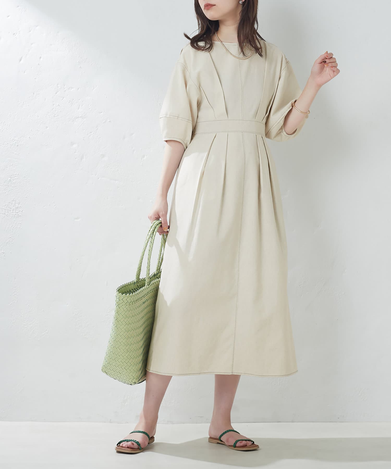 上品なランタンスリーブデザインと、さりげないステッチ使いが魅力な、今季注目のワンピースの登場です。