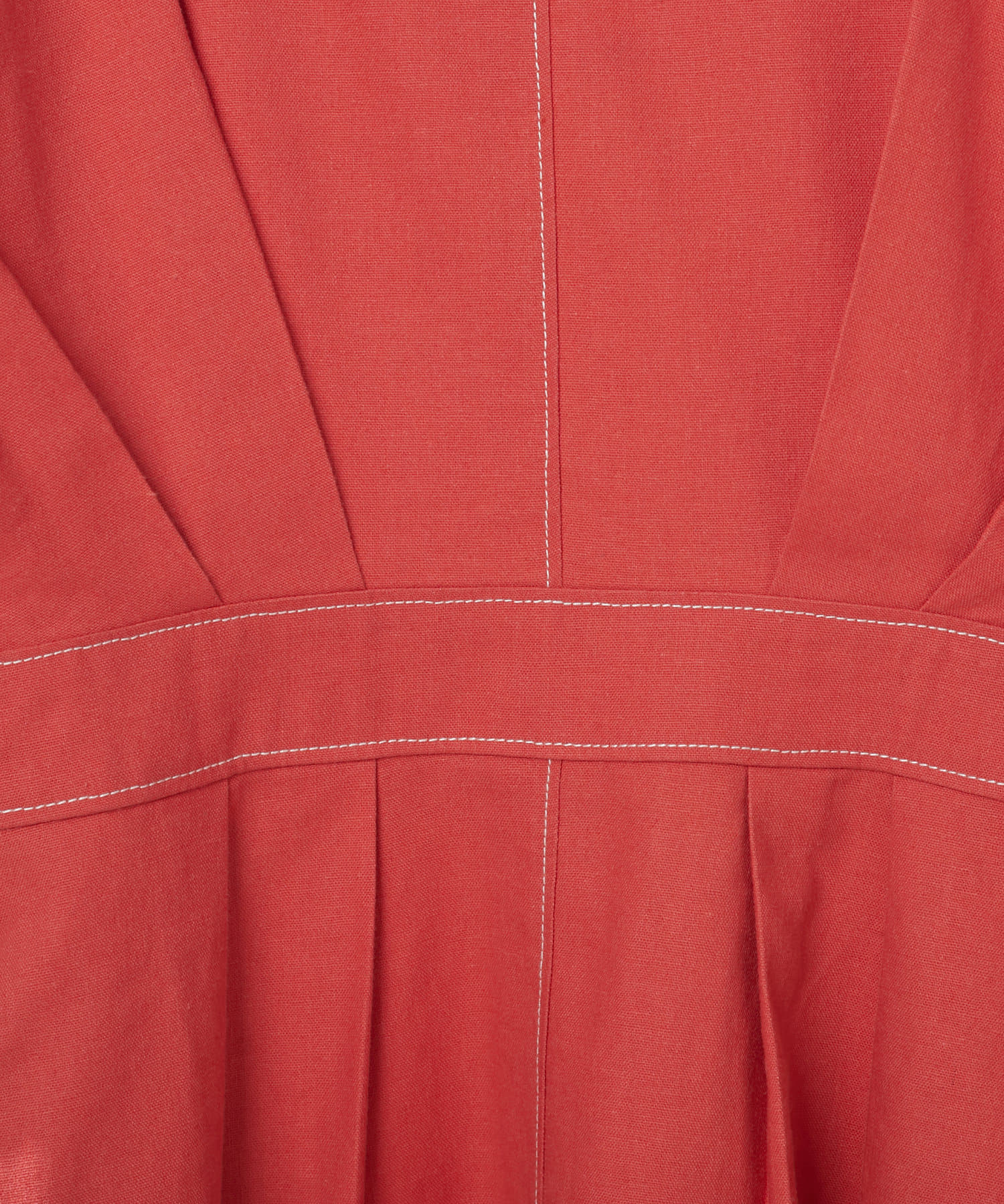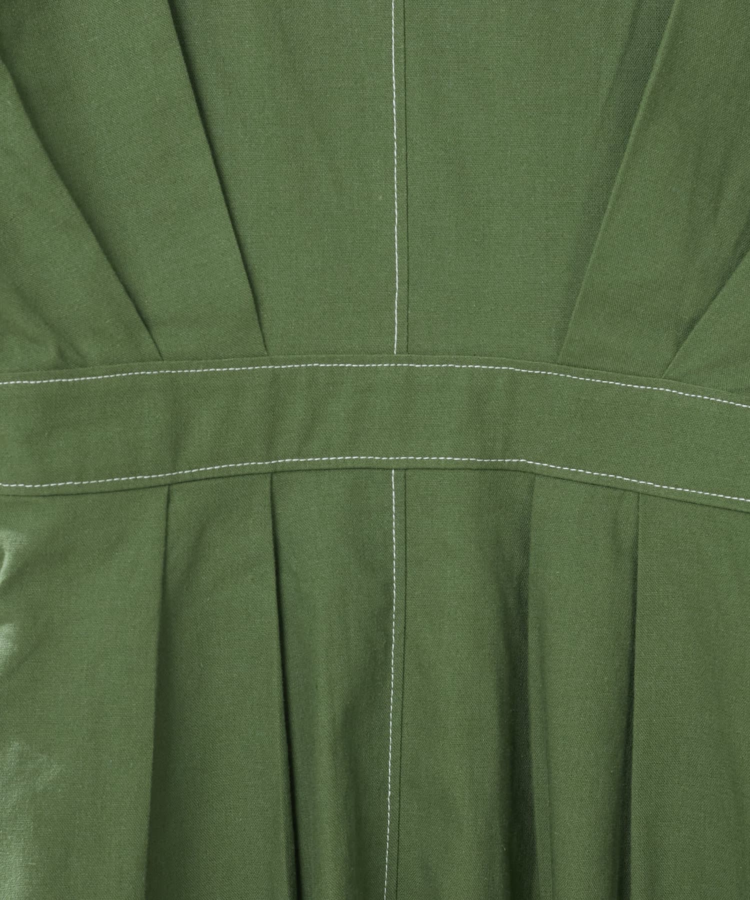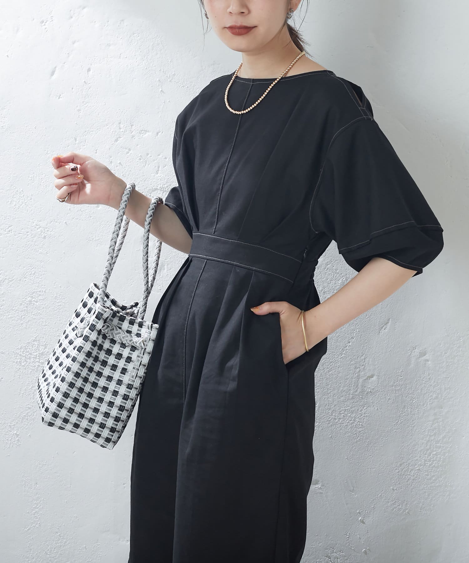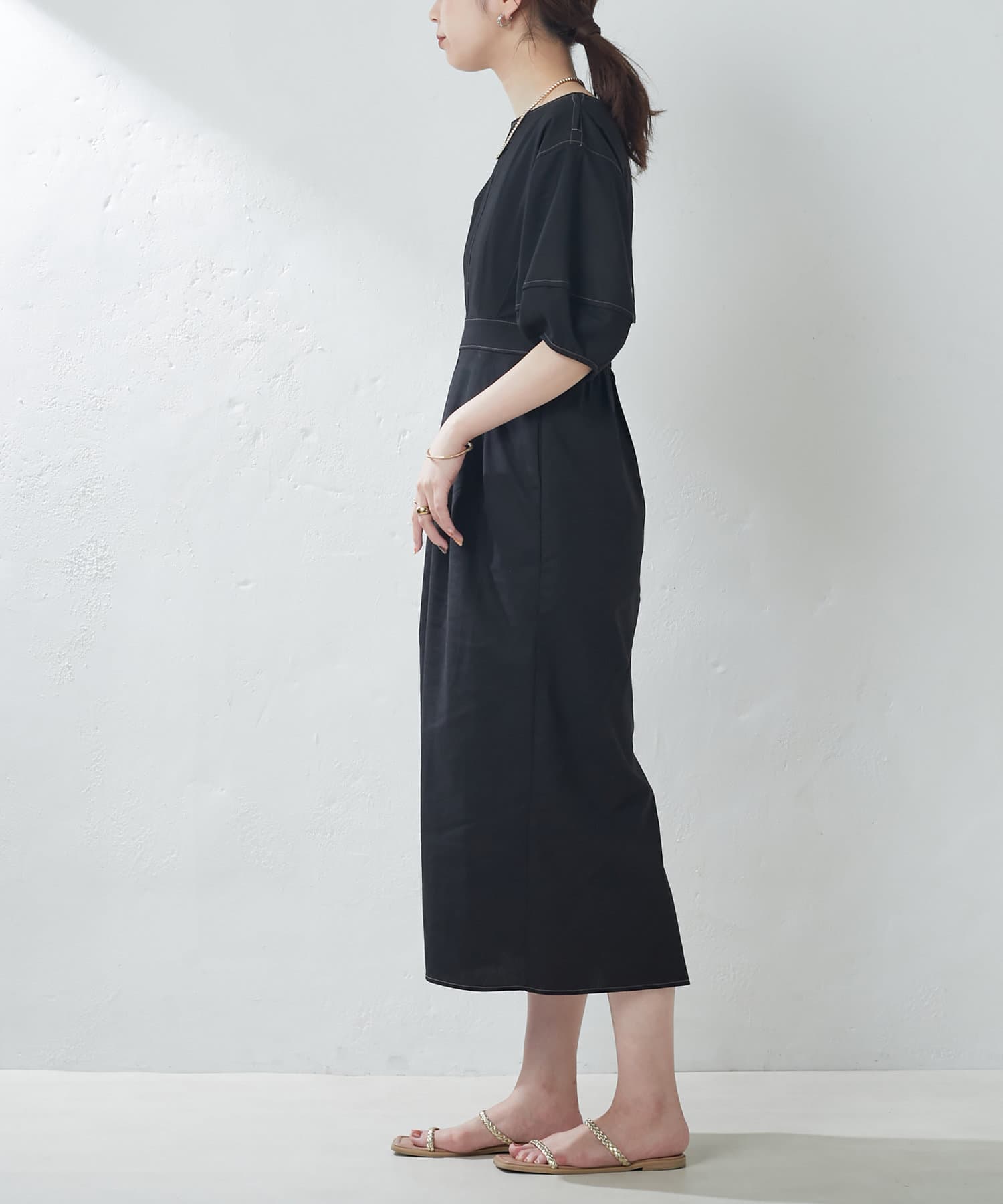 上品なランタンスリーブデザインと、さりげないステッチ使いが魅力な、今季注目のワンピースの登場です。