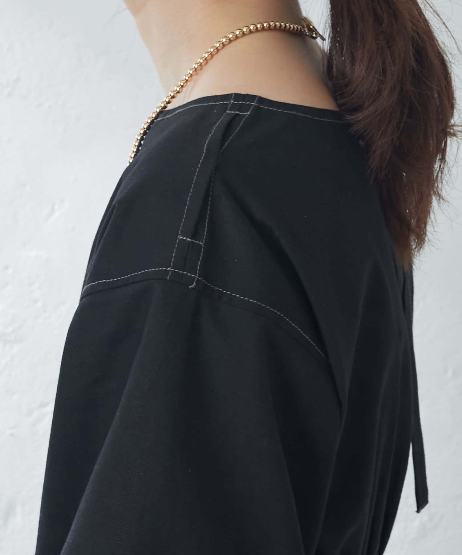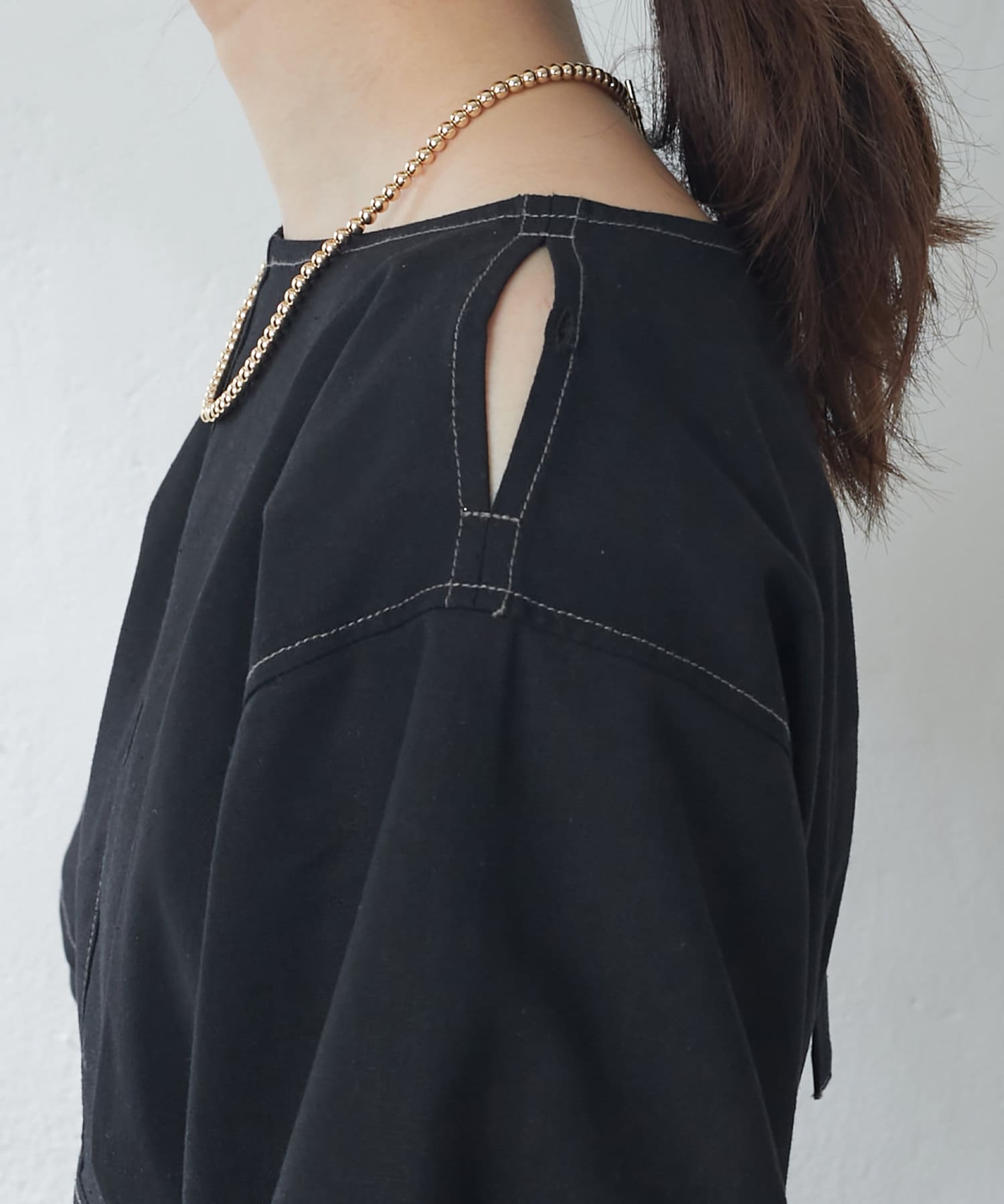 ゆとりのアームラインは腕周りを華奢見せしてくれ、生地が腕にも当たりにくく涼しく着て頂けます。