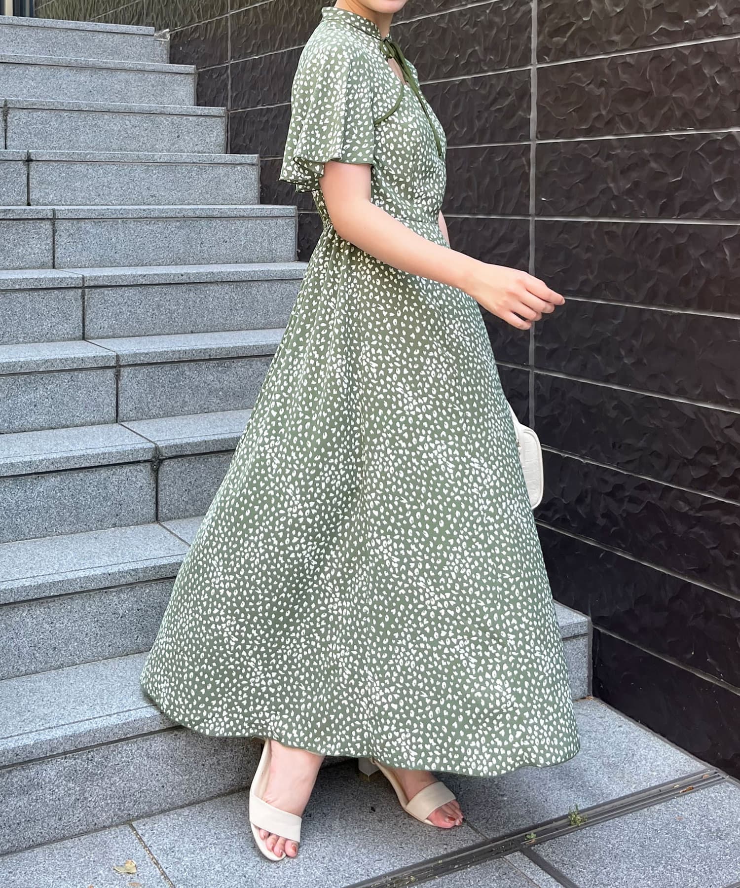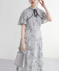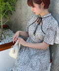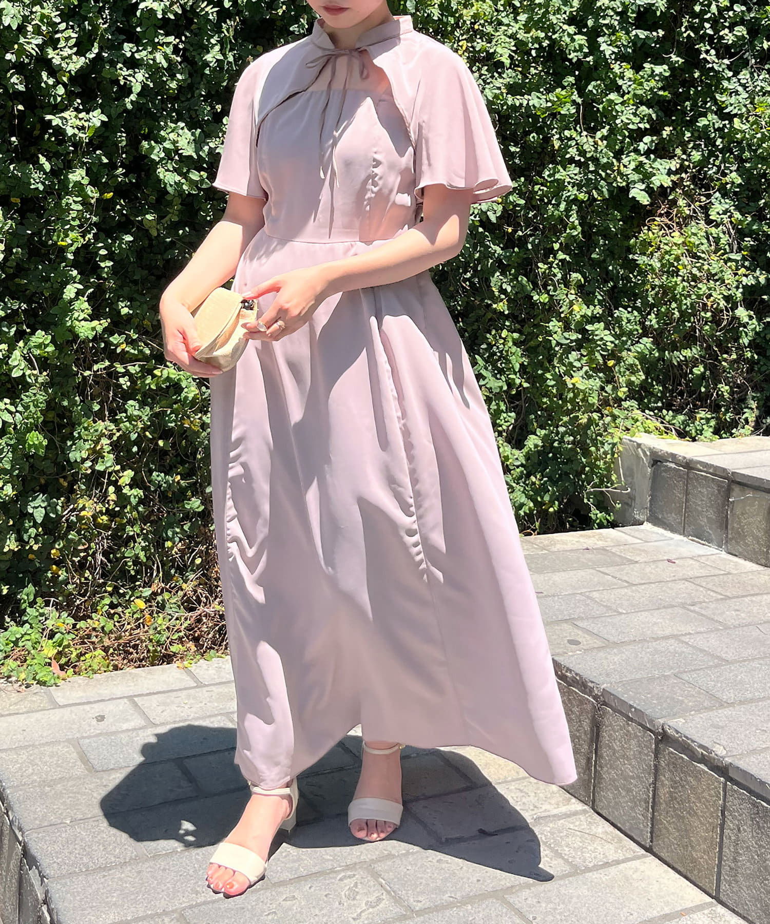 胸元で結ぶリボンがキュートな魅力を引き出して華やかに演出してくれます。
