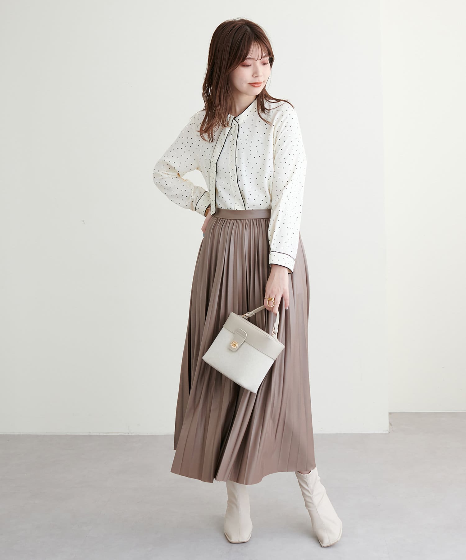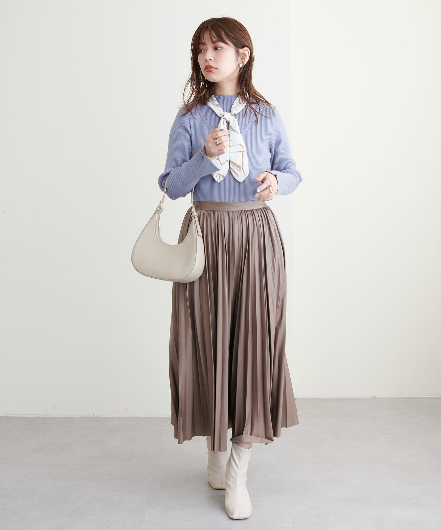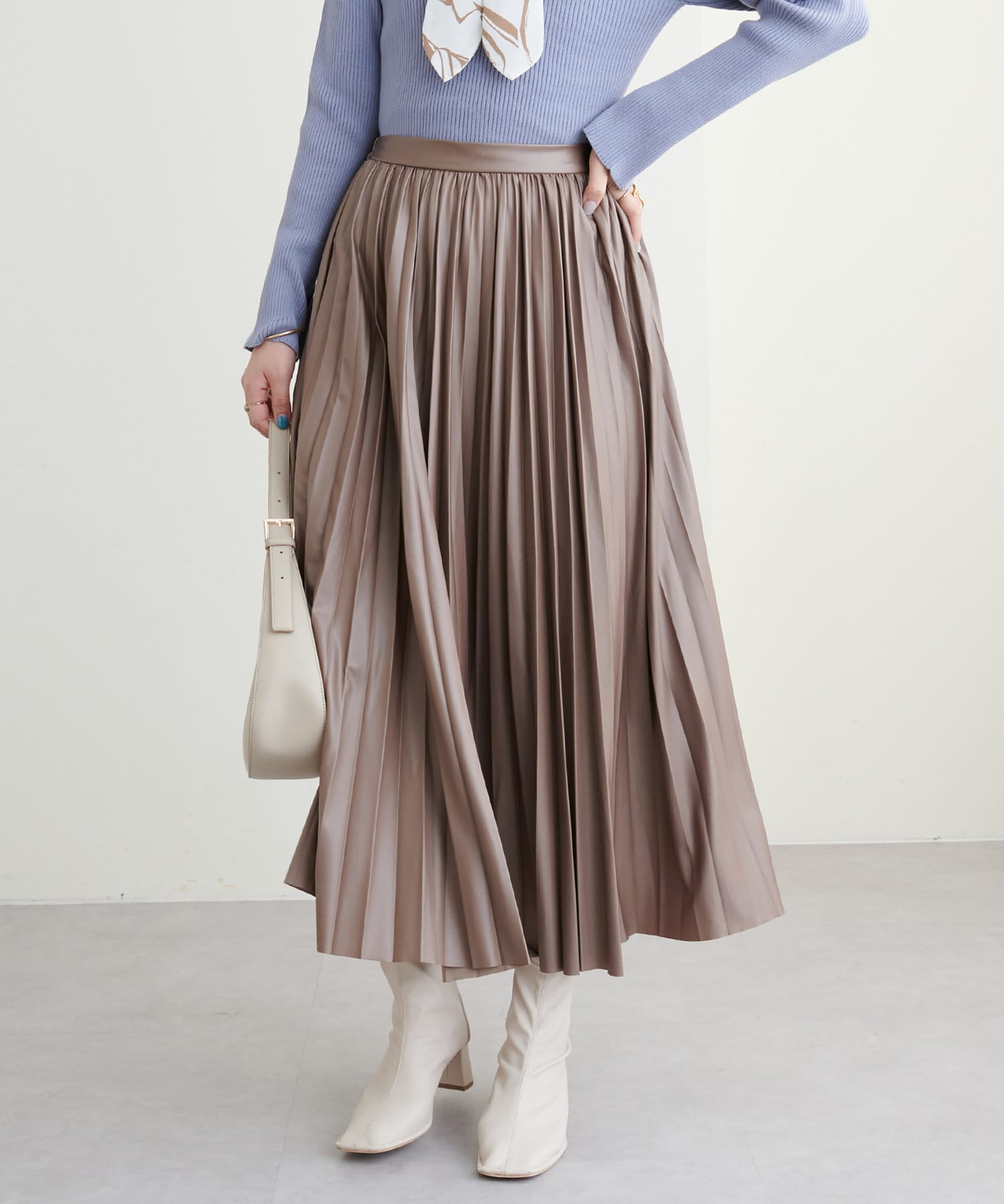 柔らかくややマットでニュアンス感のある質感が、いつものキレイめなコーデにも取り入れやすいかと思います。