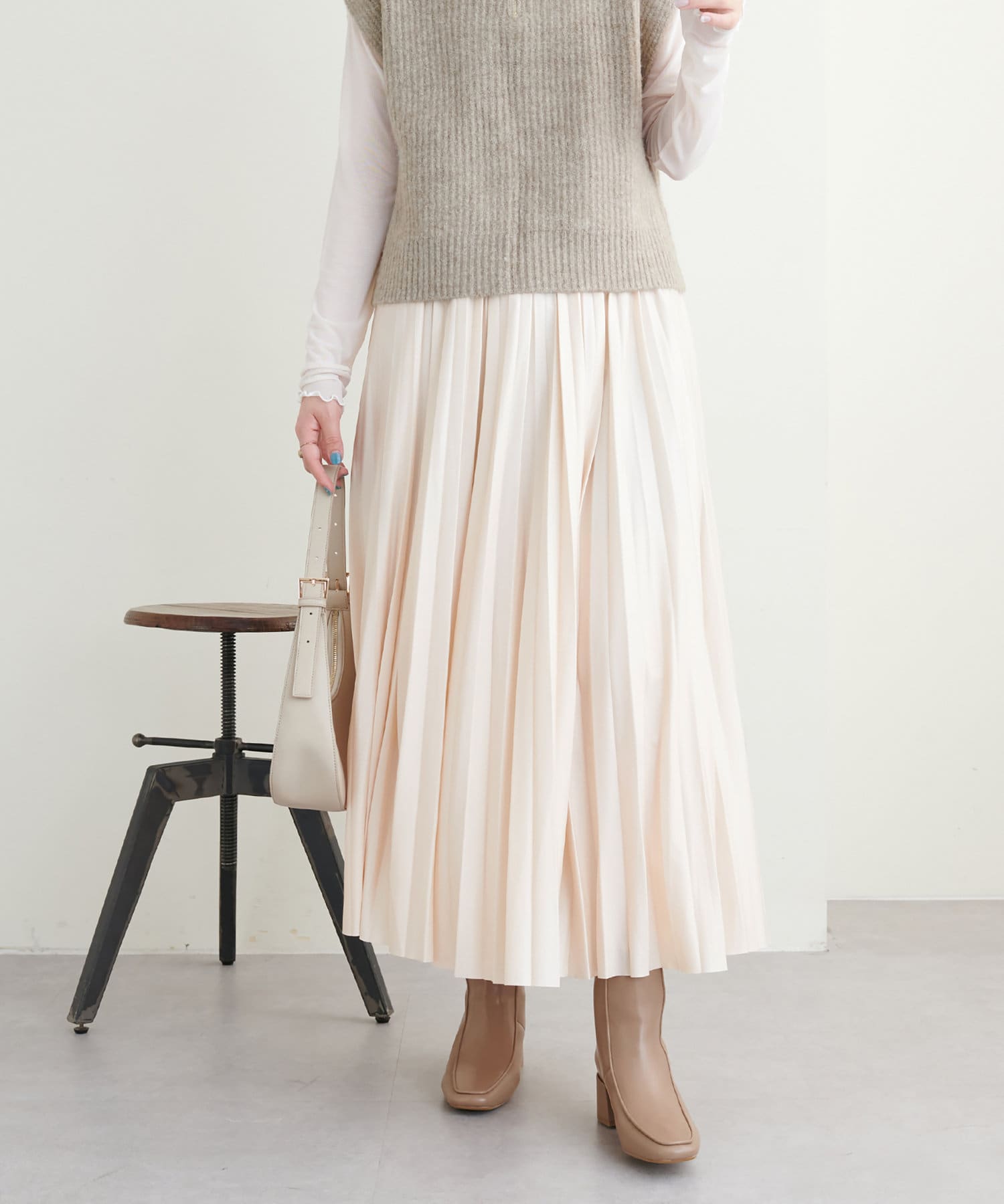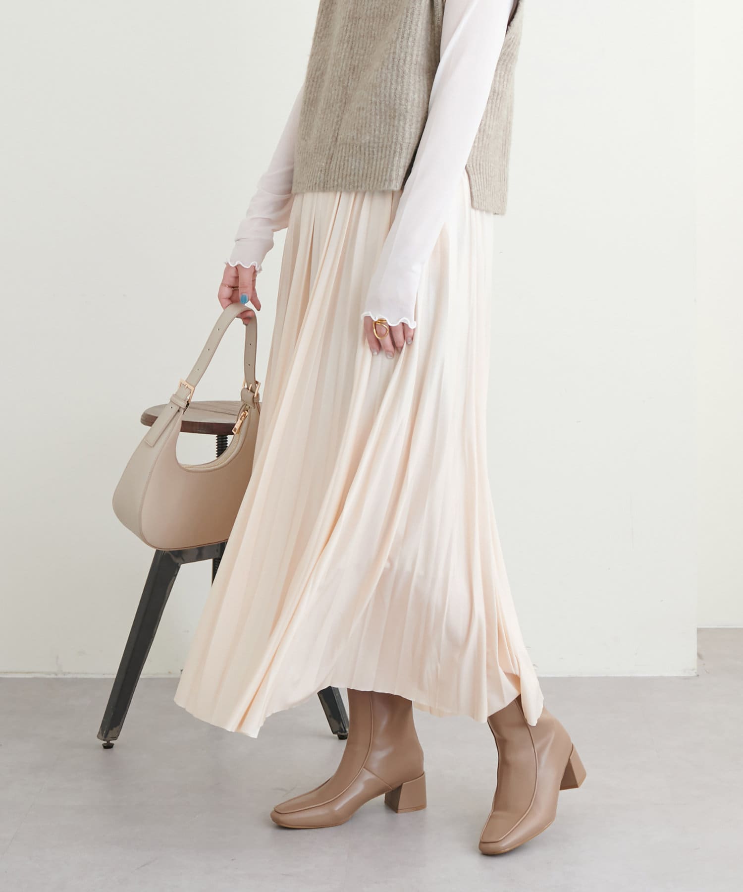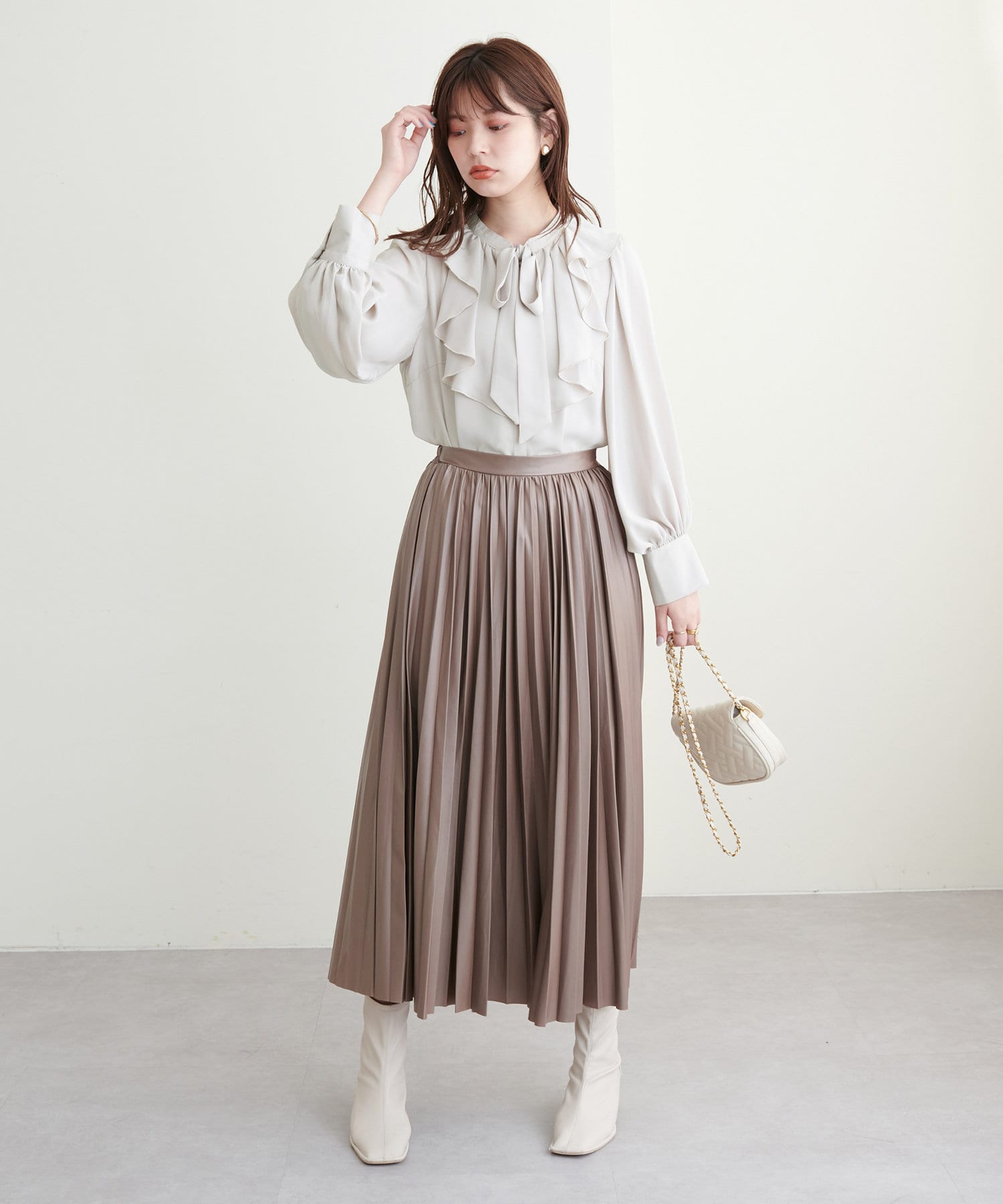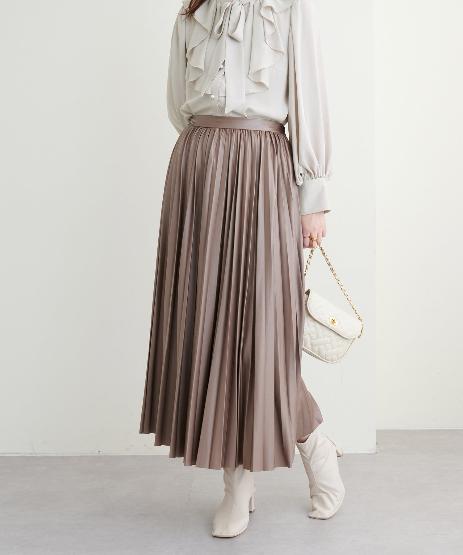 柔らかくややマットでニュアンス感のある質感が、いつものキレイめなコーデにも取り入れやすいかと思います。