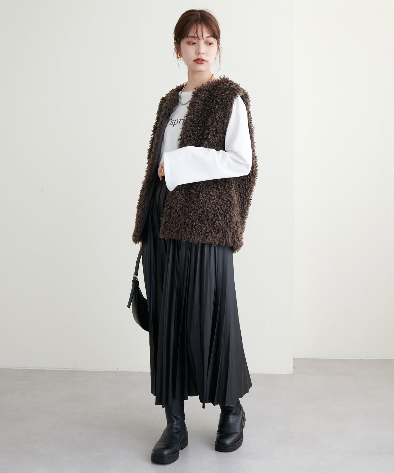 同じくベーシックなカラーで上品でモードな印象に寄せるのも秋冬らしく仕上がるのでおすすめです!