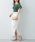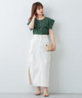 カットオフデザインの裾と、サイドにスリットを施し、程良い肌見せで女性らしさと今年らしさをプラスしました。