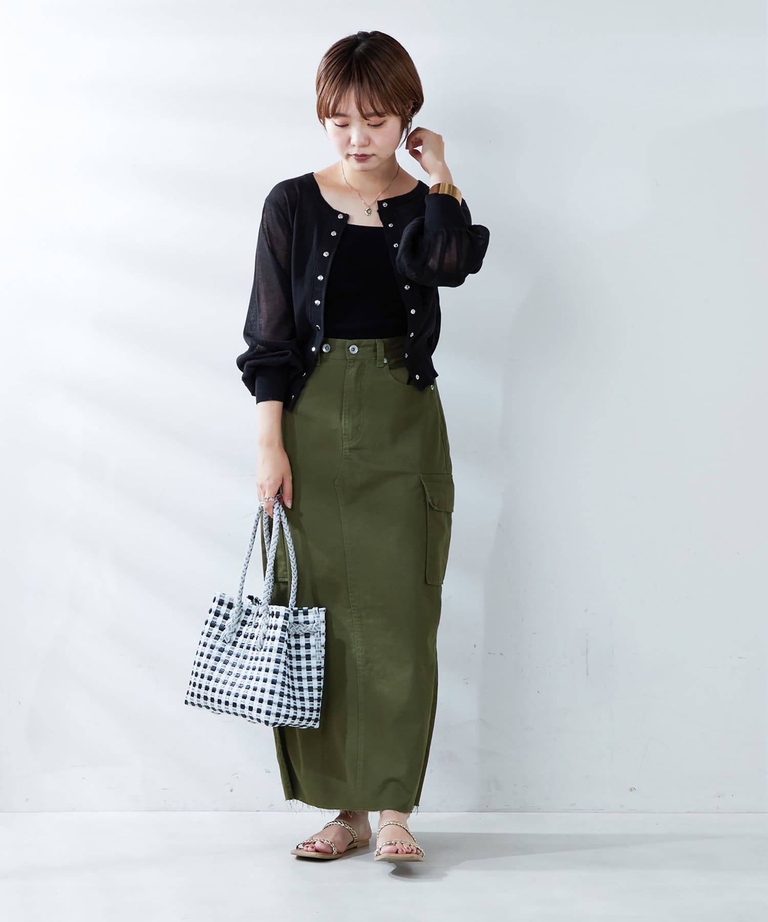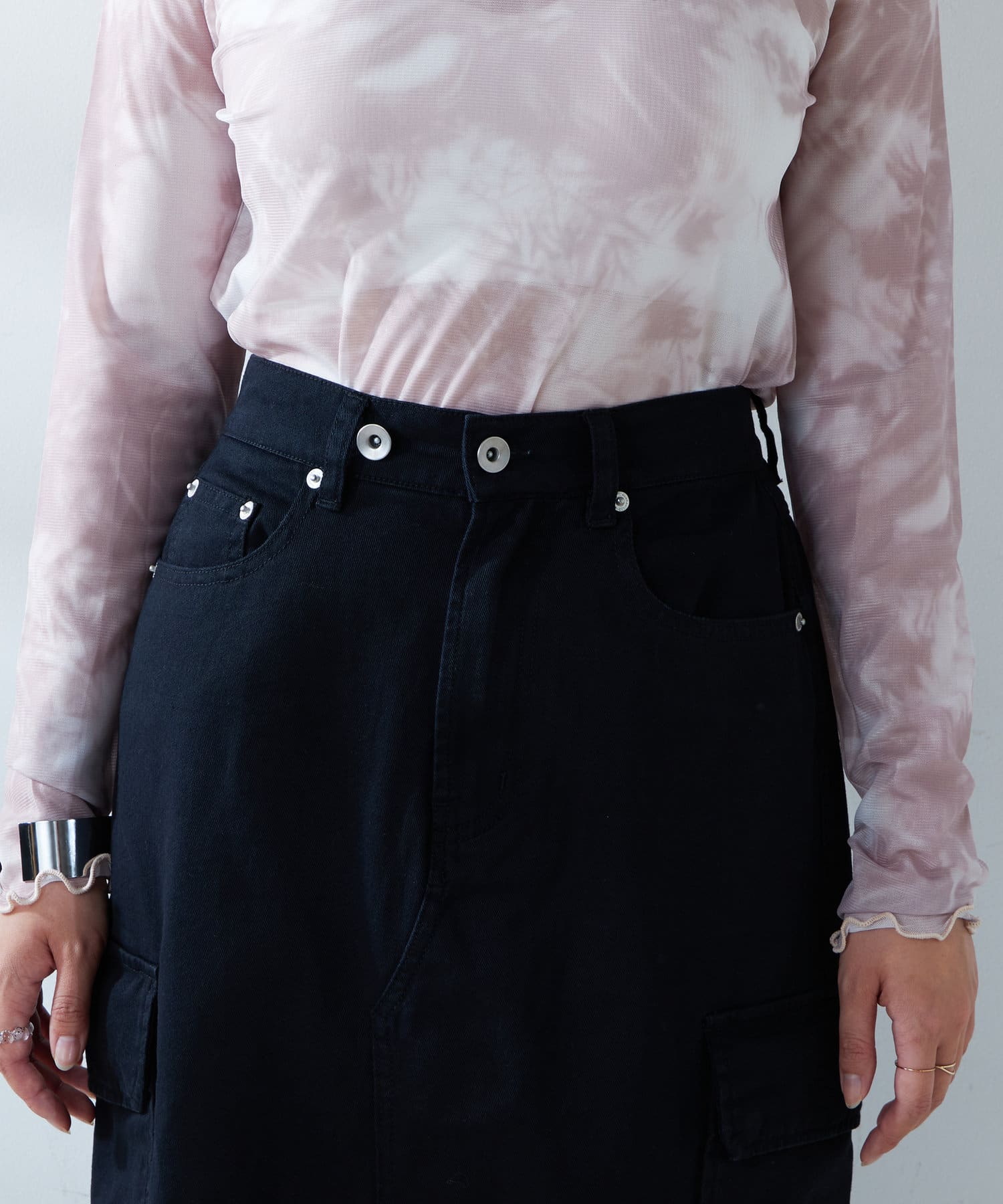 ミリタリー調デザインに仕上げた今季注目のスカート。