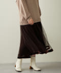 341400310 裾ベロアパイピングチュールプリーツスカート