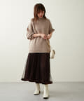 ふんわり落ち感のある生地に動くたびチュールが揺れ、高級感のある一品。