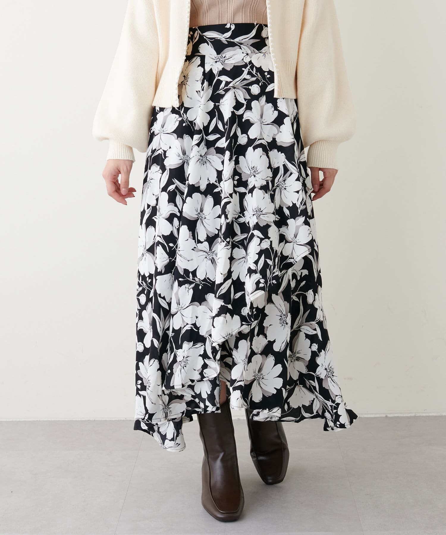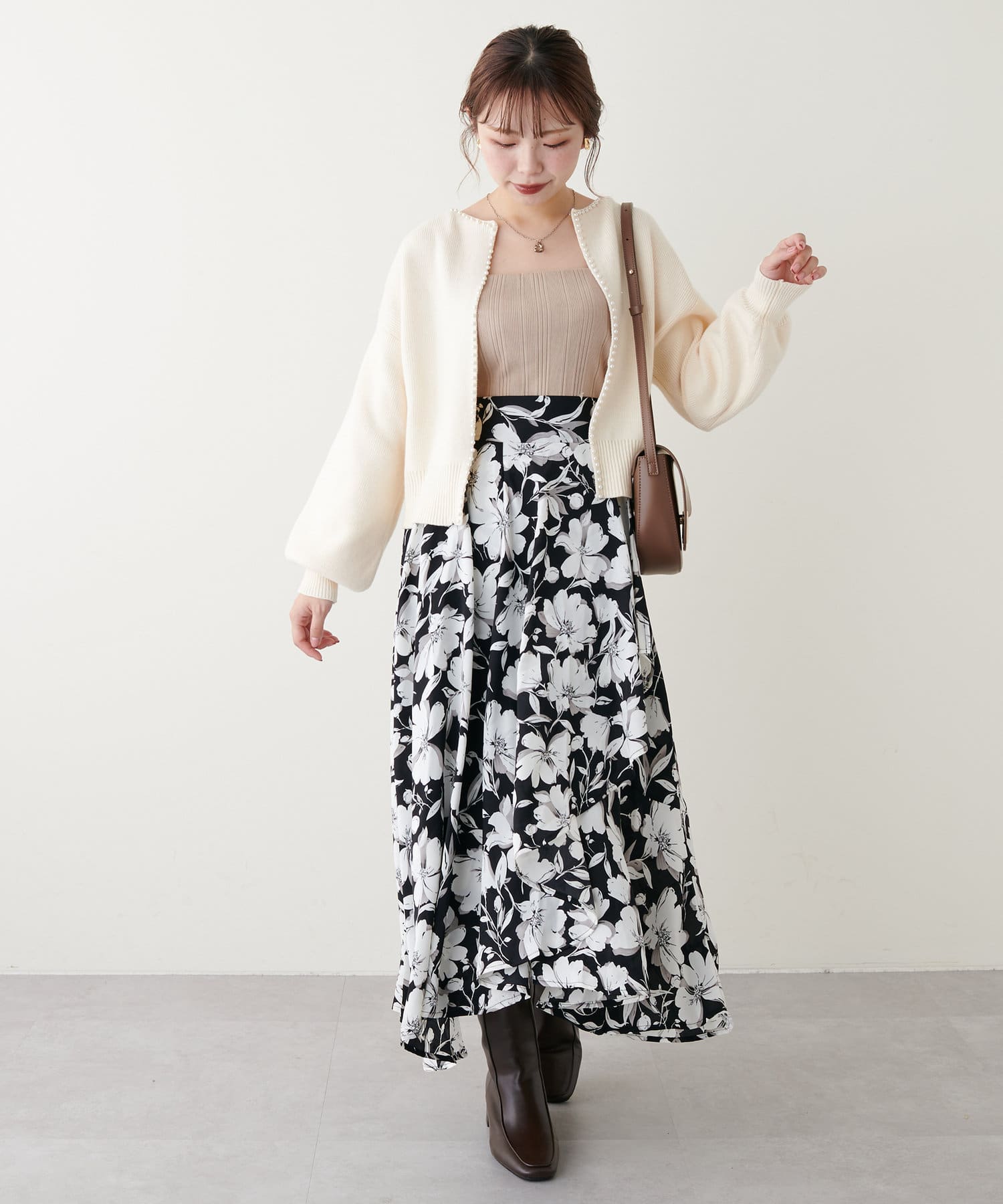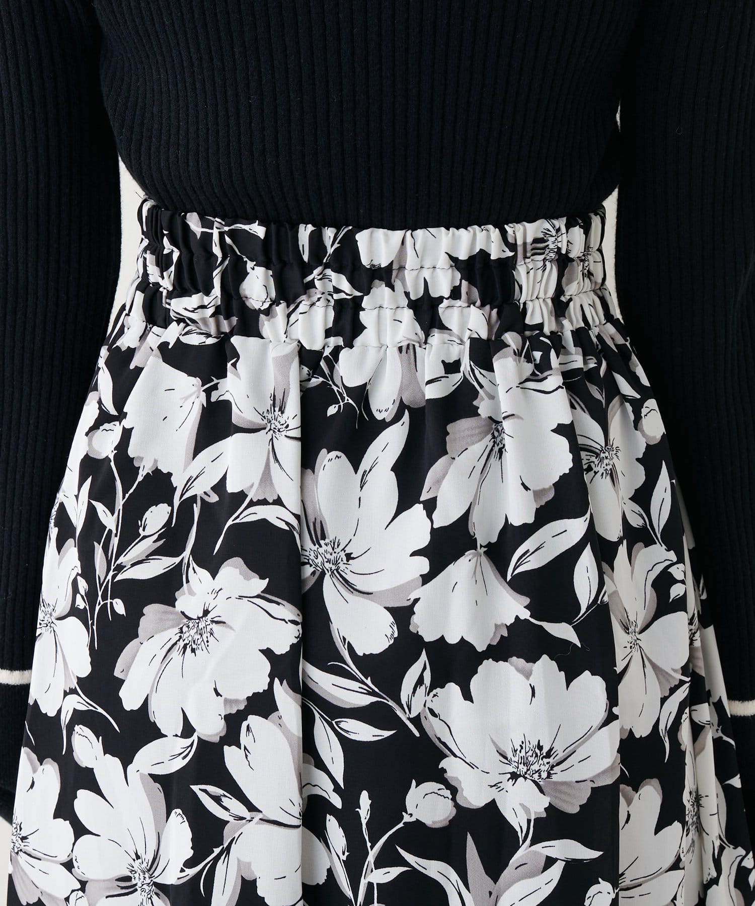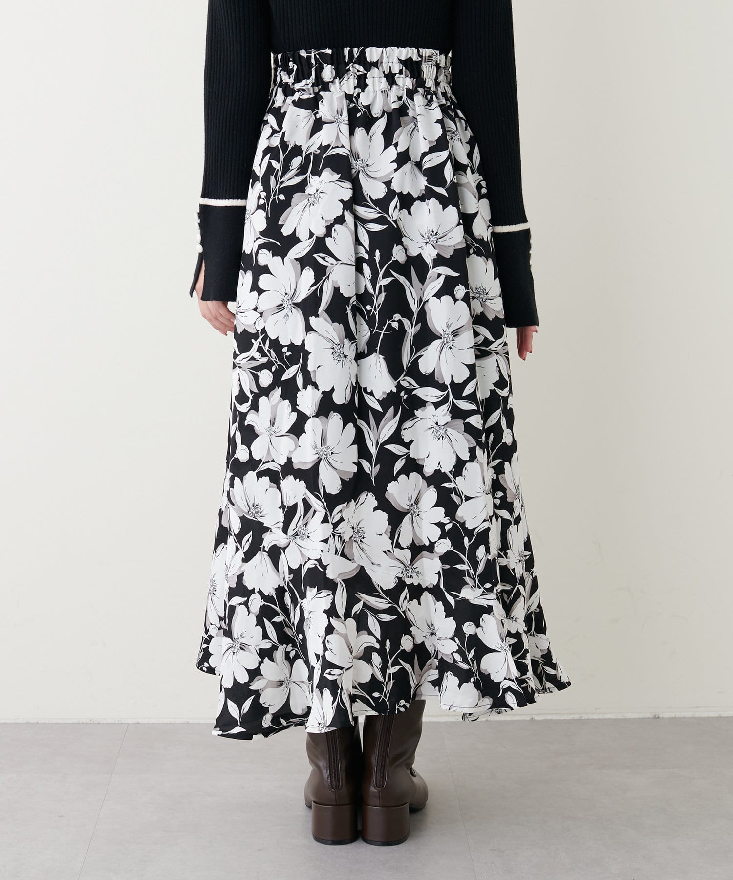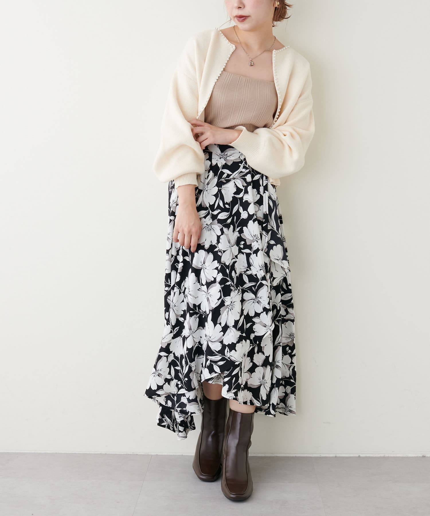 アシメ切替で広がる裾のデザインが、動く度にひらひらと揺れる大人かわいい雰囲気を演出します。
