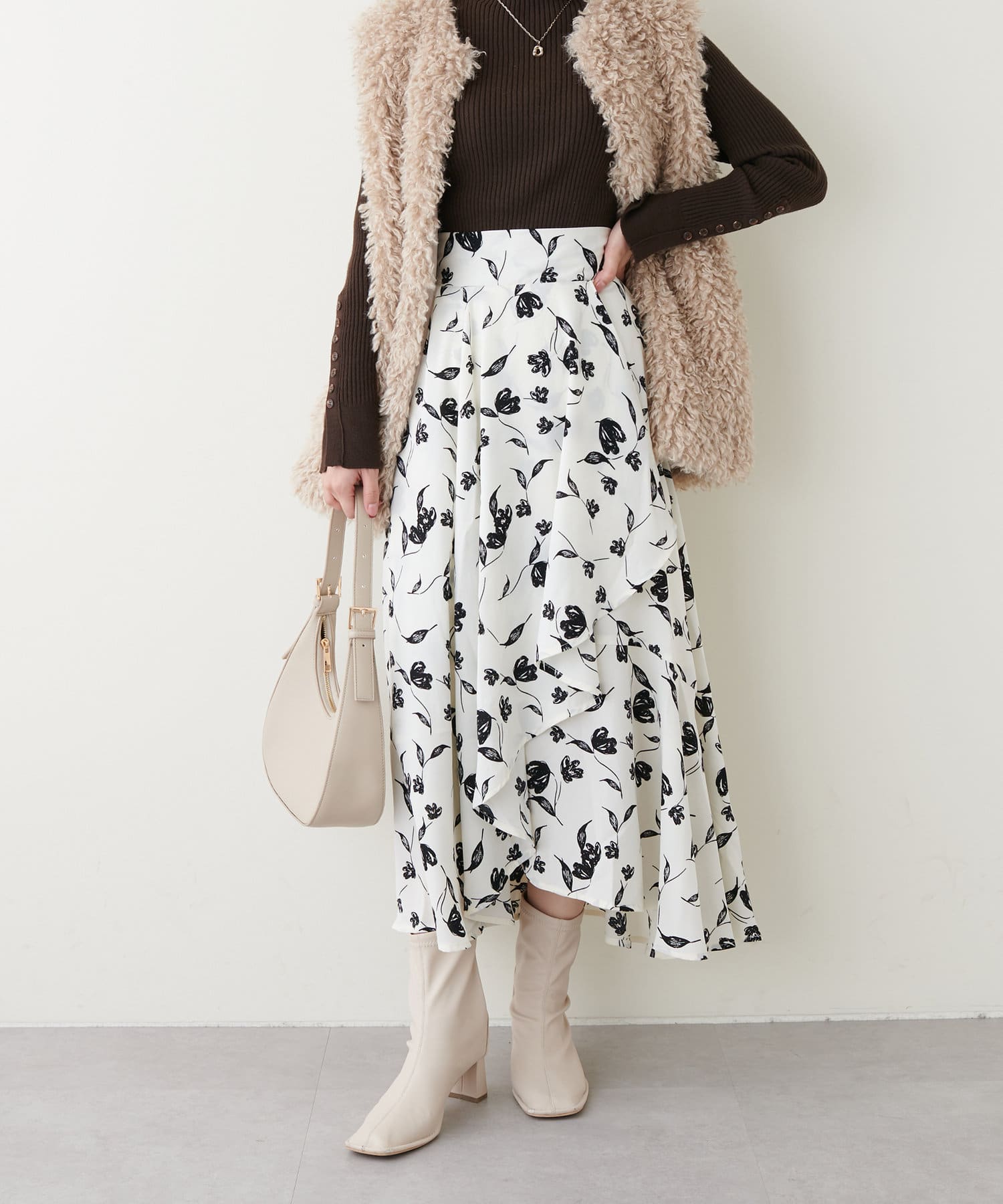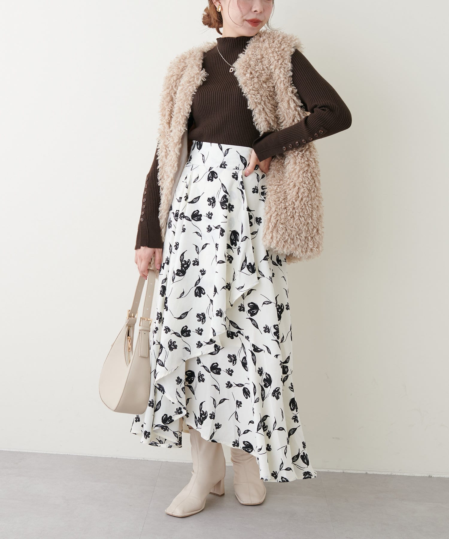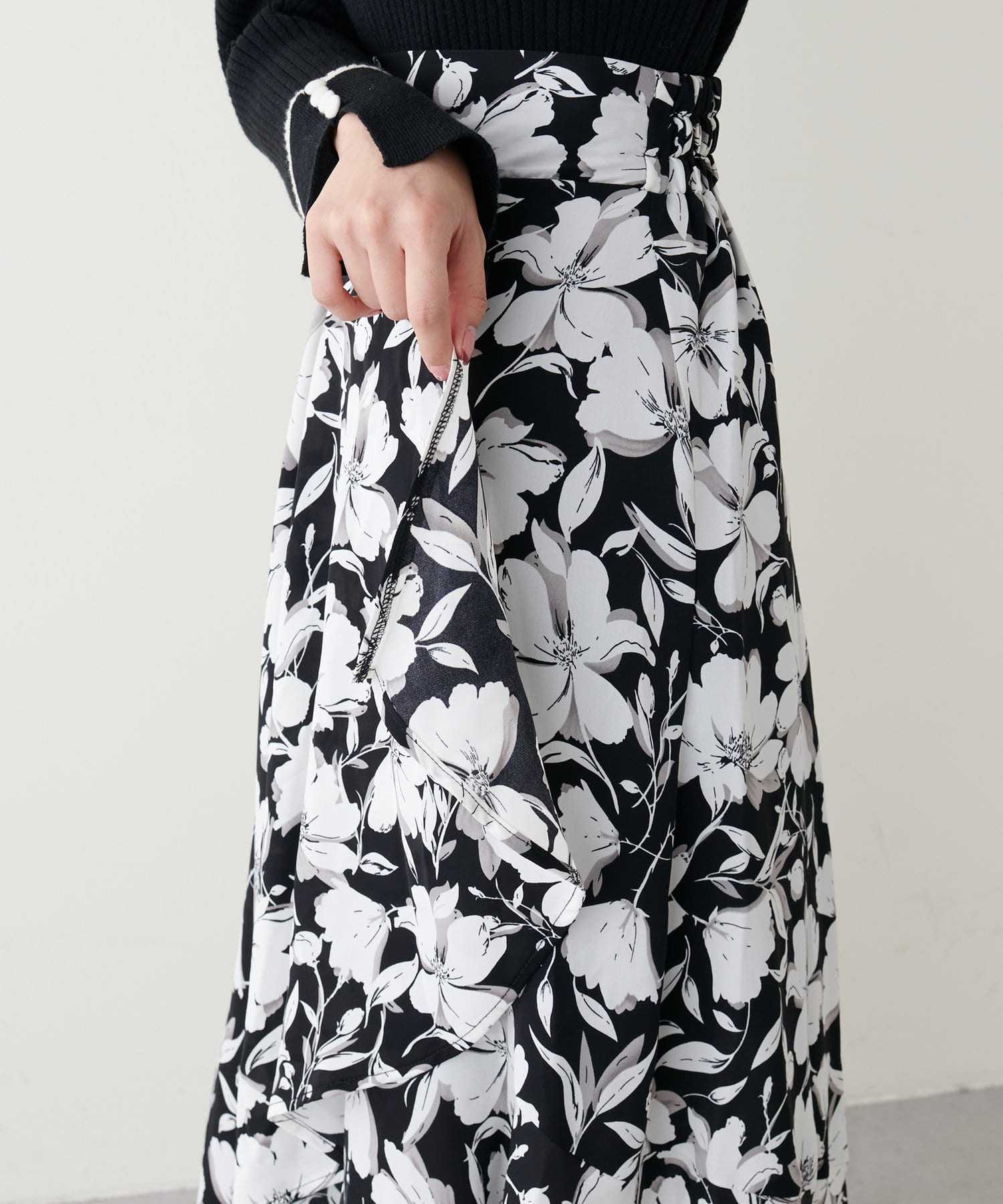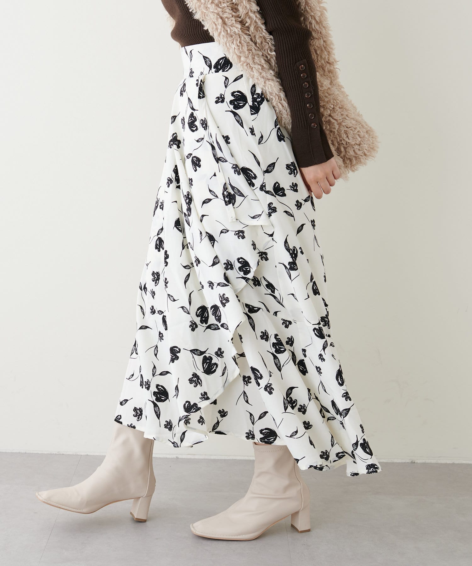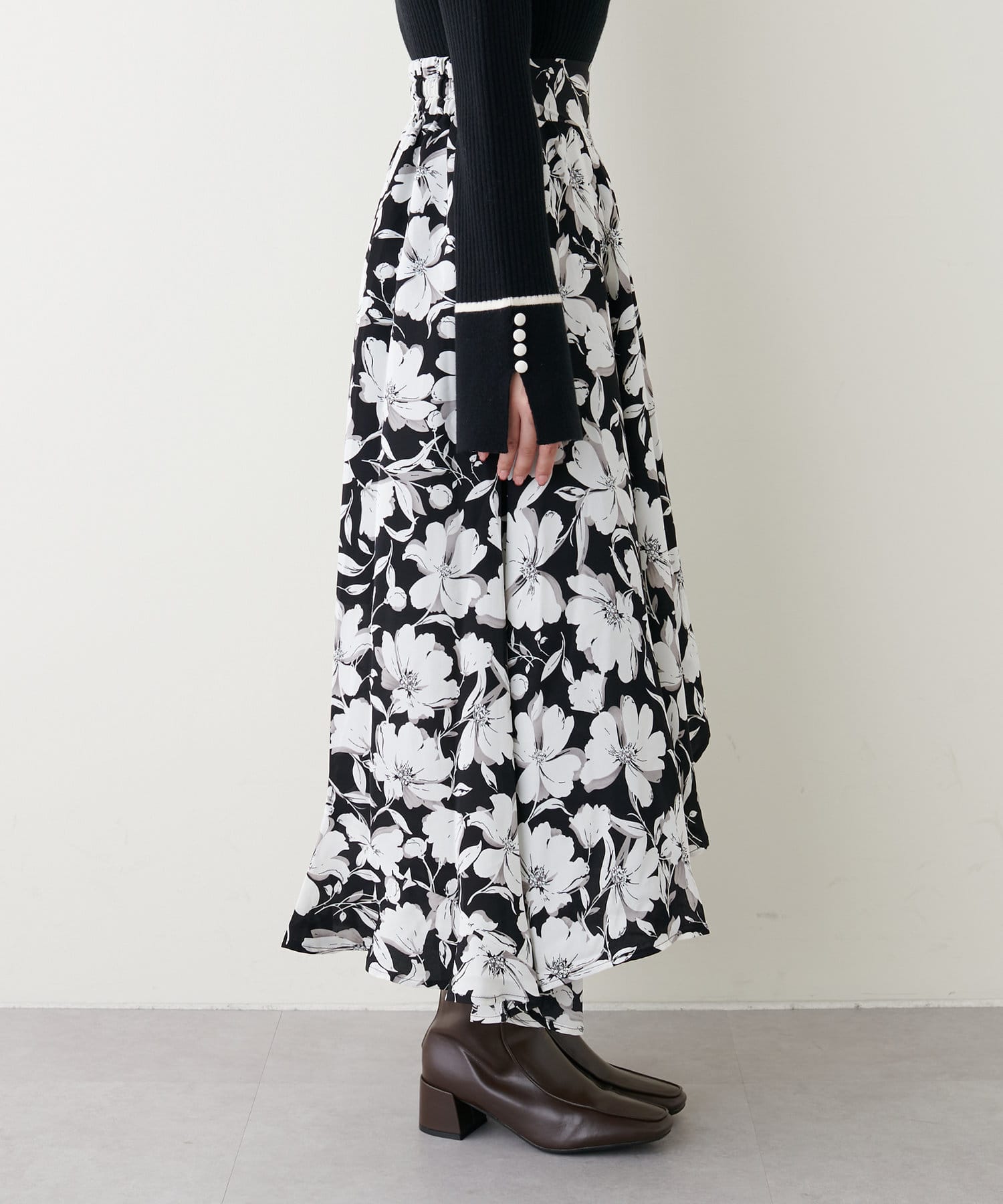 アシメ切替で広がる裾のデザインが、動く度にひらひらと揺れる大人かわいい雰囲気を演出します。