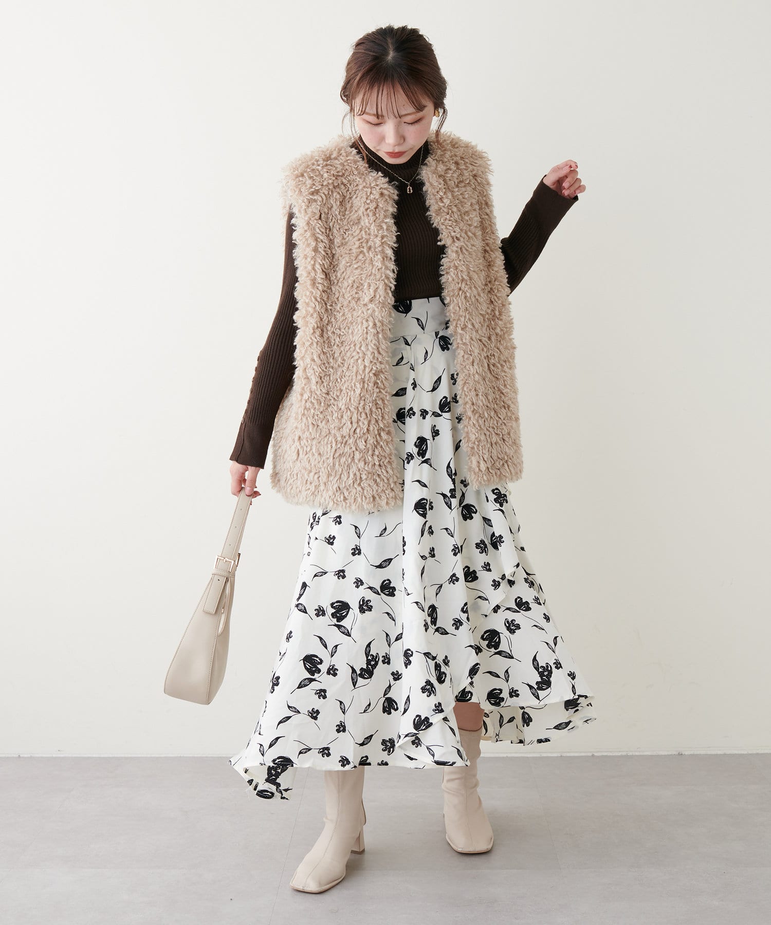 トレンド感のあるファーベストと合わせたり、パーカーなどカジュアルアイテムとも◎