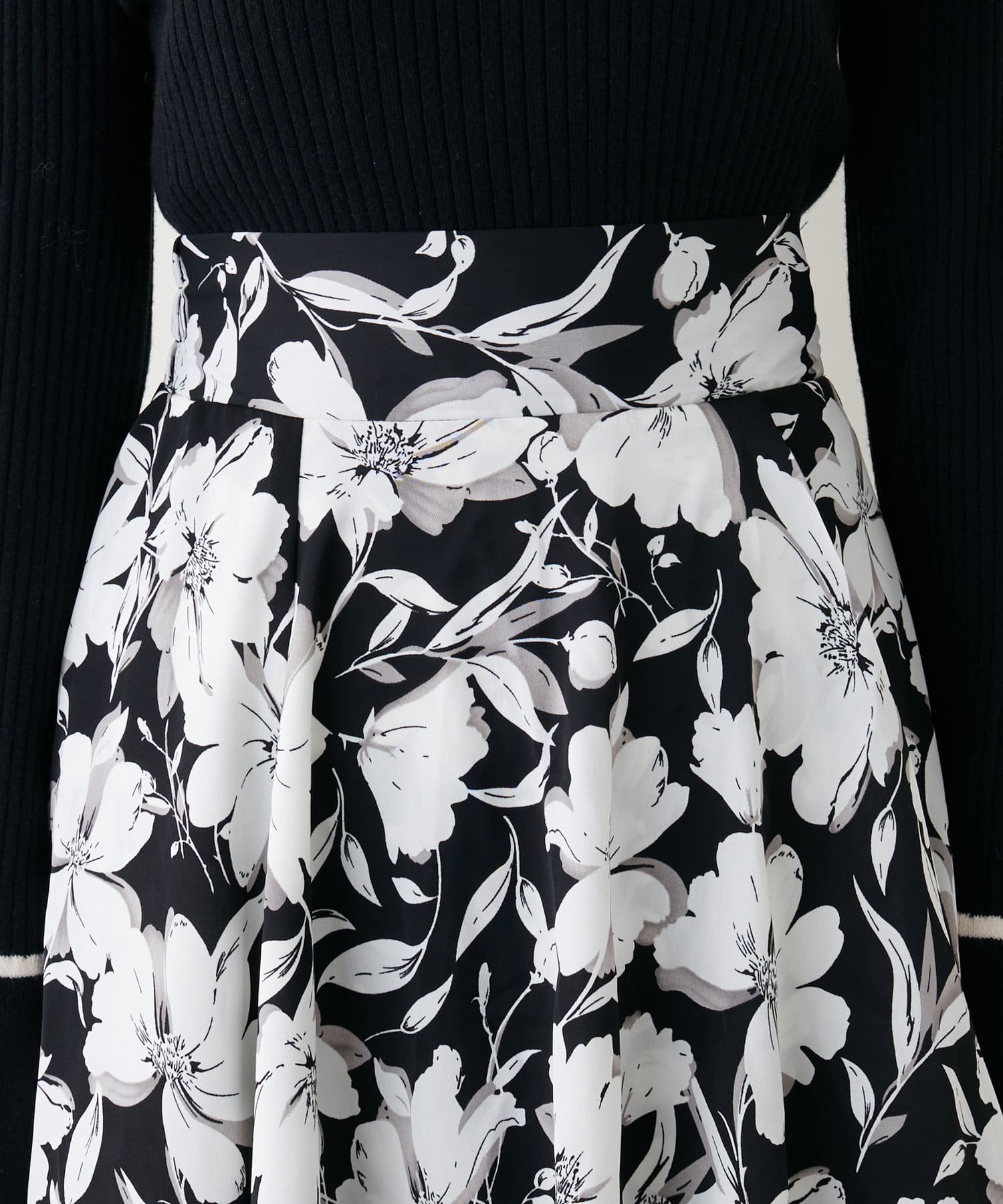 裾に向かってゆるやかに広がるフレアのデザインが、女性らしいきれいなスタイルへ導くスカート。