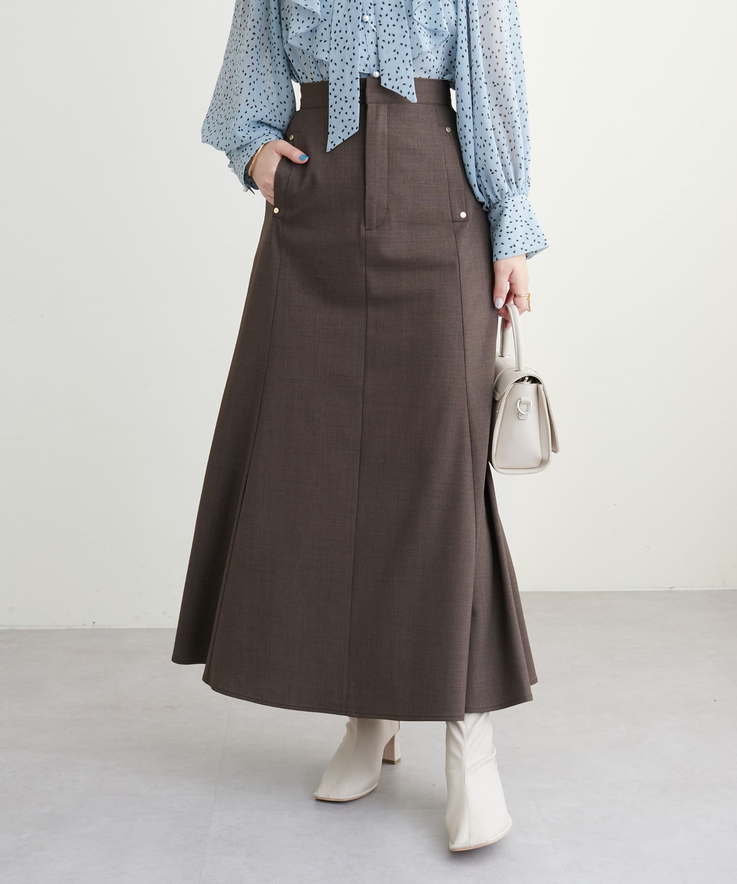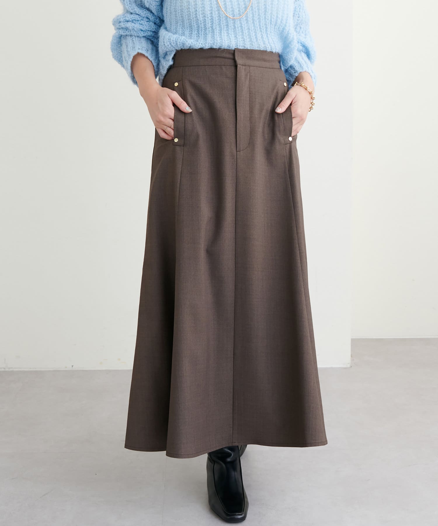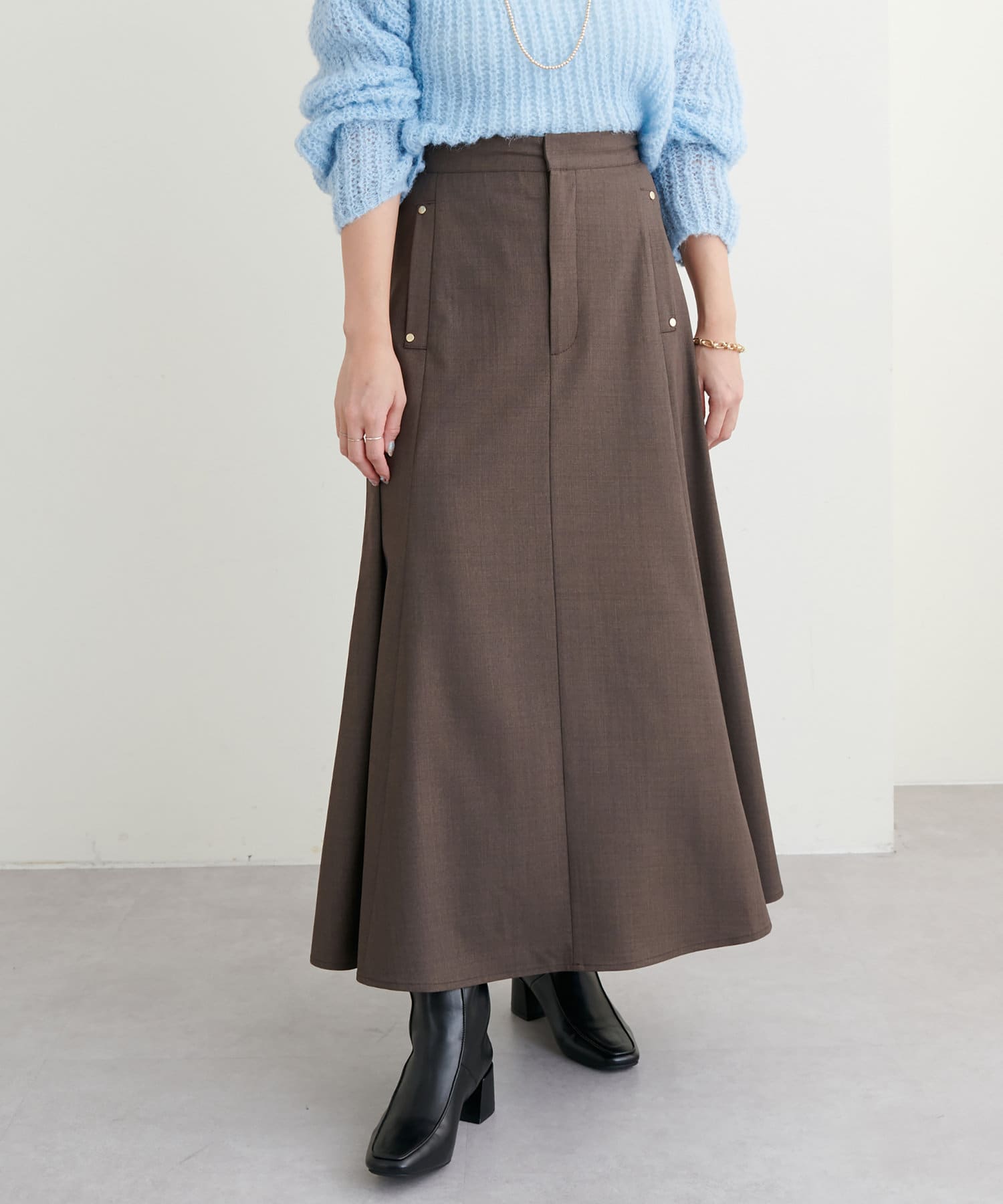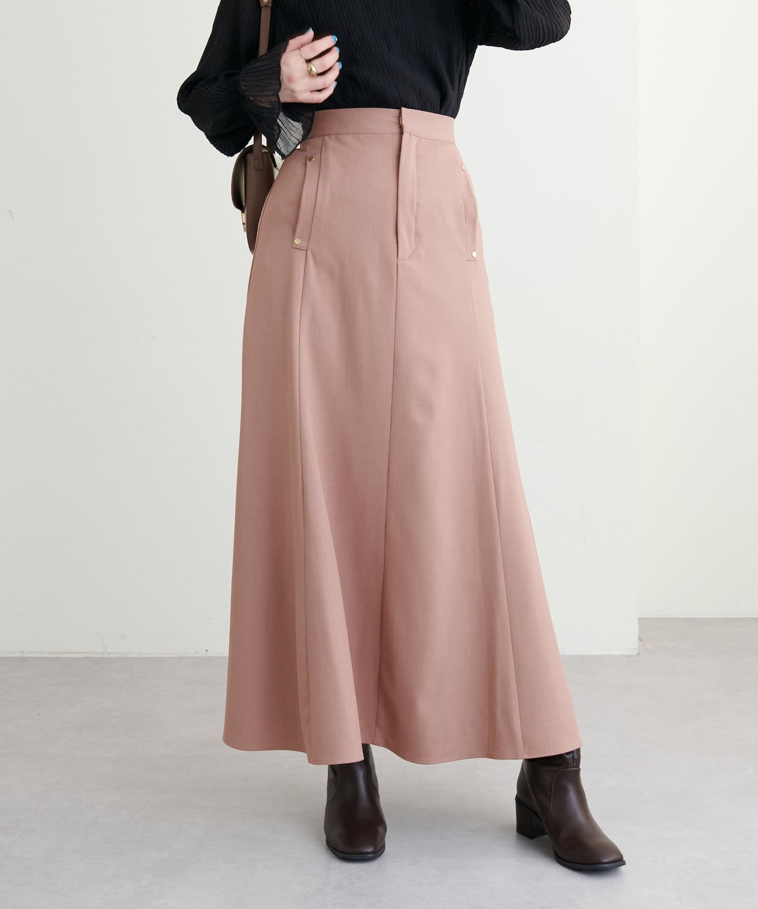 WEB限定サイズあり/おしゃれリベットややフレアスカート
