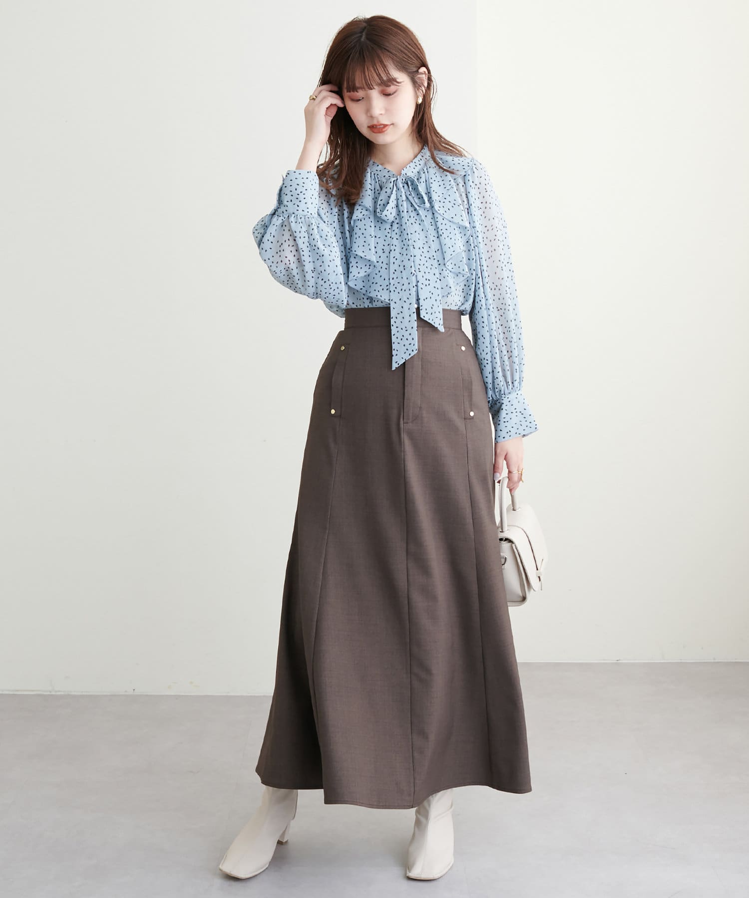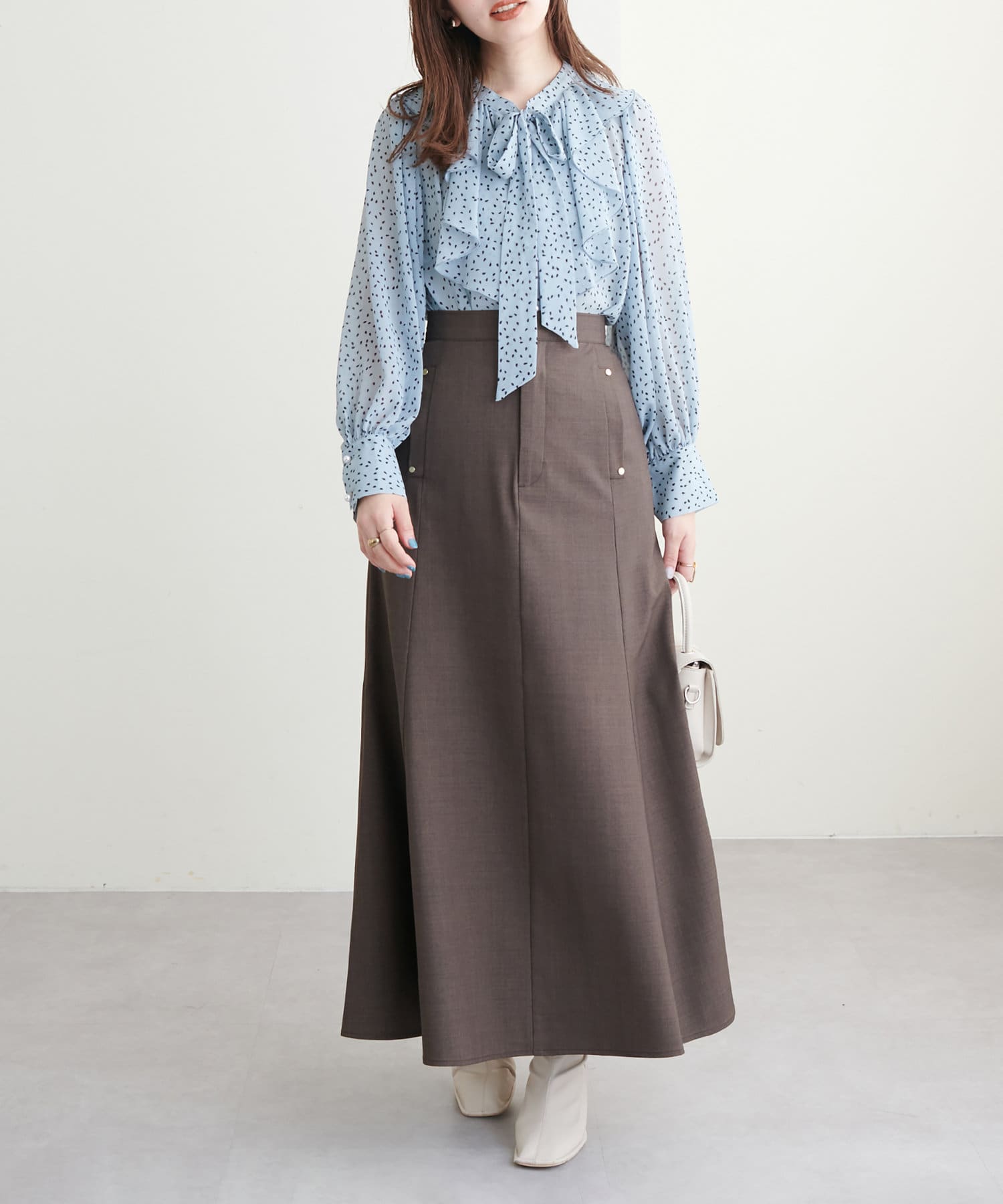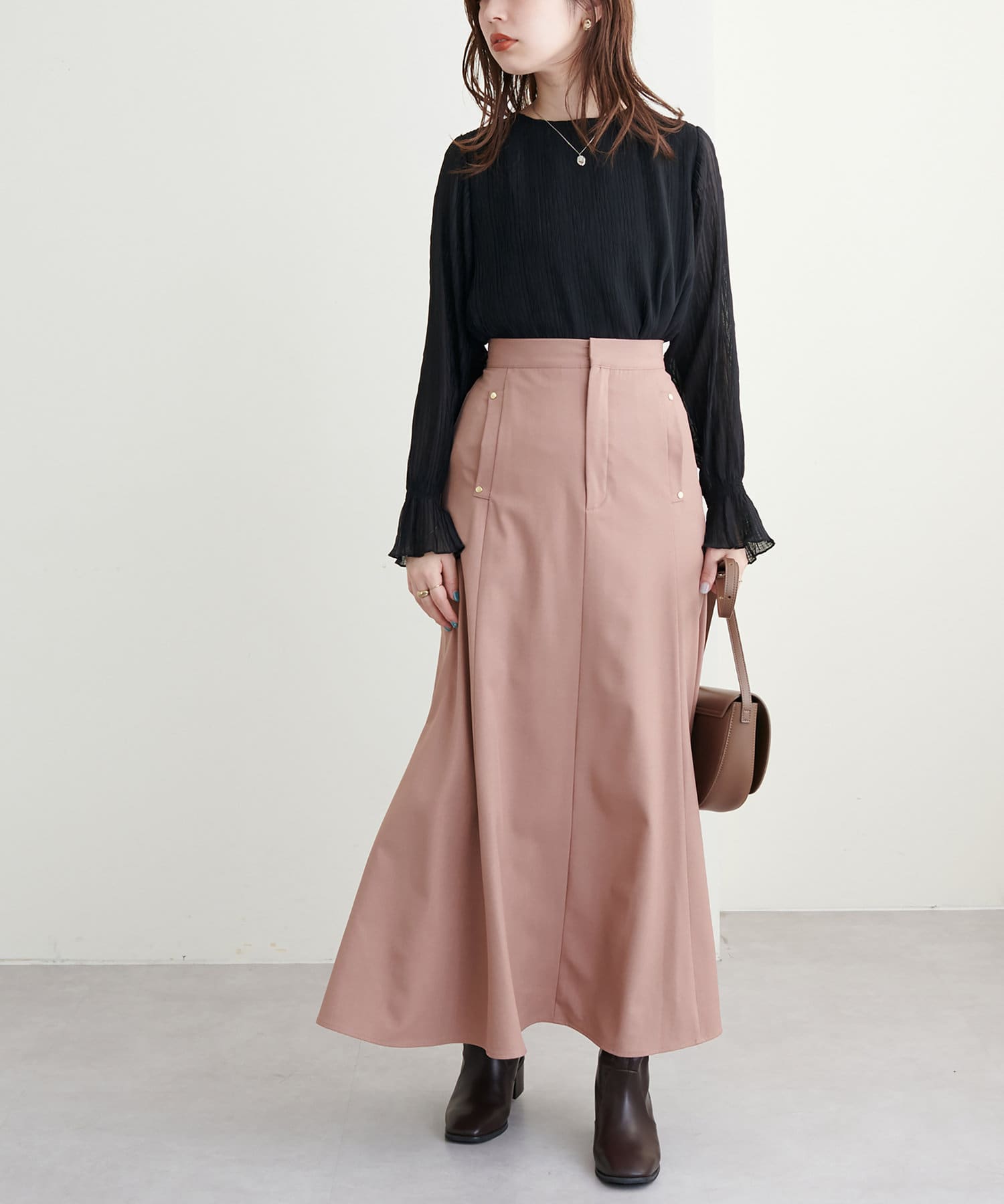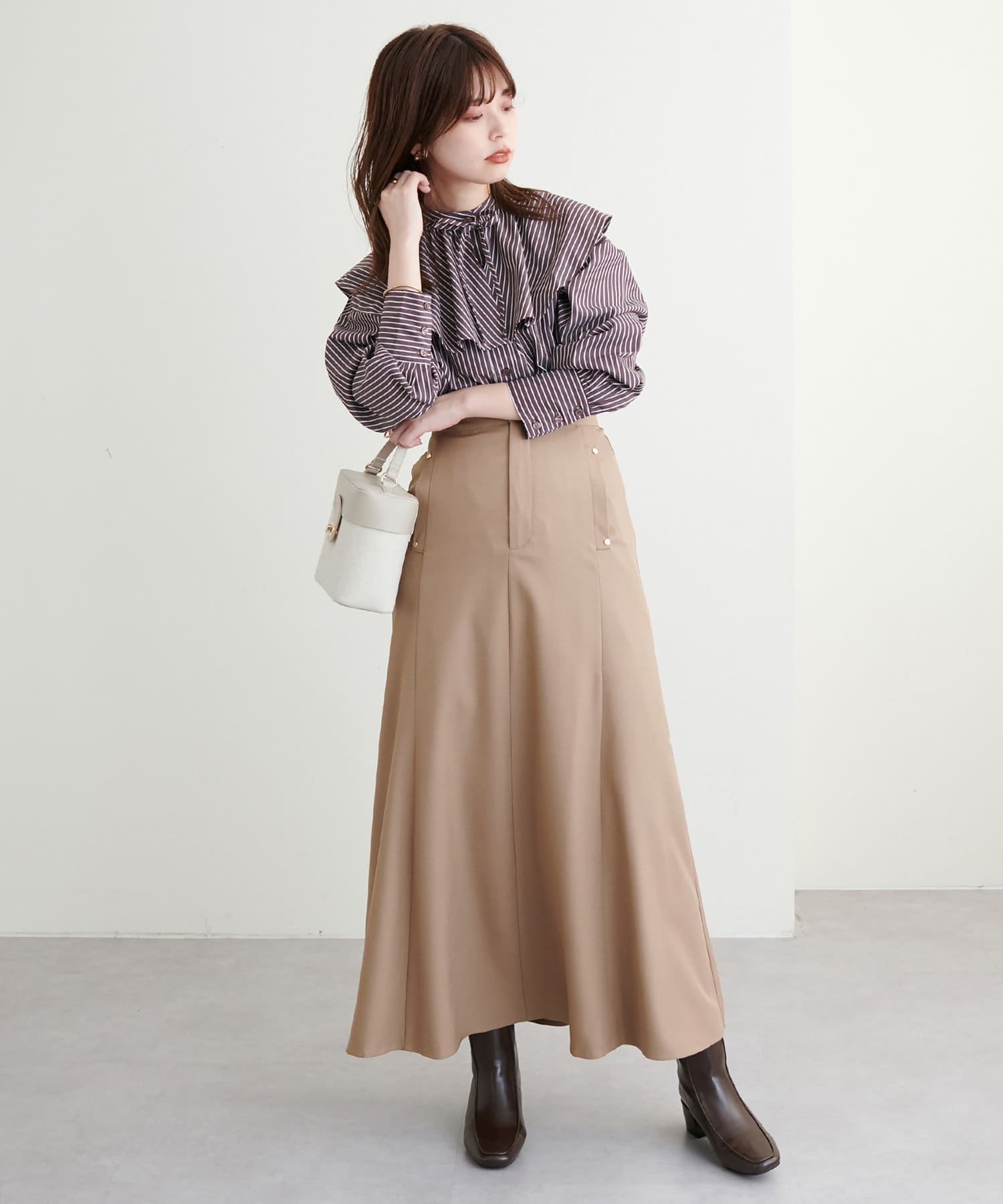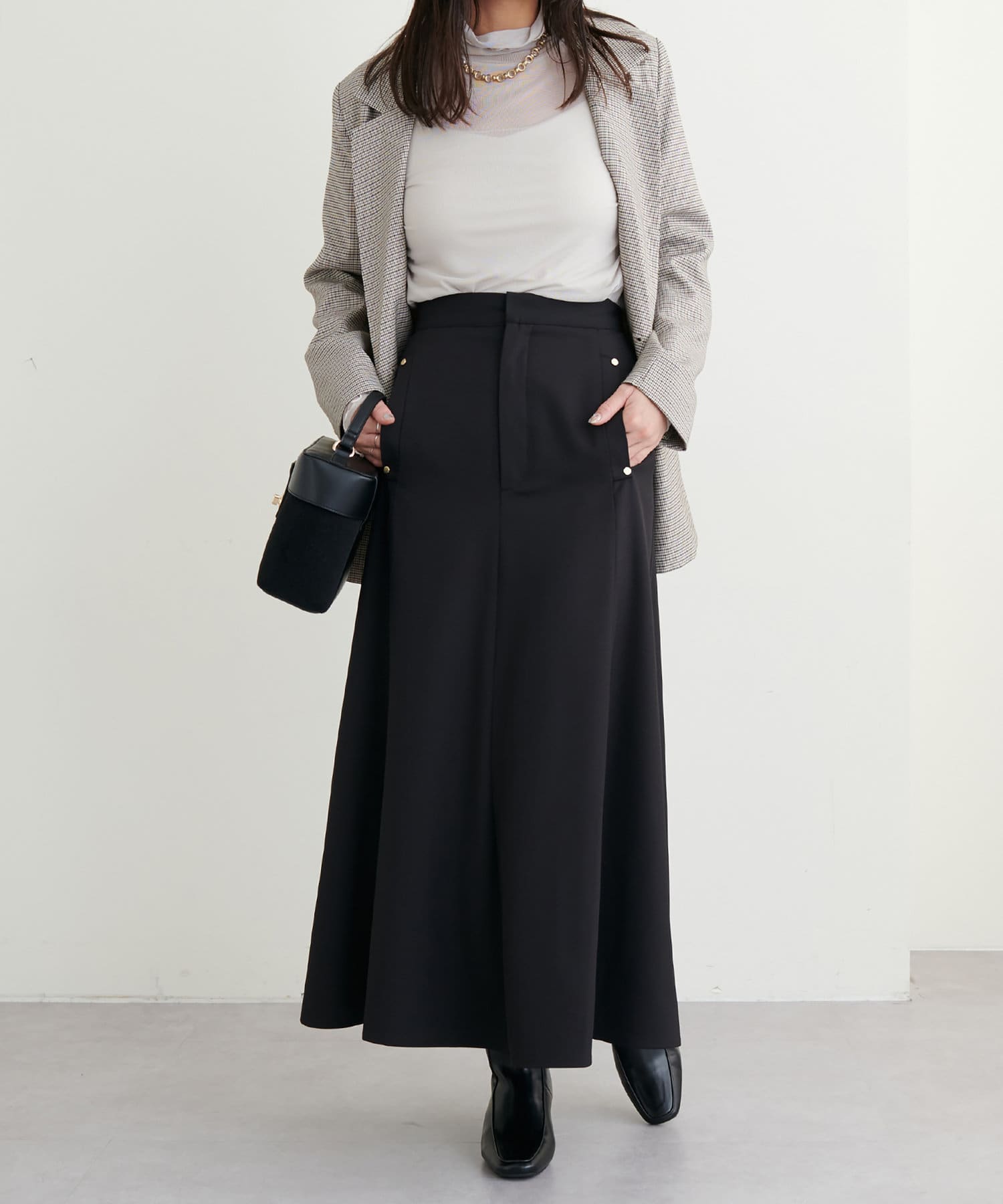 WEB限定サイズあり/おしゃれリベットややフレアスカート