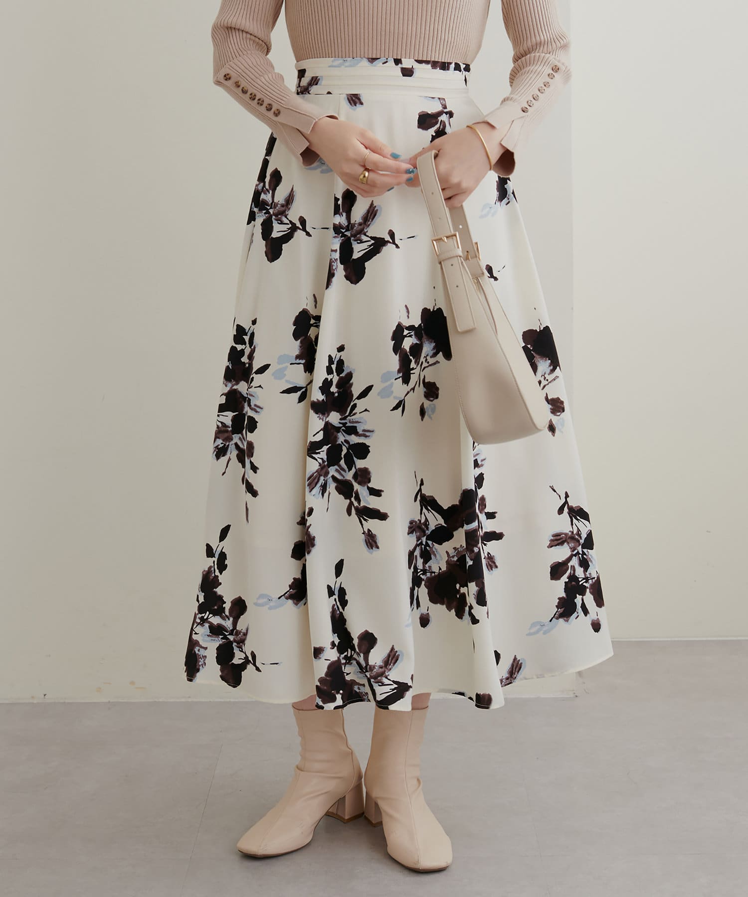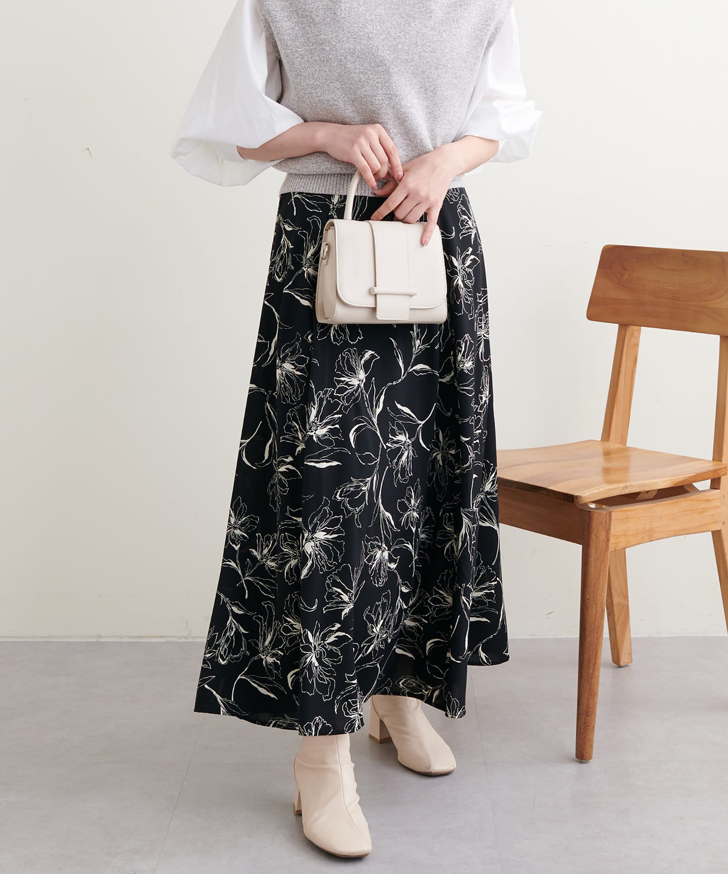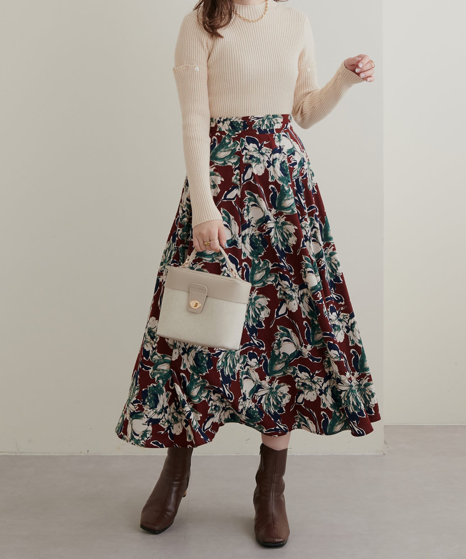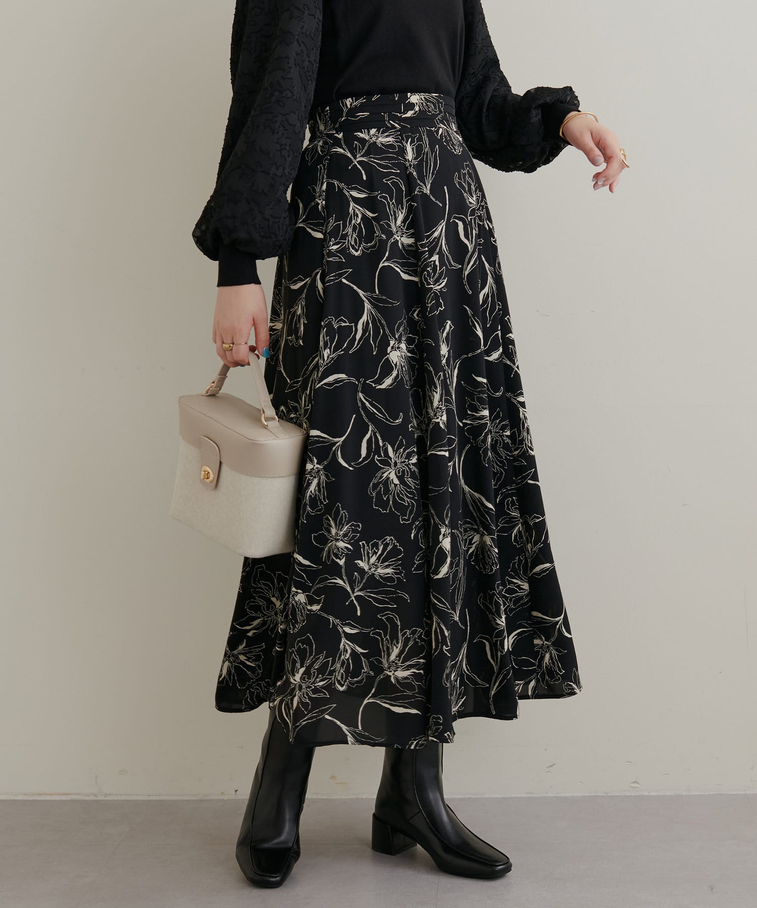 裾にかけて緩やかなフレアラインが女性らしさ引き立つ、今季注目のスカート。