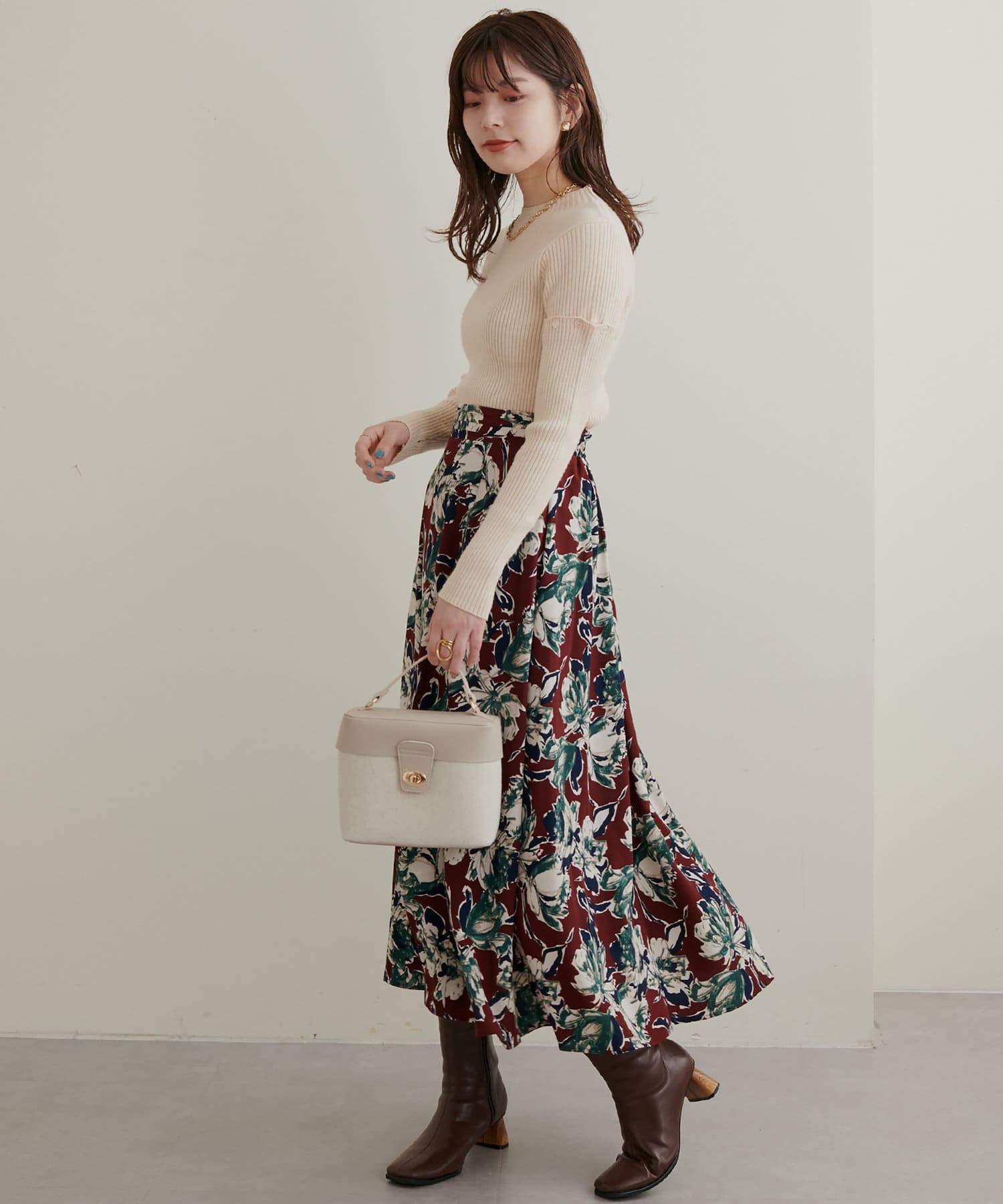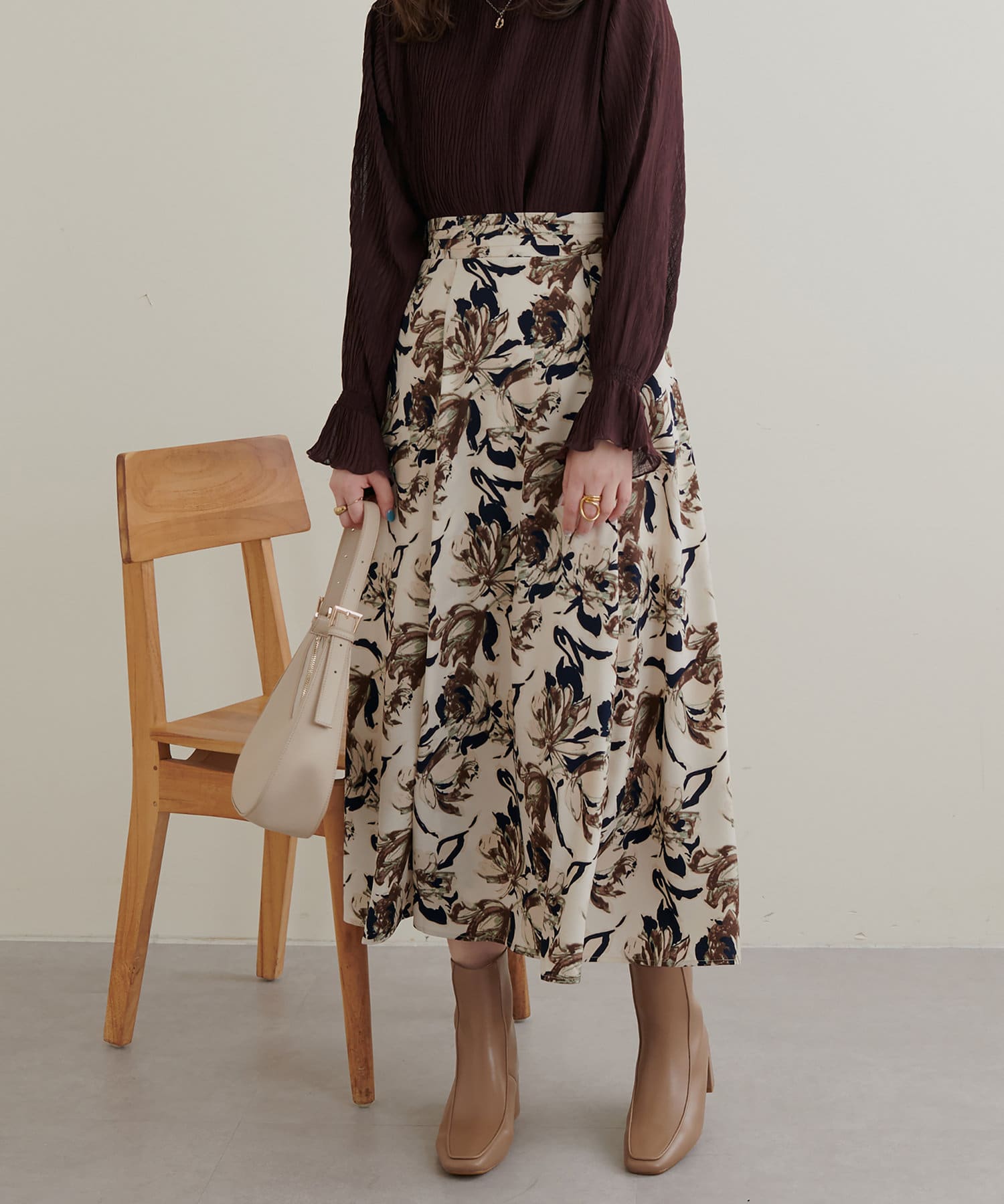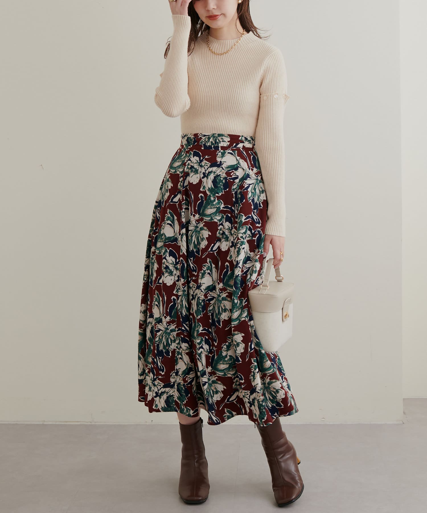 裾にかけて緩やかなフレアラインが女性らしさ引き立つ、今季注目のスカート。