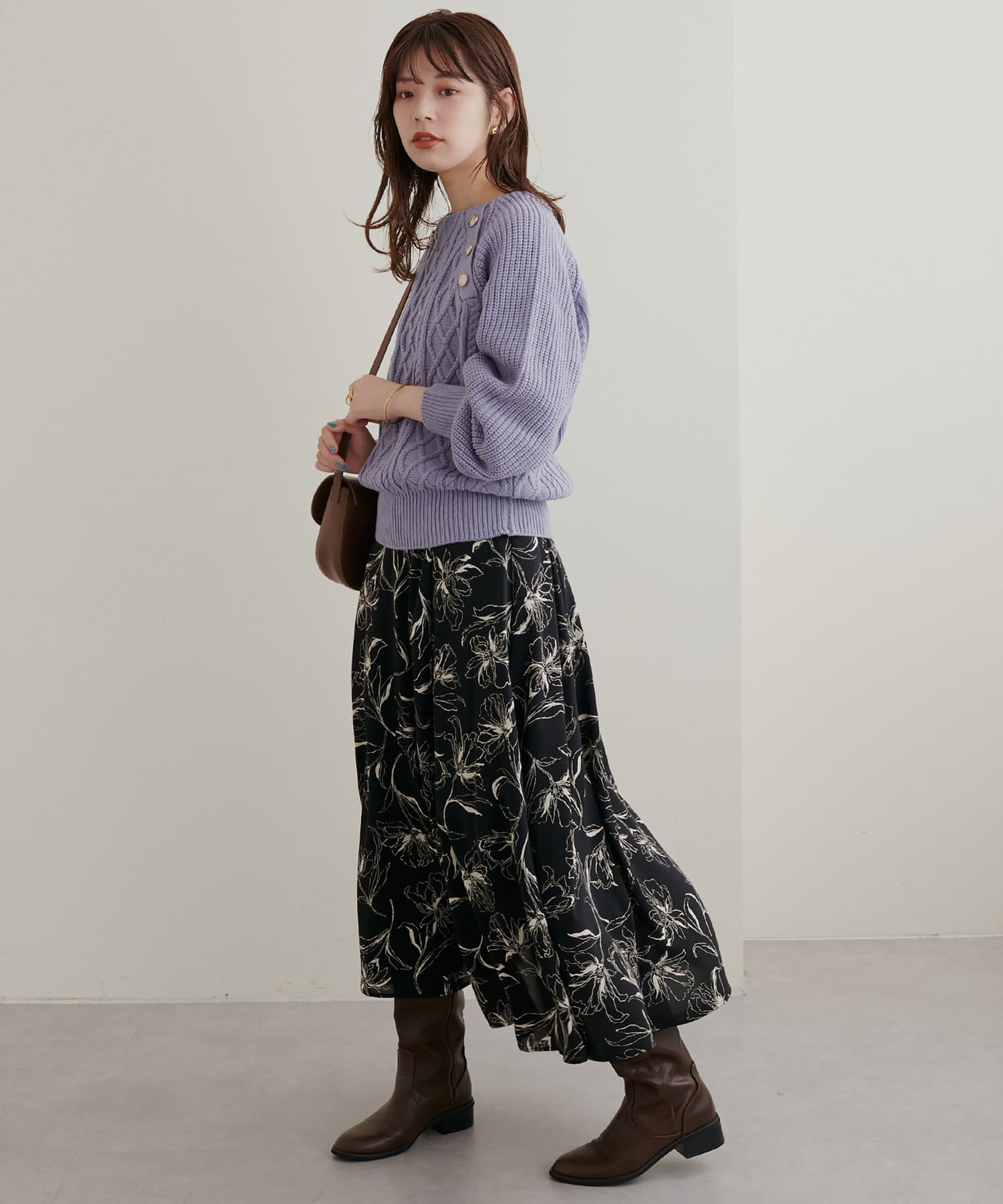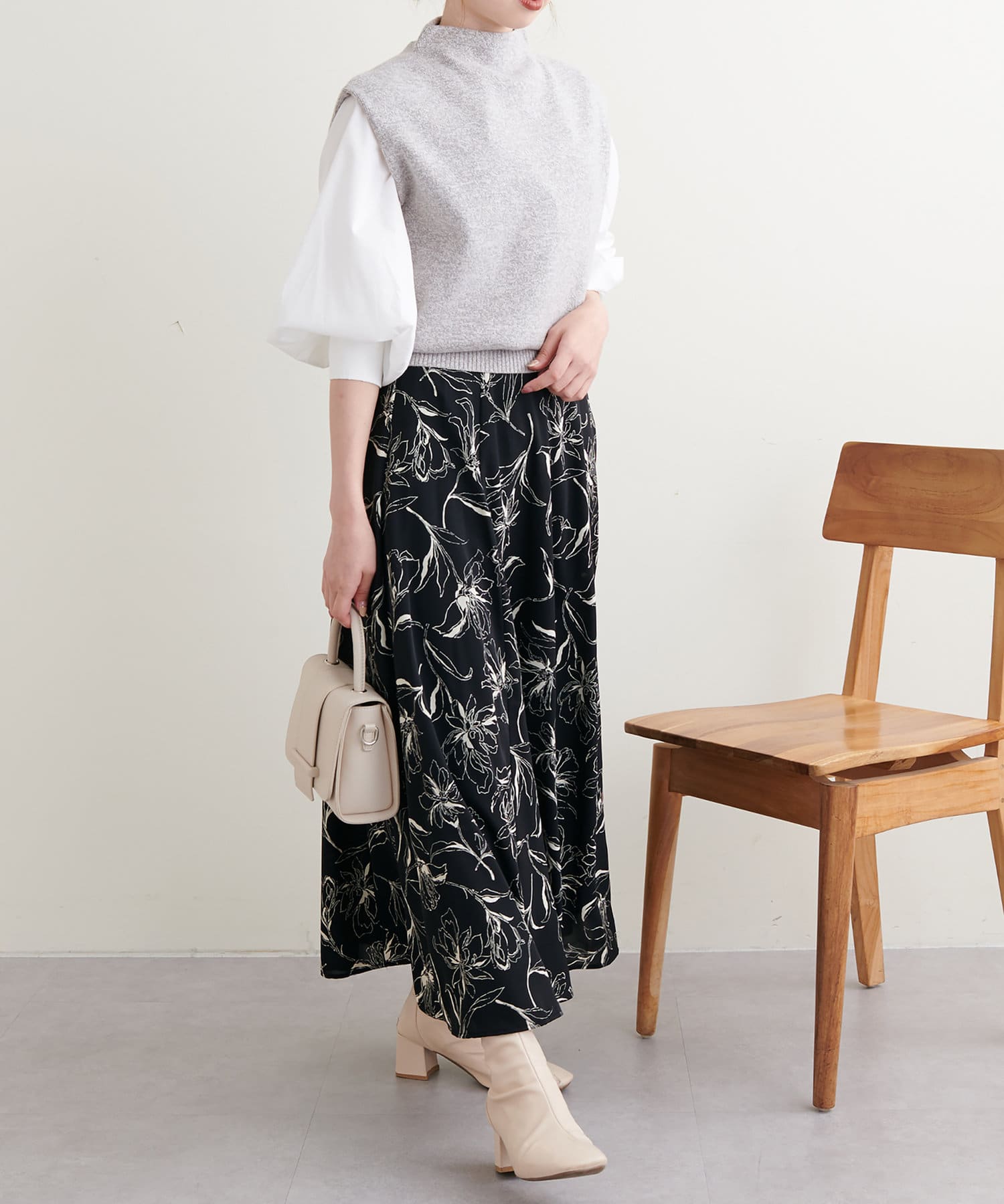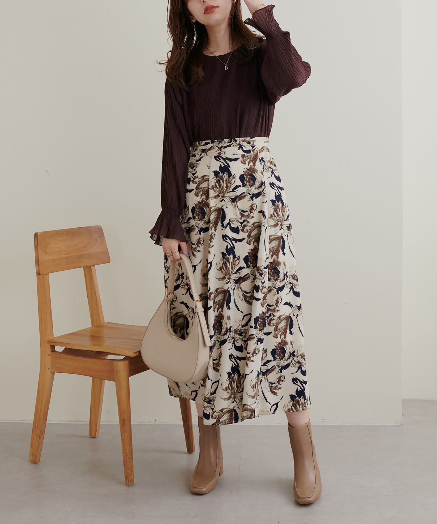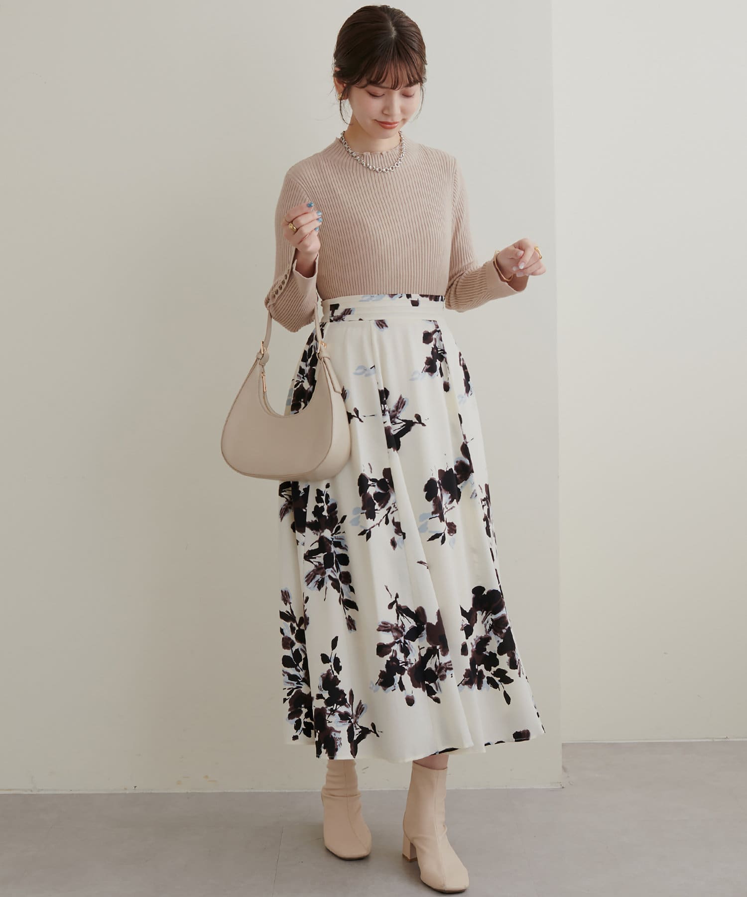 裾にかけて緩やかなフレアラインが女性らしさ引き立つ、今季注目のスカート。