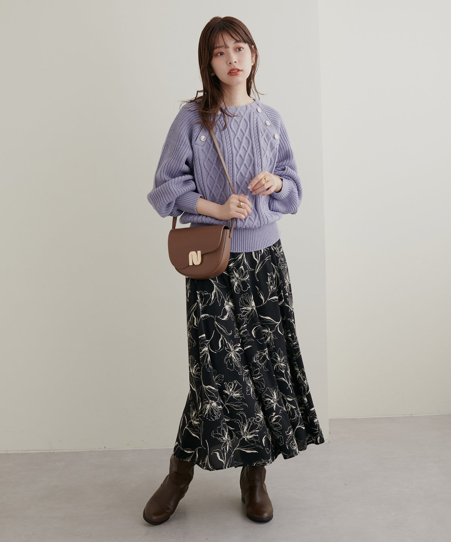 冬はゆるっとしたニットプルオーバーやざっくり編みのカーディガンを合わせても◎