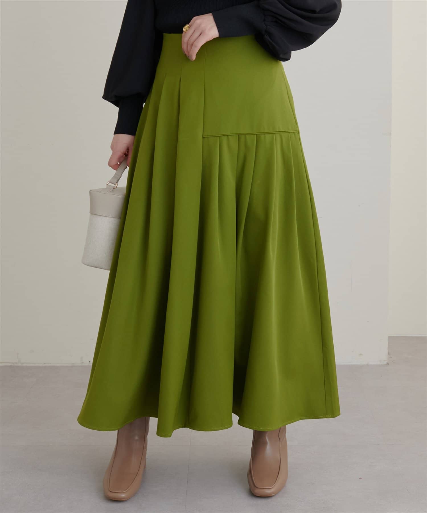 落ち感のある素材を採用しておりますので、軽やかで重さのストレスも少ないスカートです。