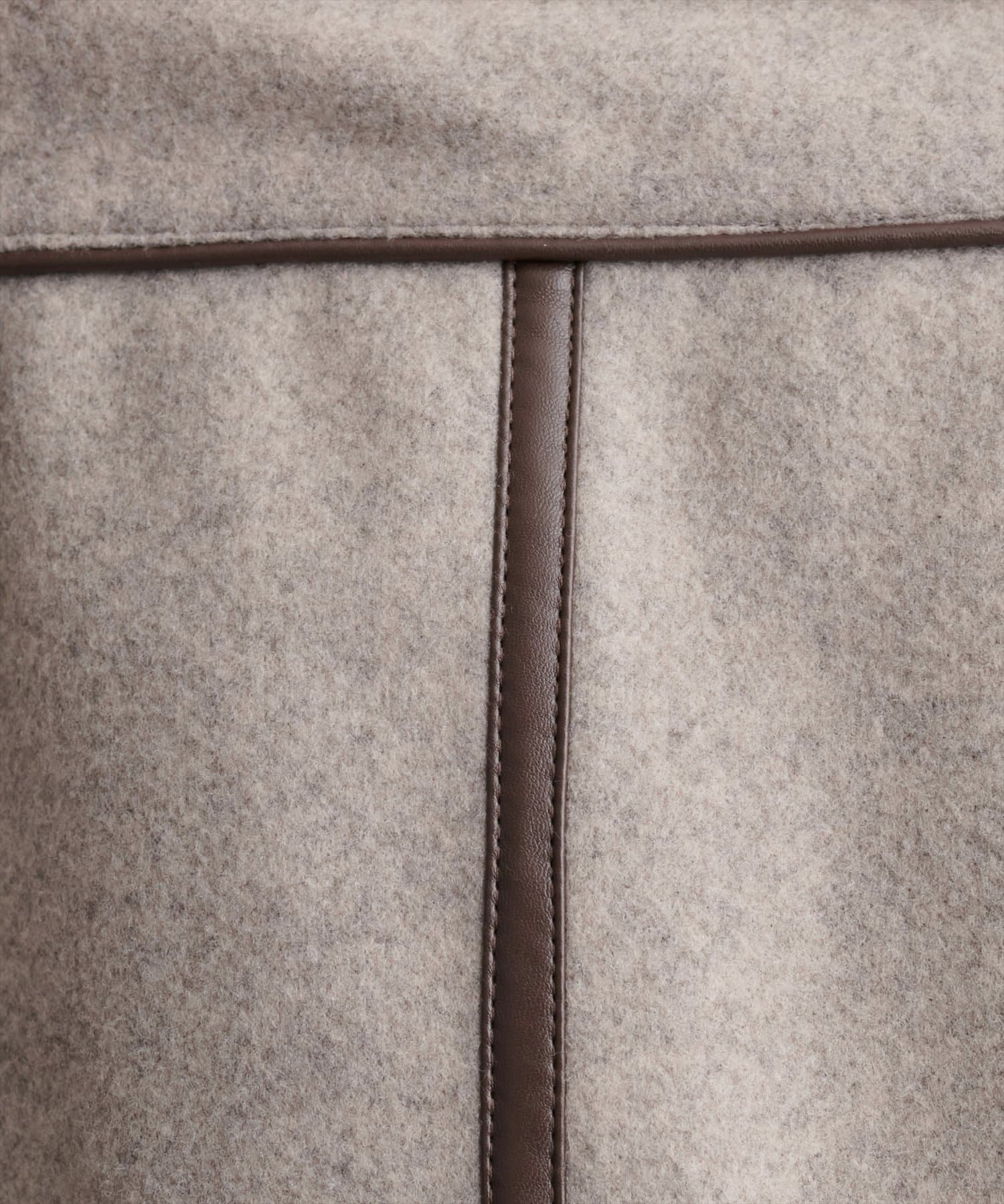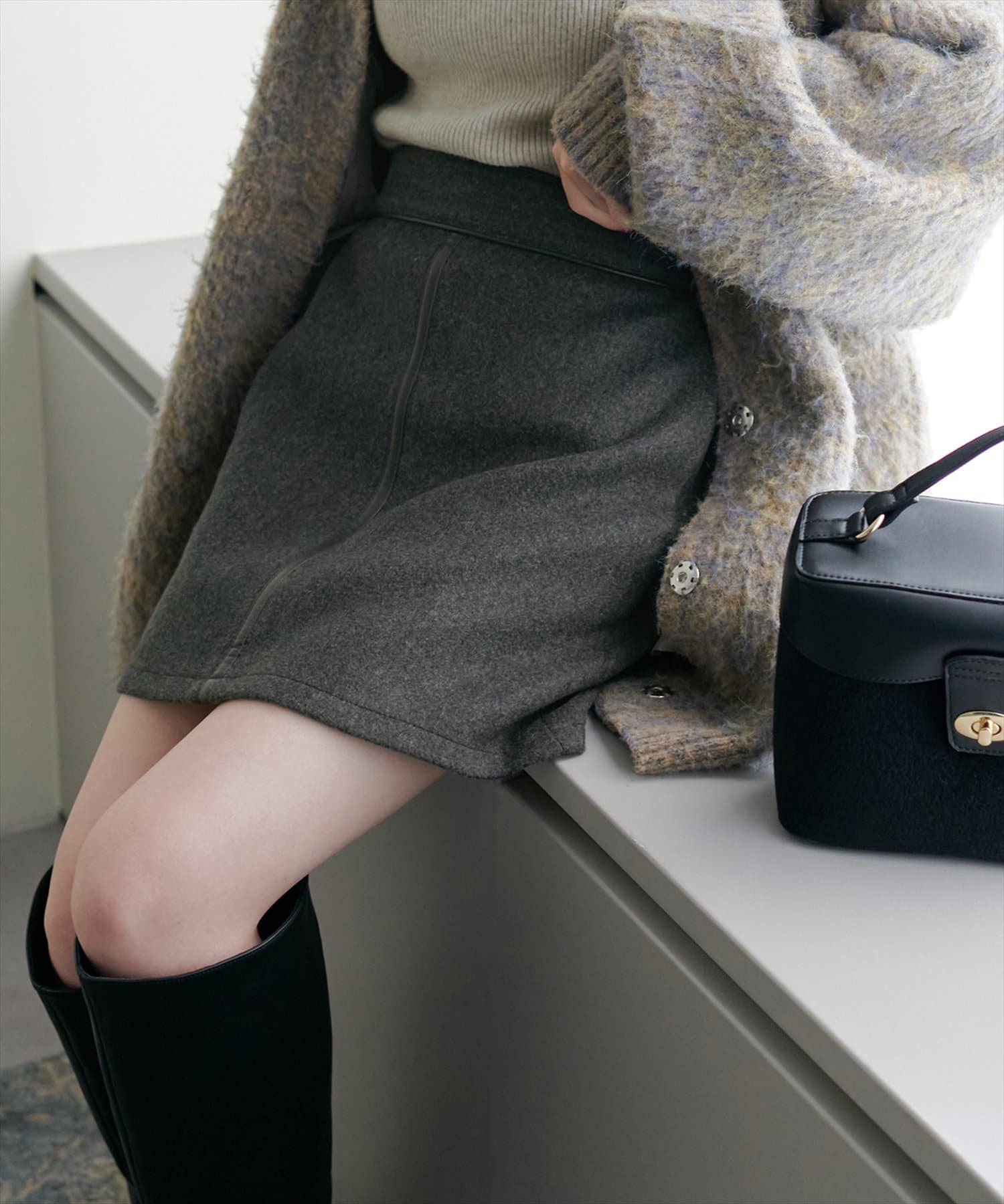 柔らかい風合いの素材にフロント部分とウエストに合皮のパイピングが施された
