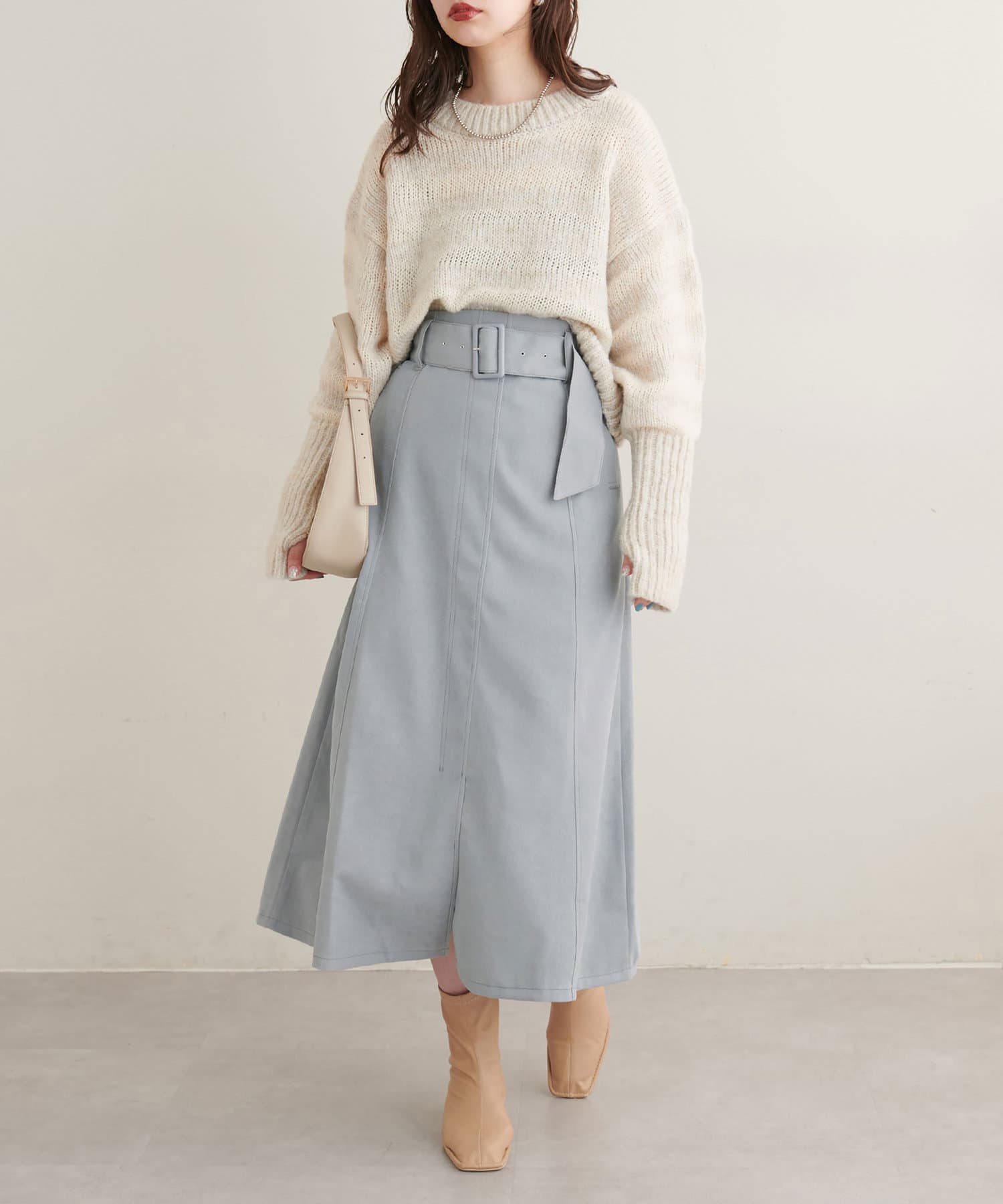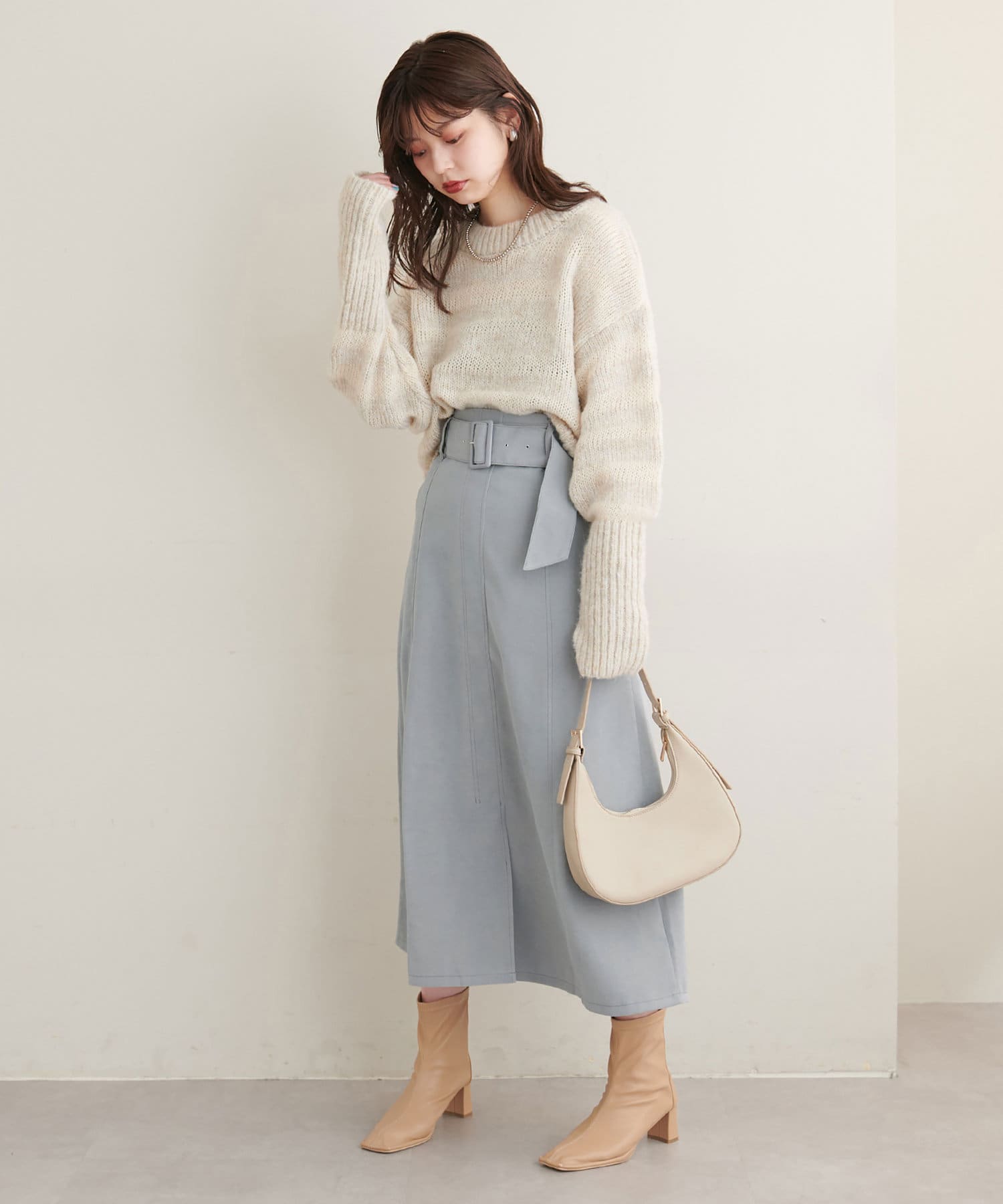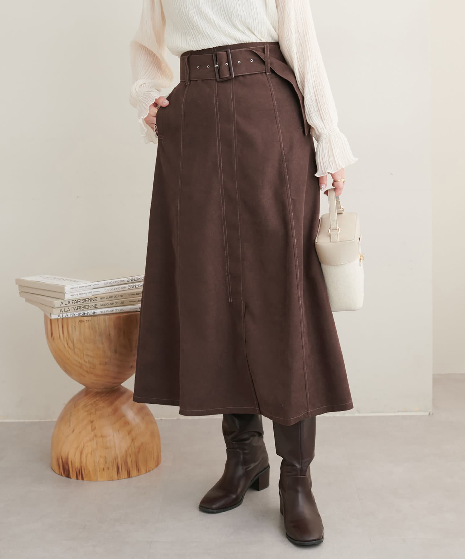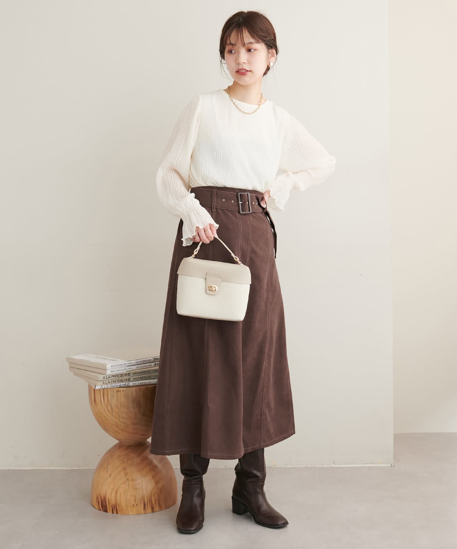 付属品のベルトはやや太めにデザインし、ウエストラインをシャープに見せてくれます。
