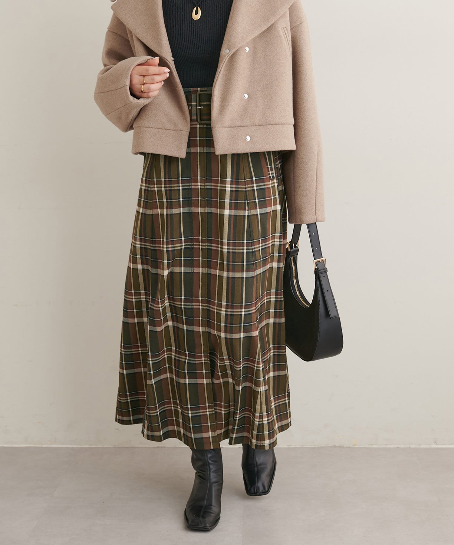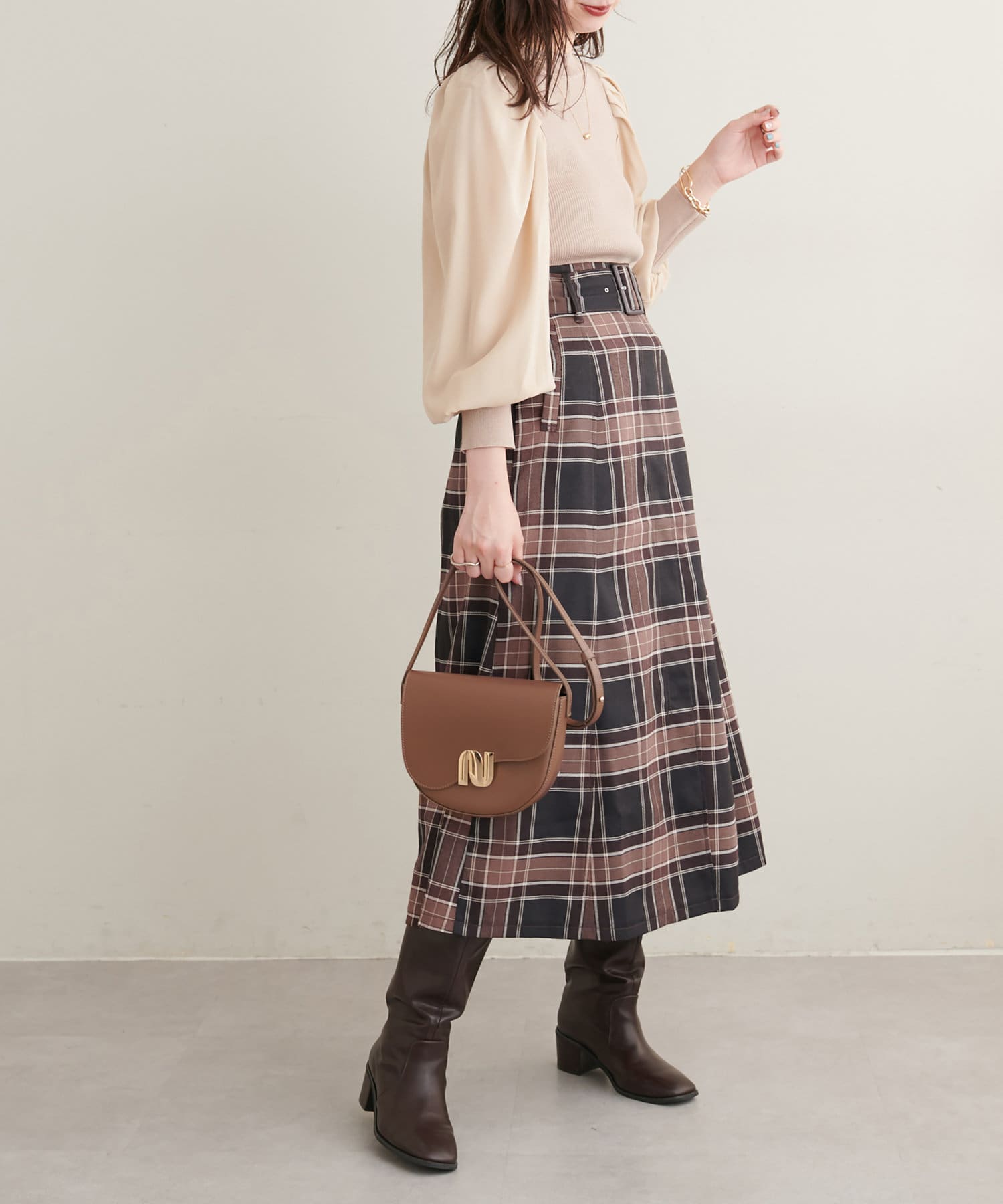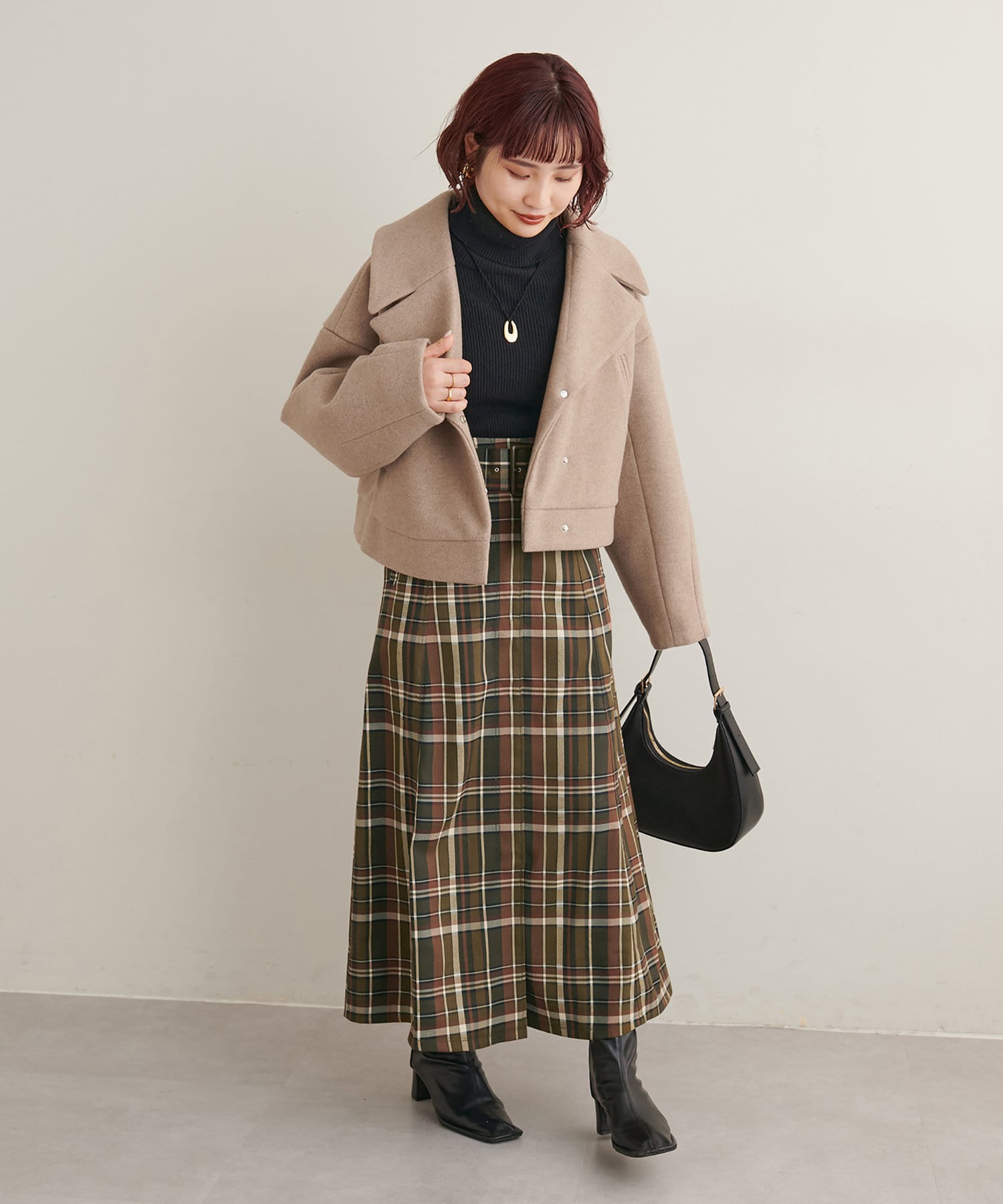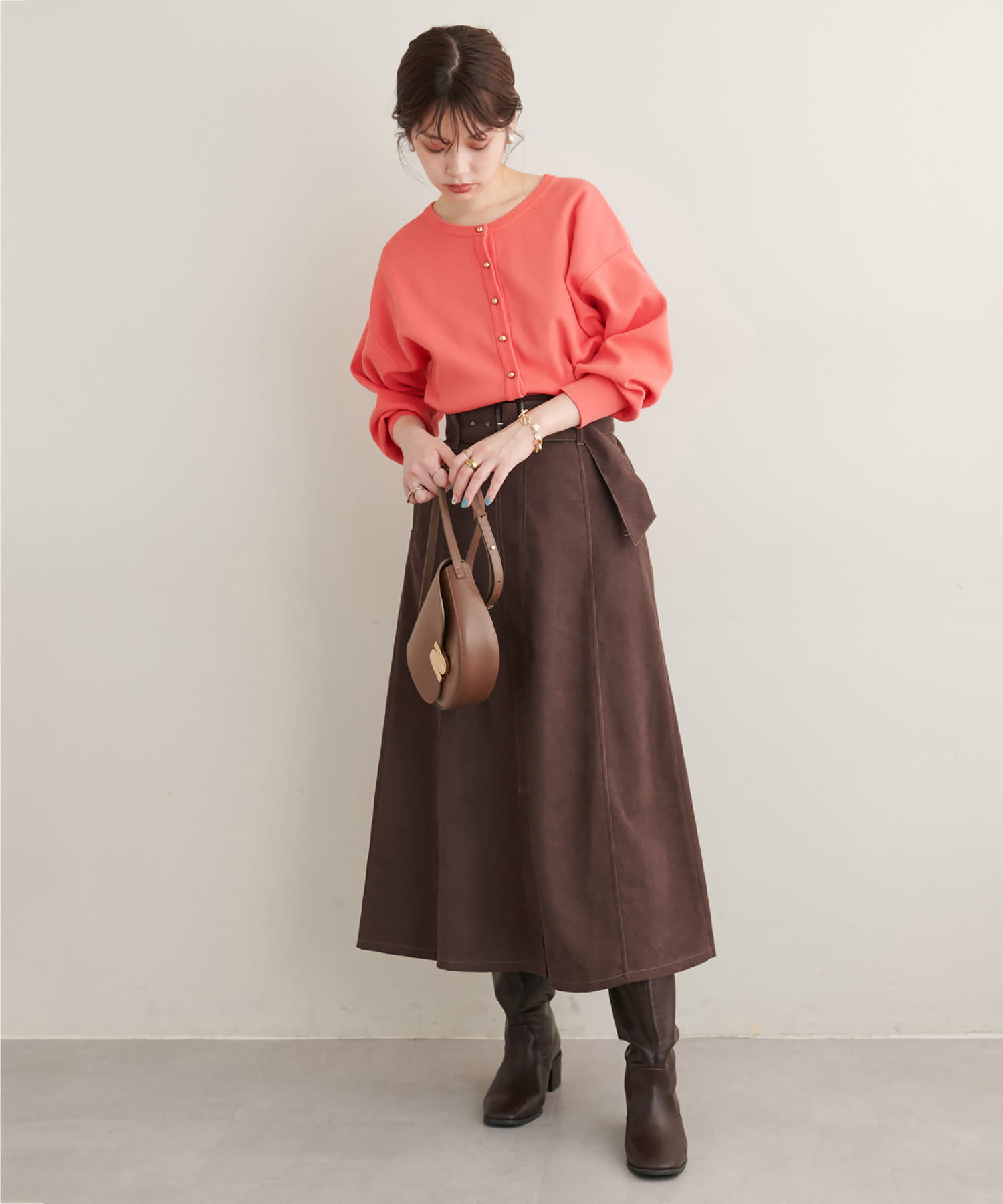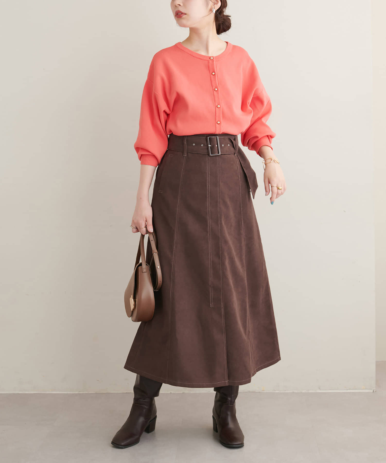 スカートのデザインが引き立つすっきりとした上品スタイルに仕上がります。