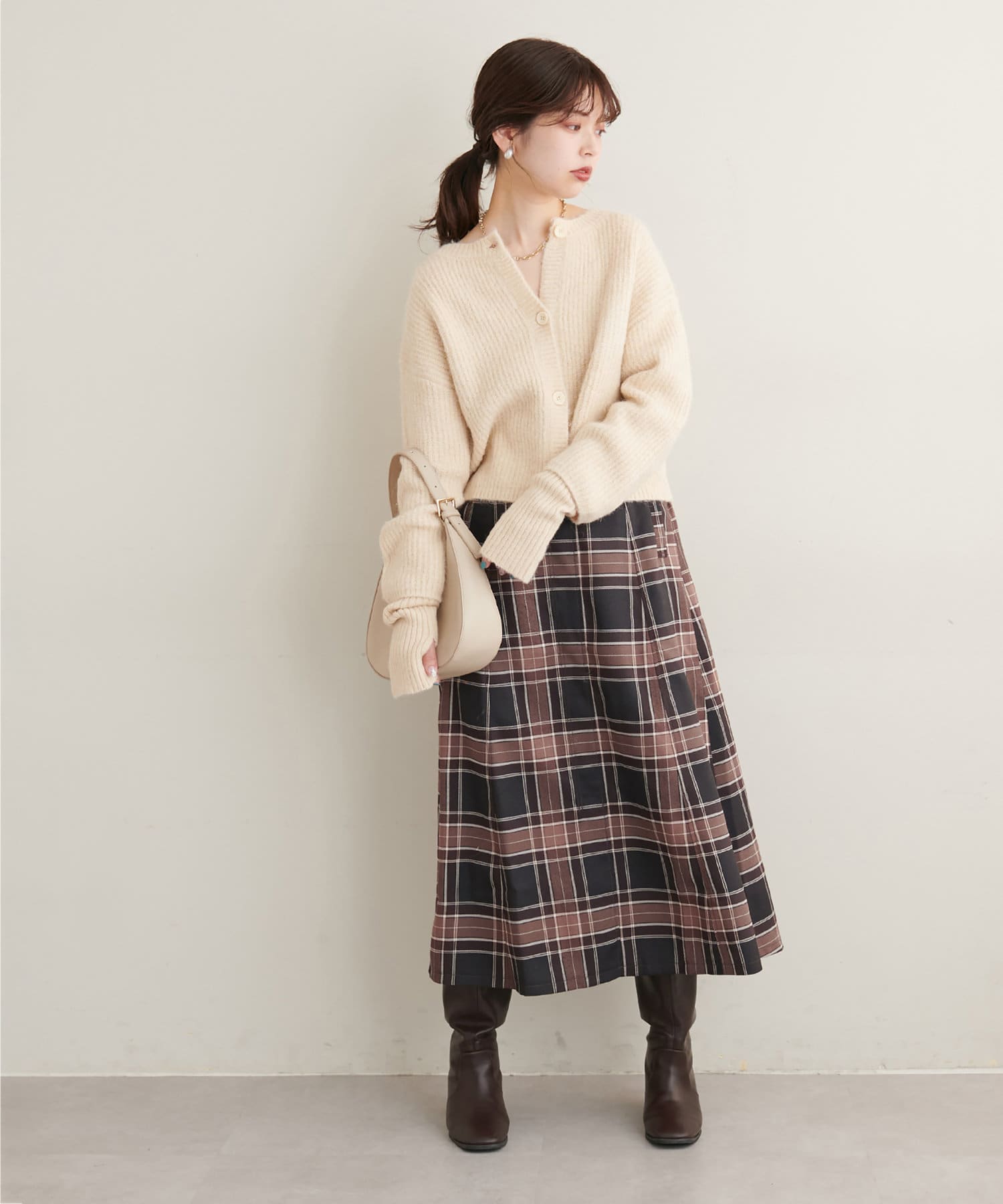 足元はフラットシューズからウォーム感のあるブーツ合わせなど、