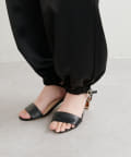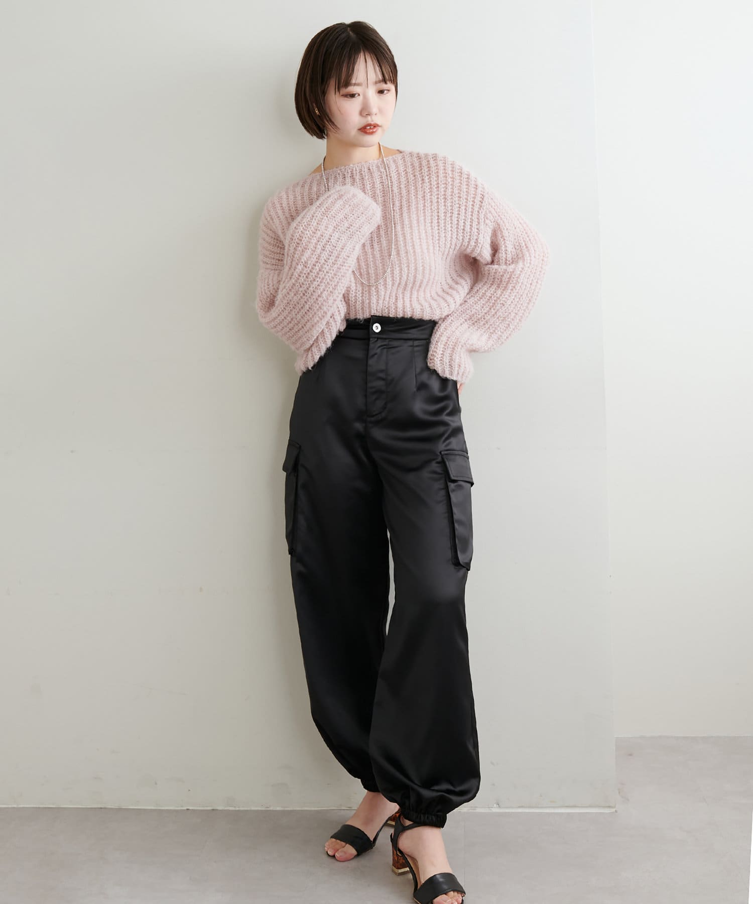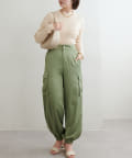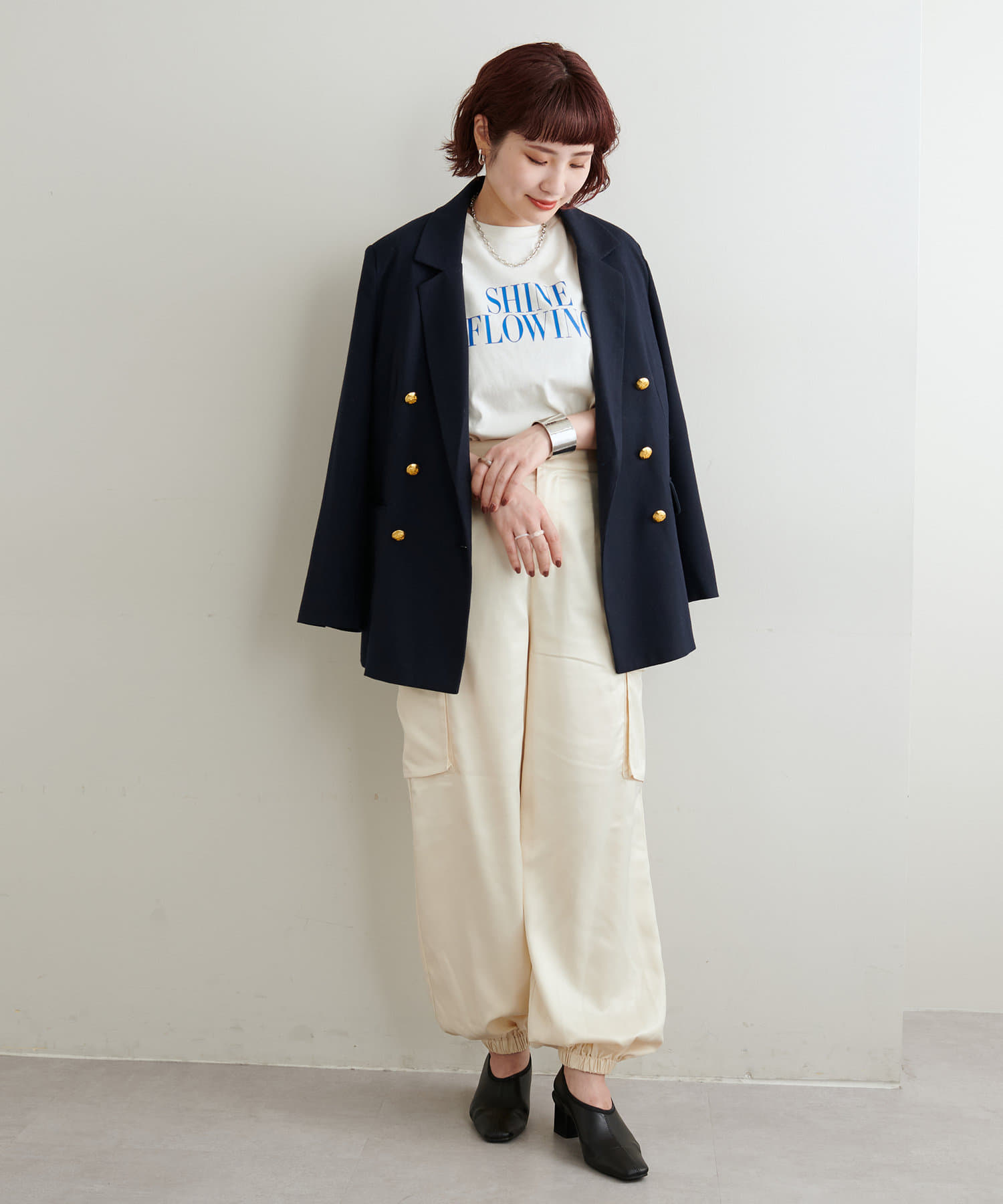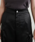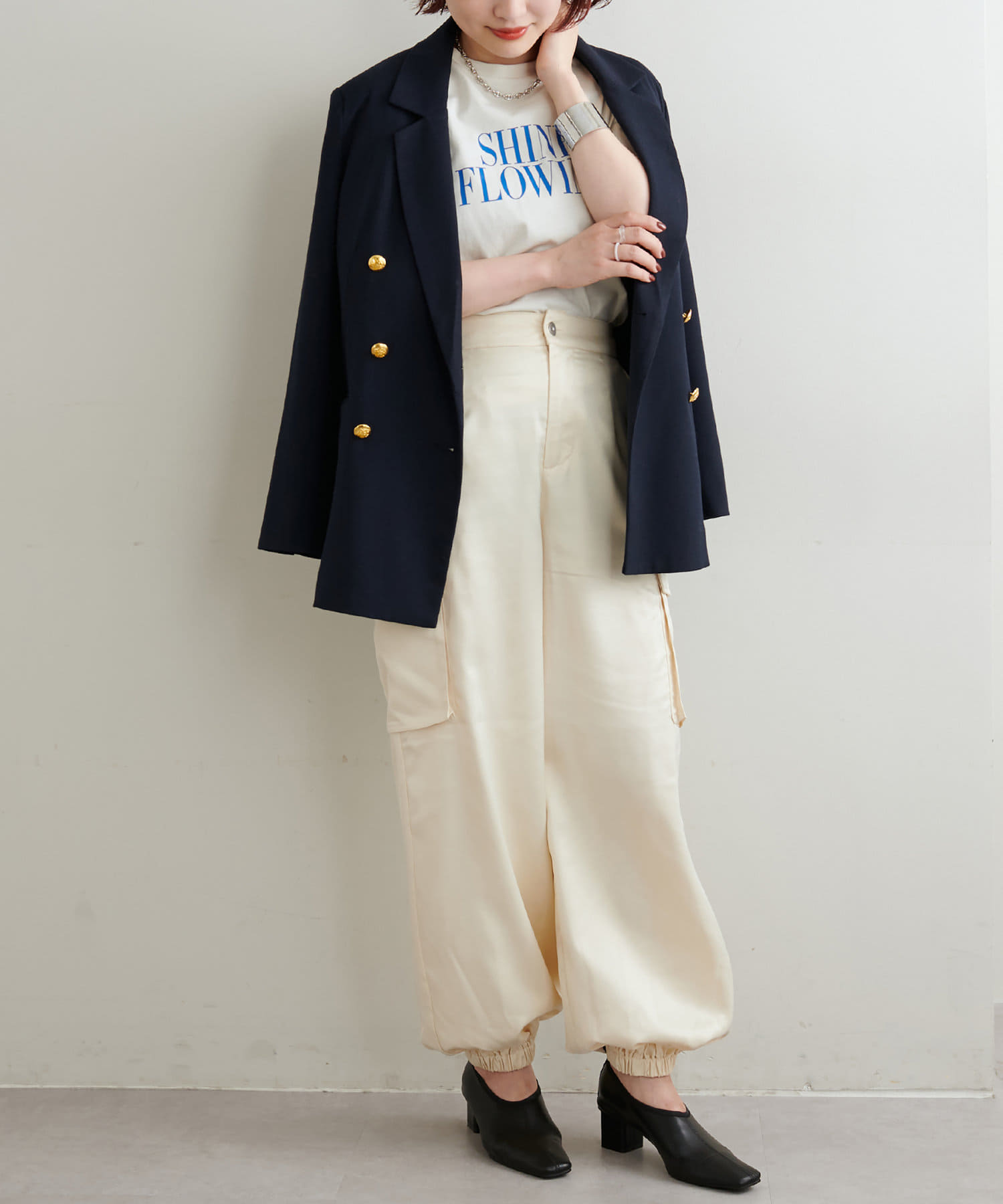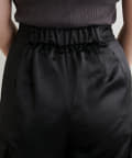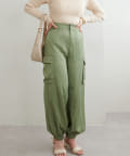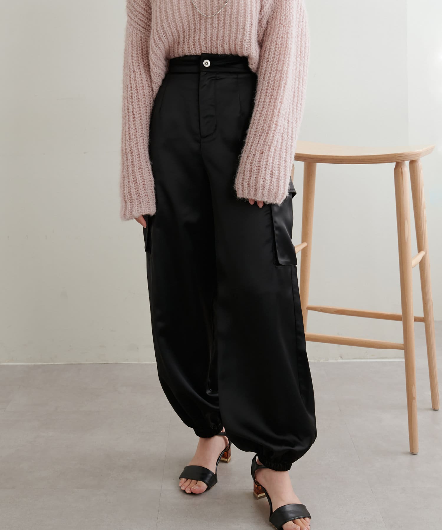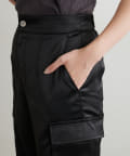 カジュアルなパラシュートパンツもサテン地を使用する事で